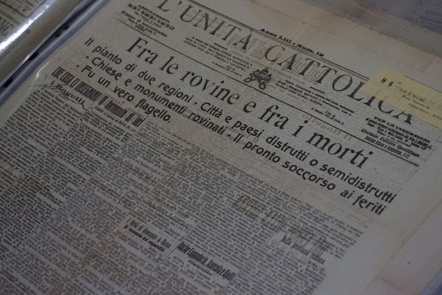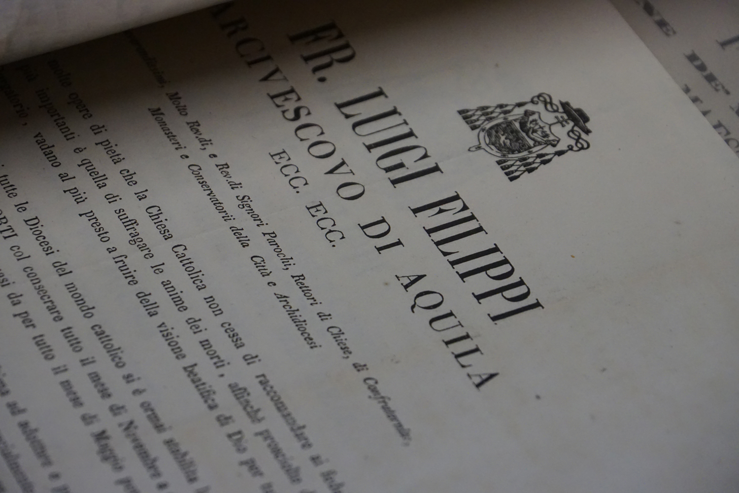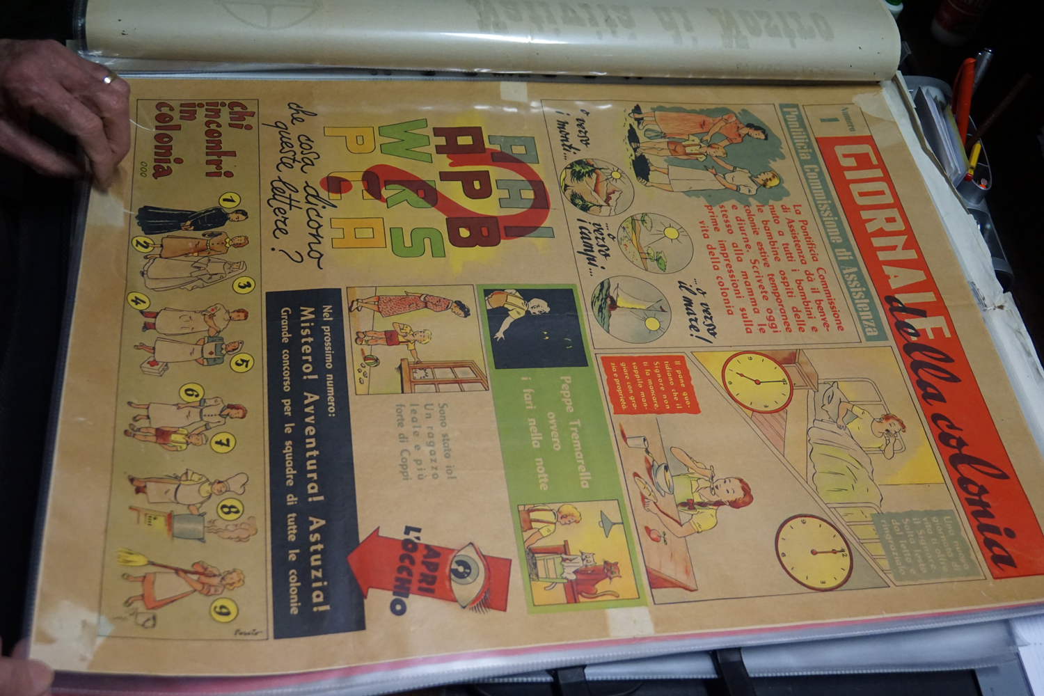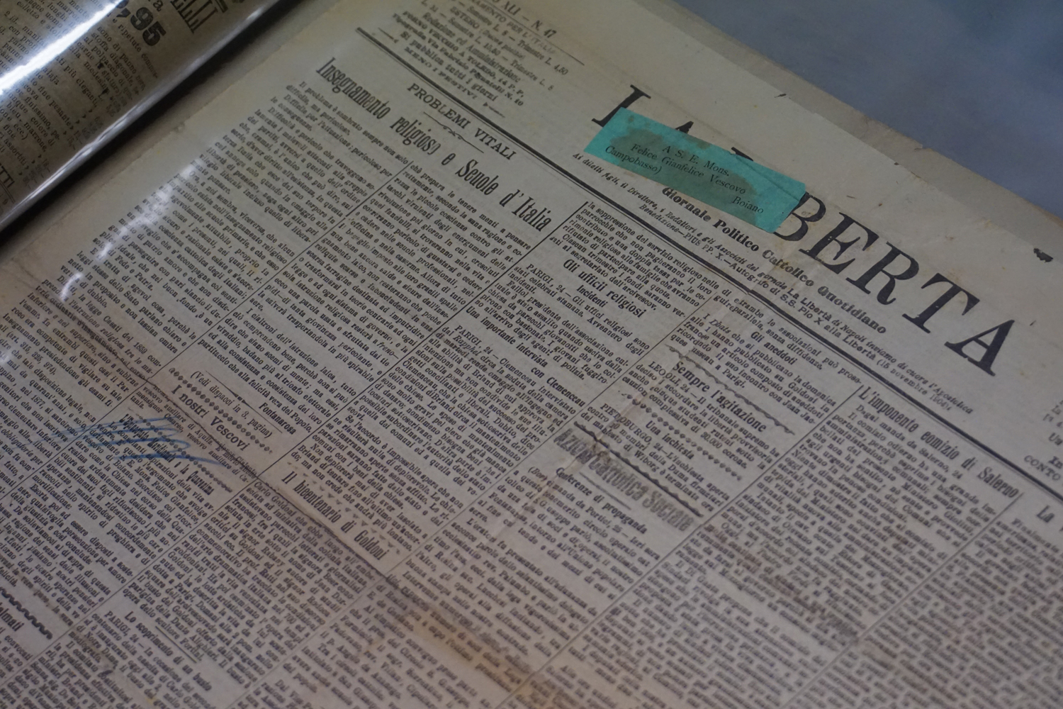 La collezione dell’archivio parrocchiale, peraltro, non si limita solo ai messali e ai registri. Al fianco delle carte rilegate ci sono i fogli sciolti della stampa cattolica raccolta dallo stesso Felice Gianfelice, e pure tanti manifesti d’epoca, capaci di restituire tanto lo stile pastorale quanto il gusto estetico della prima metà del secolo scorso. Un manifesto in particolare attira l’attenzione di chi entra nella stanza dell’Archivio storico della parrocchia di Cittaducale: annuncia la “Settimana del Santo Vangelo” che si è tenuta dal 16 al 20 luglio 1958.