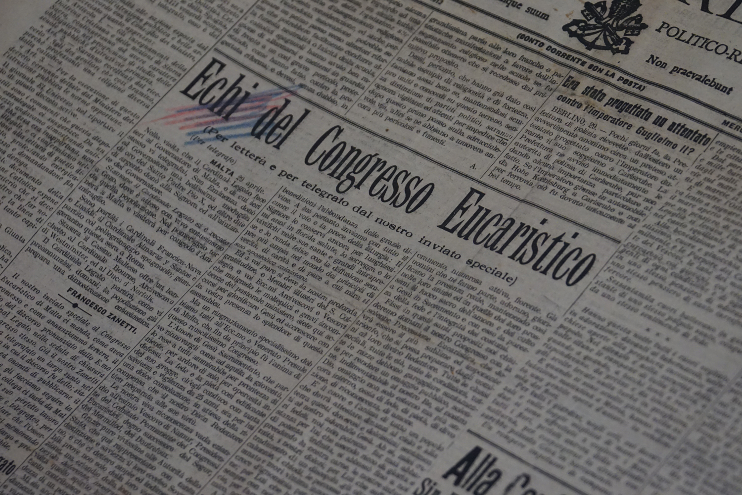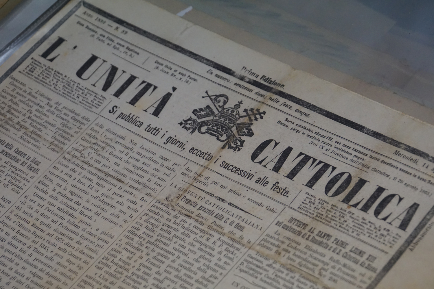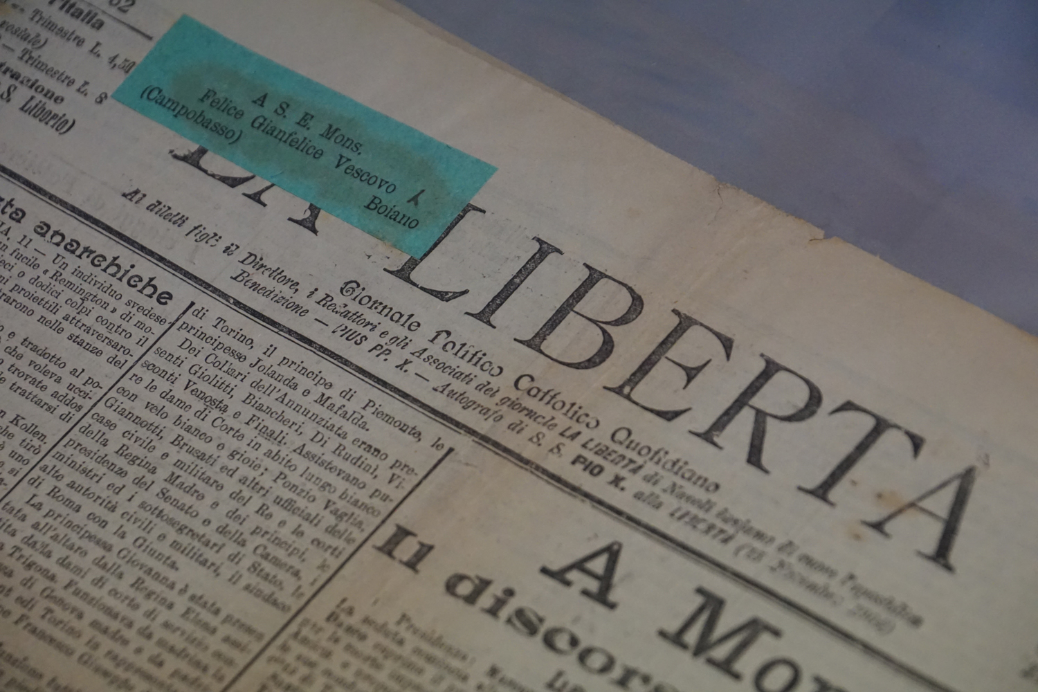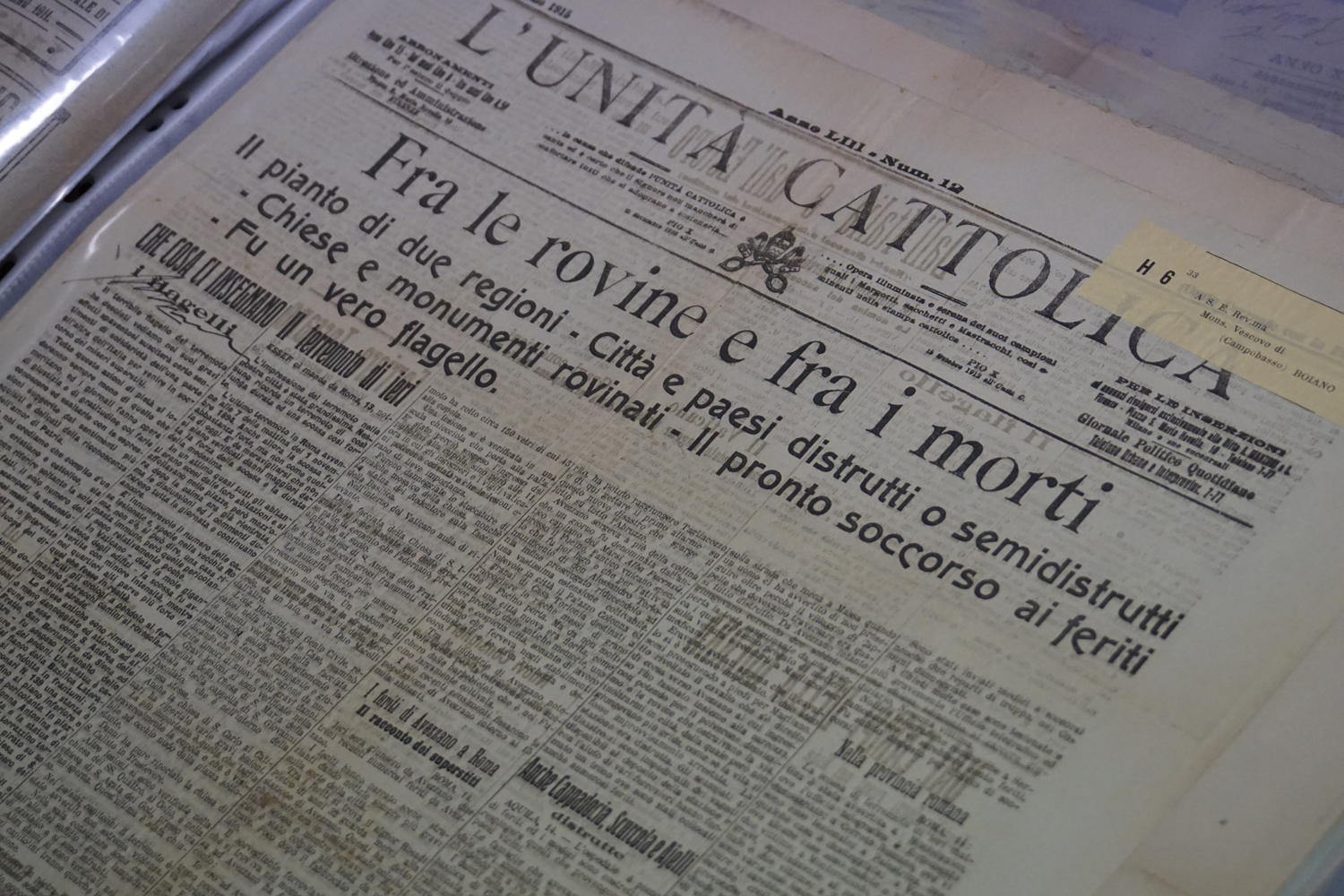 La collezione dell’archivio parrocchiale, peraltro, non si limita solo ai messali e ai registri. Al fianco delle carte rilegate ci sono i fogli sciolti della stampa cattolica raccolta dallo stesso Felice Gianfelice, e pure tanti manifesti d’epoca, capaci di restituire tanto lo stile pastorale quanto il gusto estetico della prima metà del secolo scorso. Un manifesto in particolare attira l’attenzione di chi entra nella stanza dell’Archivio storico della parrocchia di Cittaducale: annuncia la “Settimana del Santo Vangelo” che si è tenuta dal 16 al 20 luglio 1958.