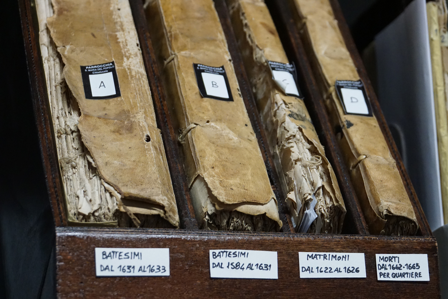 L’archivio, infatti, conserva le tracce dei quattro quartieri che componevano Cittaducale: Sant’Antimo, Santa Cecilia, San Giovanni e Santa Maria di Cesoni. «Parliamo di dati che vanno dal 1712 al 1919. Dopo il 1920 i registri sono tutti passati nella Cattedrale. Il titolo di Madonna del Popolo, allude proprio a questo suo abbracciare e riunire i residenti delle diverse zone».