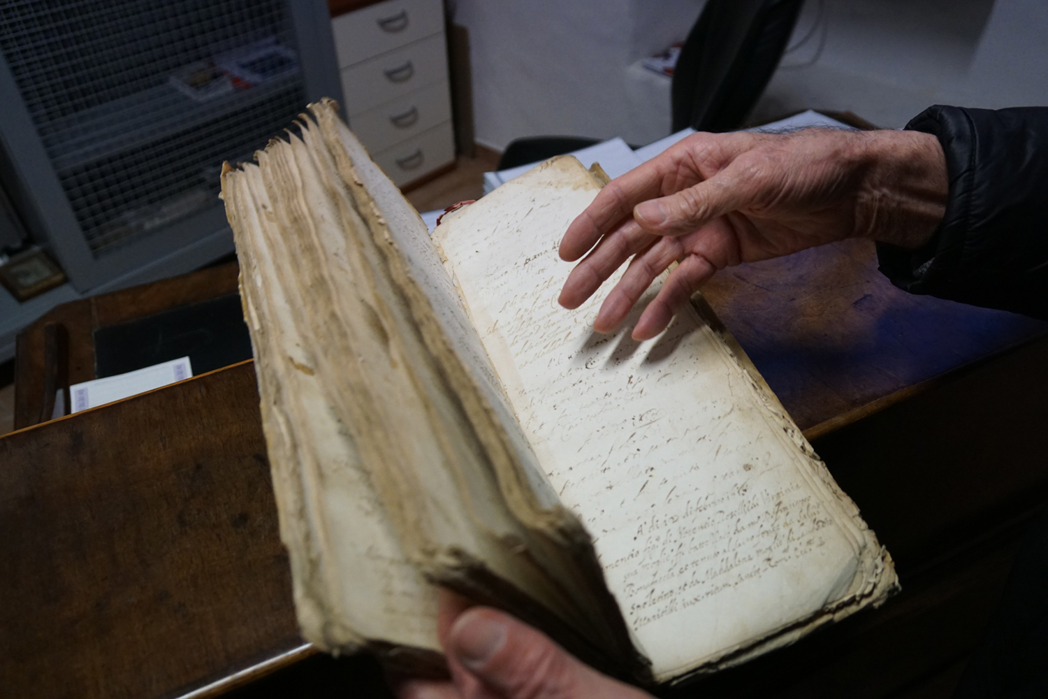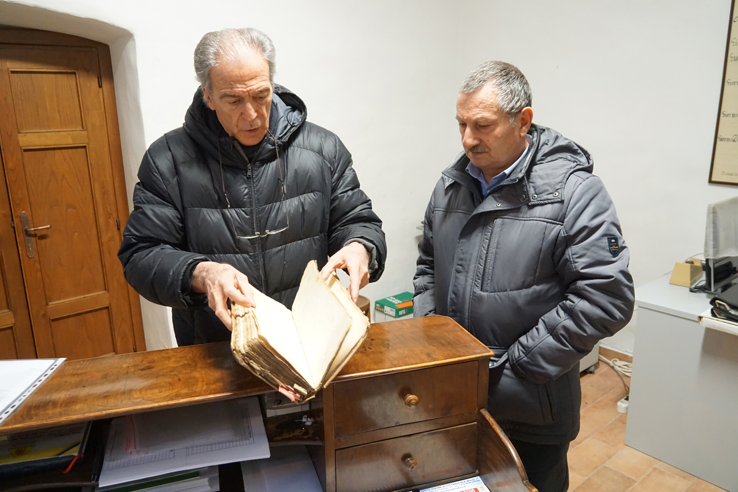 «Poco per volta riuscimmo a mettere tutto insieme in una stanza e don Ferdinando provvide a un primo mobile per la conservazione. A quel punto abbiamo scritto alla Sovraintendenza per i Beni Culturali per avere un riconoscimento ufficiale, inviando un elenco con sopra riportato tutto il materiale di cui disponiamo, compresi i documenti dello stato civile».
