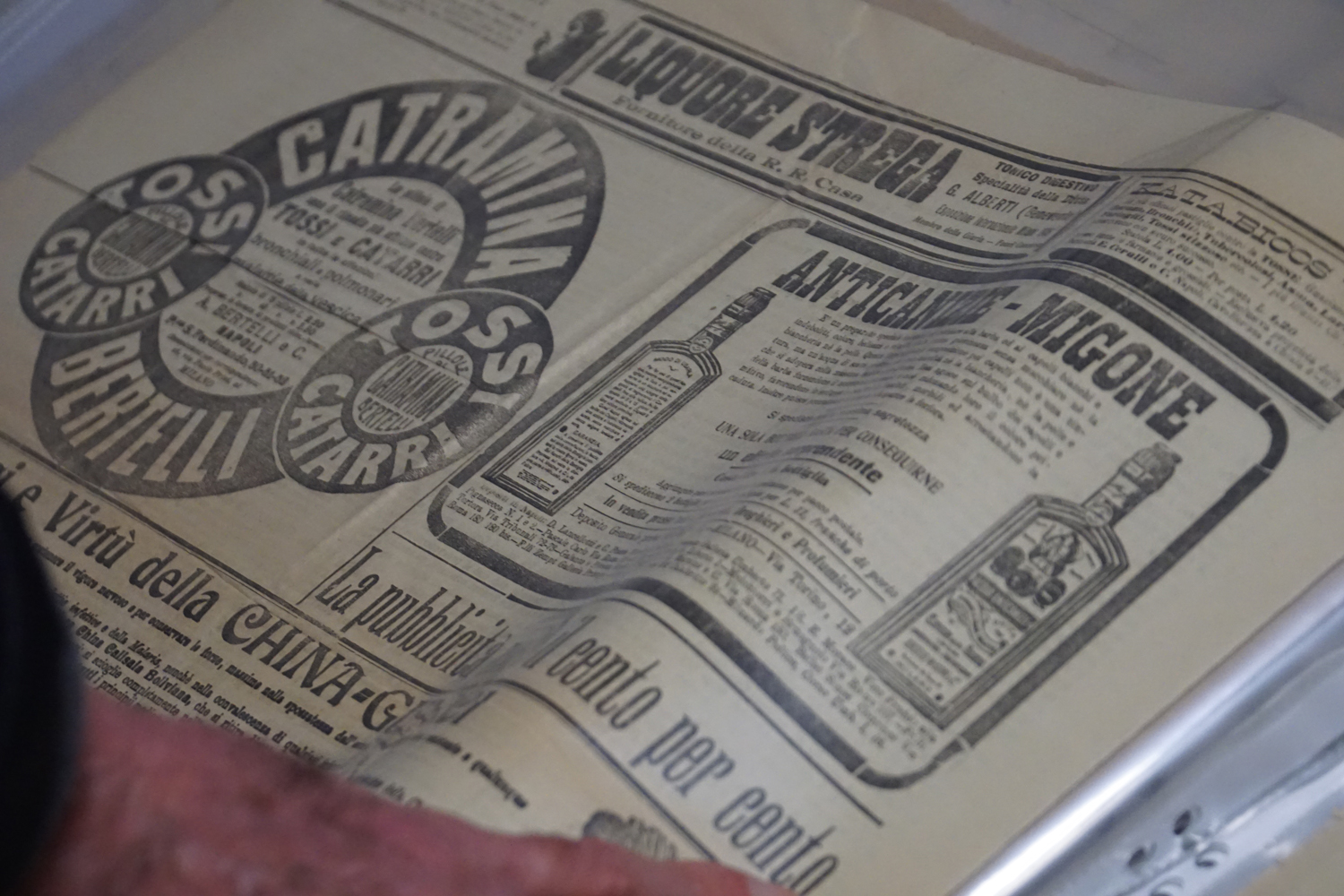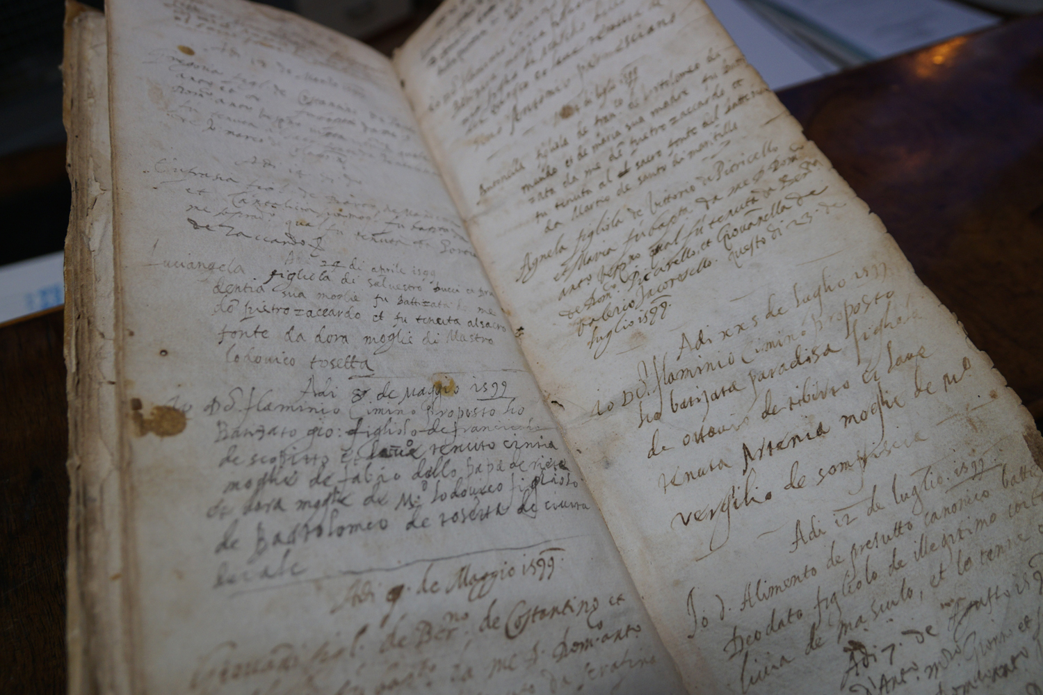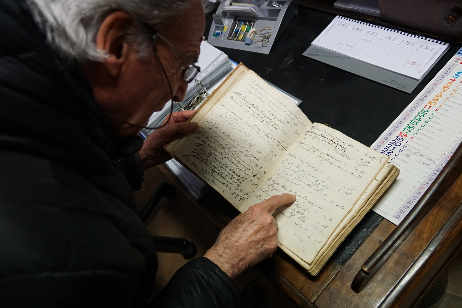 «Il giorno successivo – racconta Augusto, che nel frattempo è diventato il custode del materiale recuperato – mi misi a tirare fuori dalla soffitta e dal campanile l’attuale collezione di documenti. Era tutto materiale depositato e dimenticato, tanto da dover riaprire ogni volume, pagina per pagina, con guanti e mascherina, per sottrarre la carta ai danni dell’aria chiusa, troppo secca o troppo umida, e al pericolo dei topi».