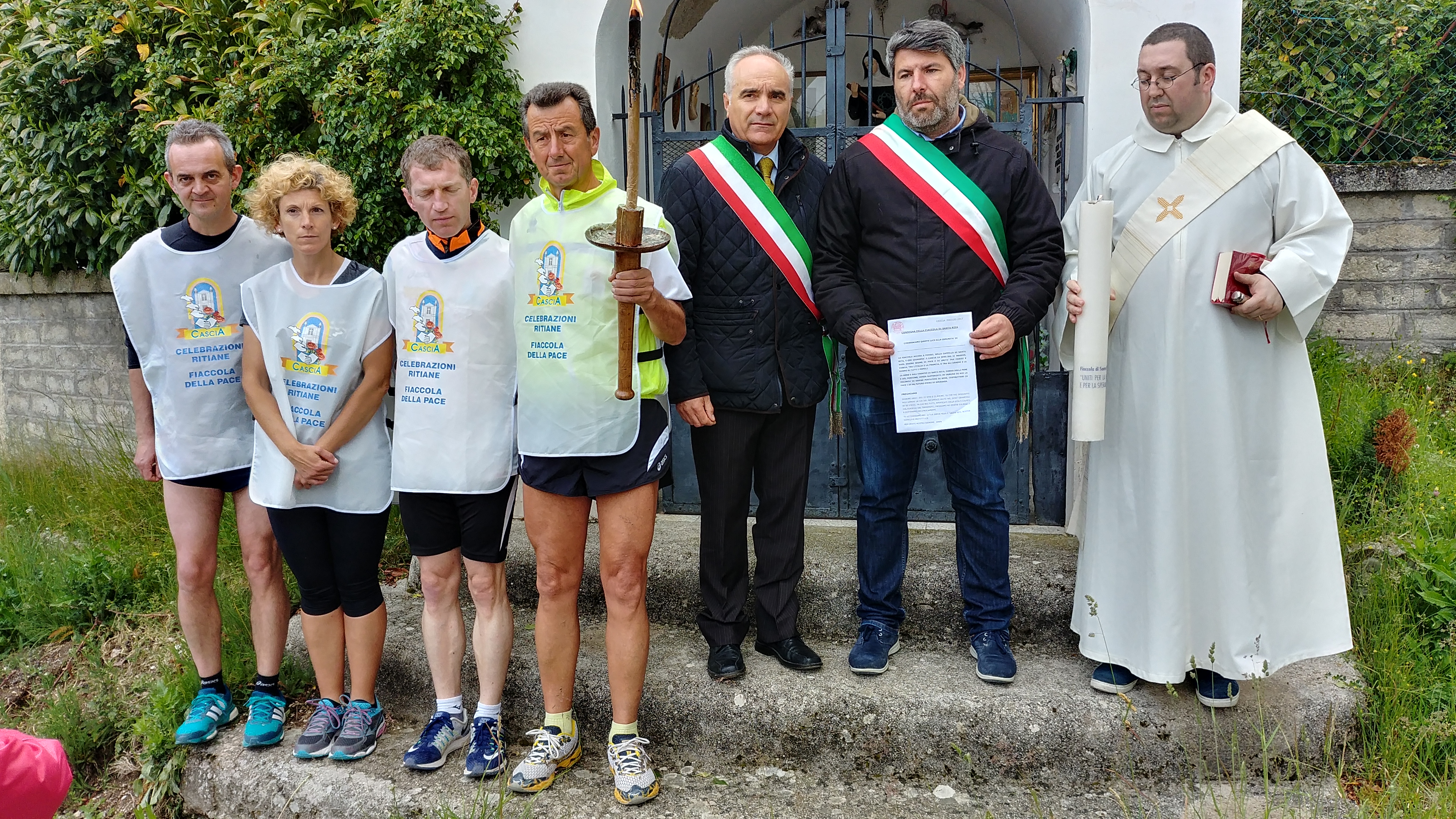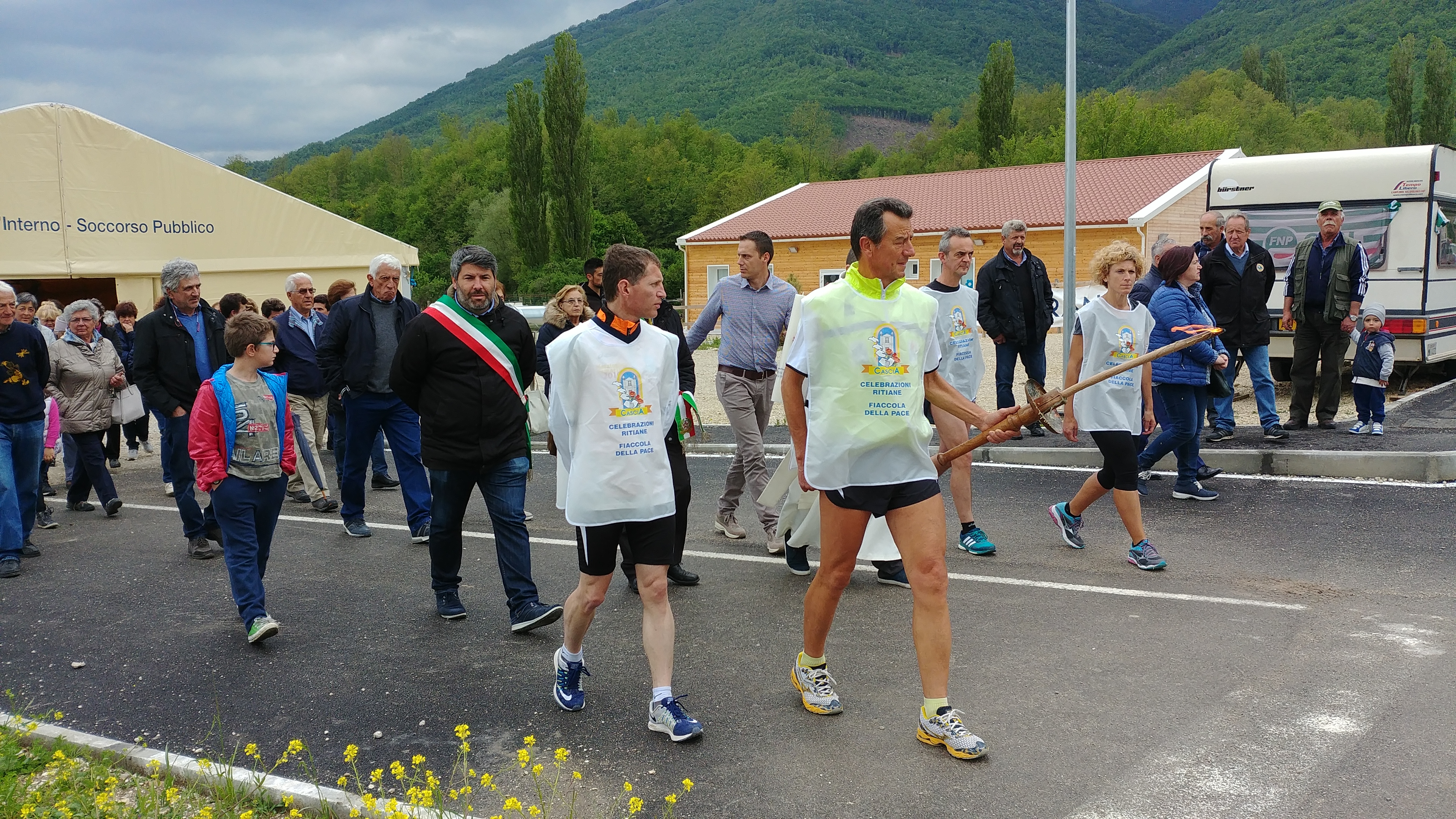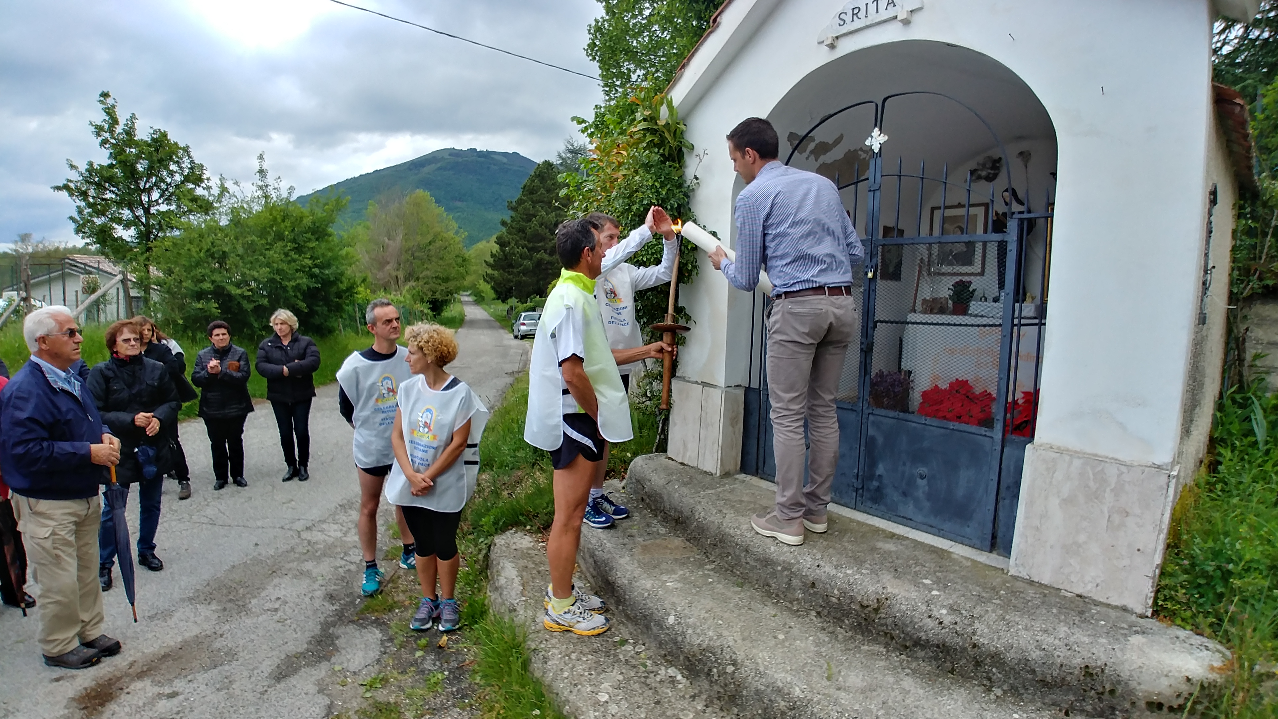 Ad accogliere la fiaccola, il sindaco di Cittareale Francesco Nelli ed una nutrita delegazione di parrocchiani e rappresentanti dell’amministrazione comunale di Cittareale.