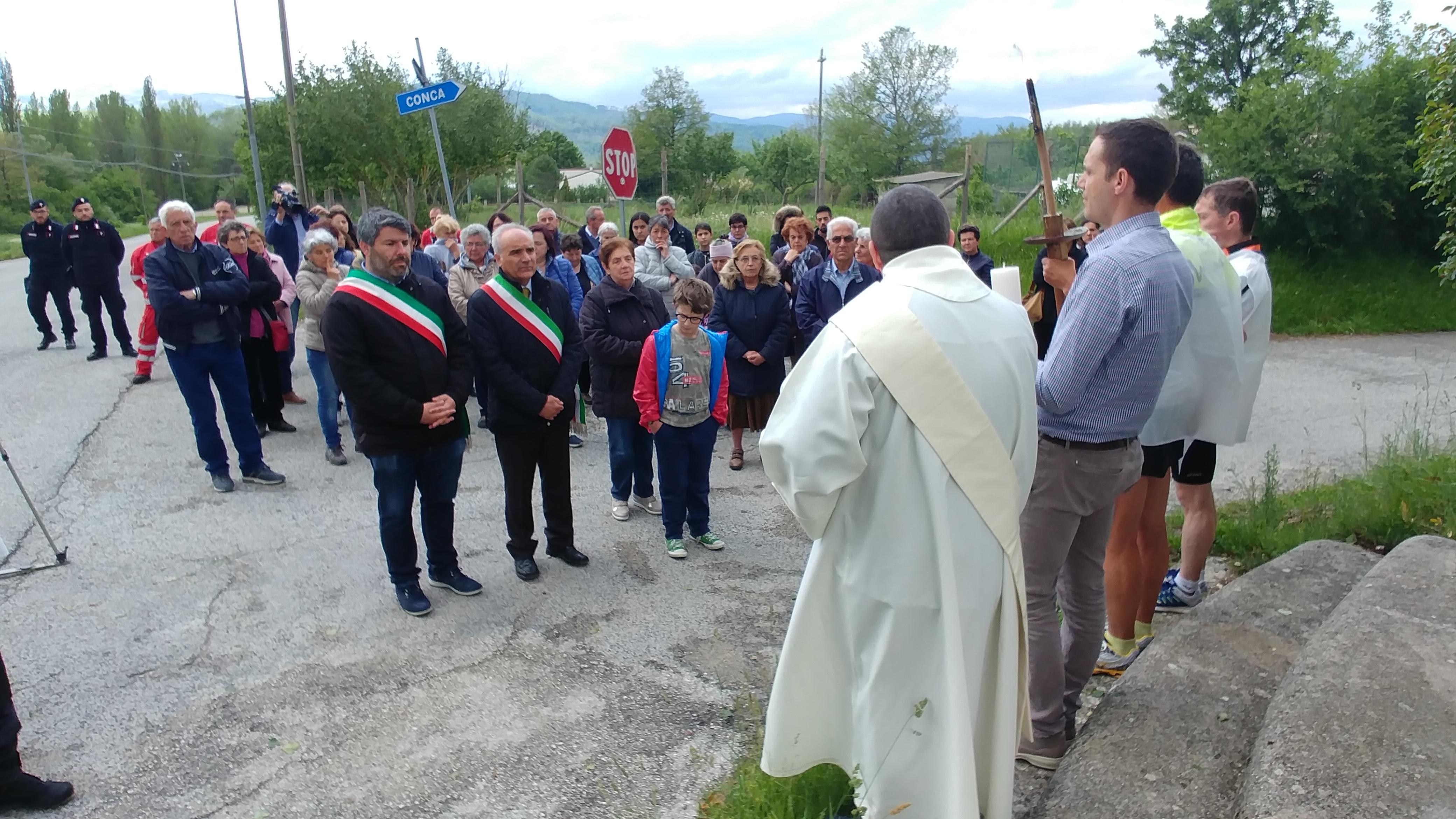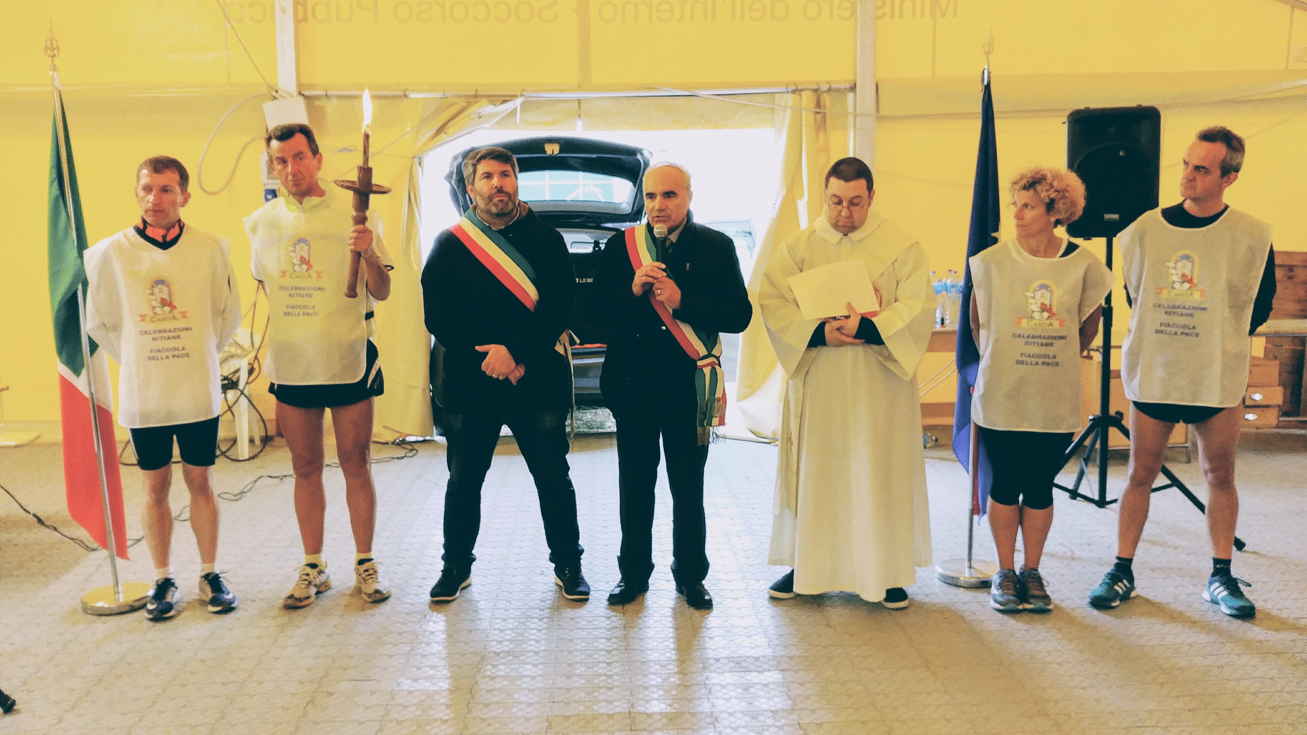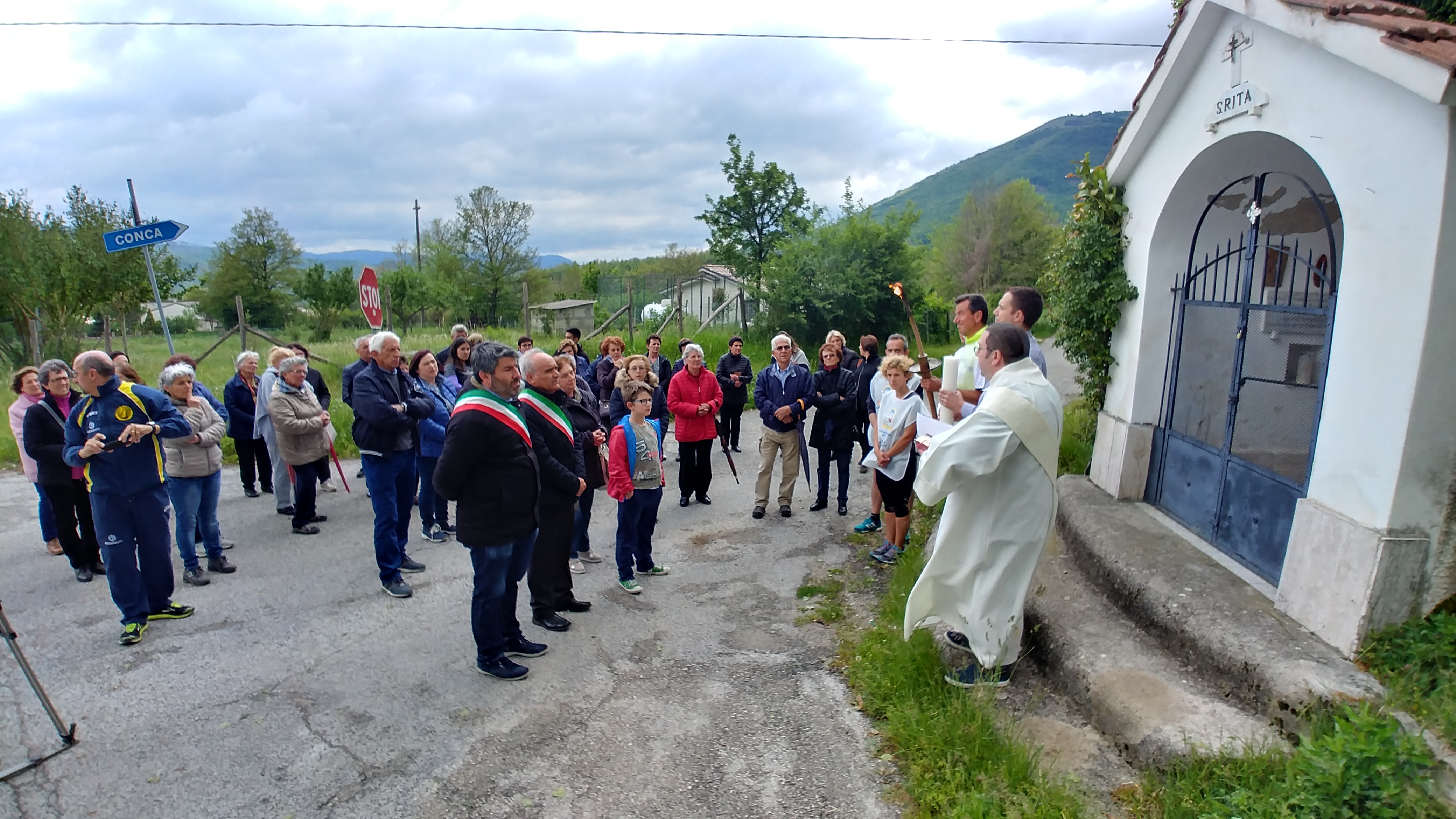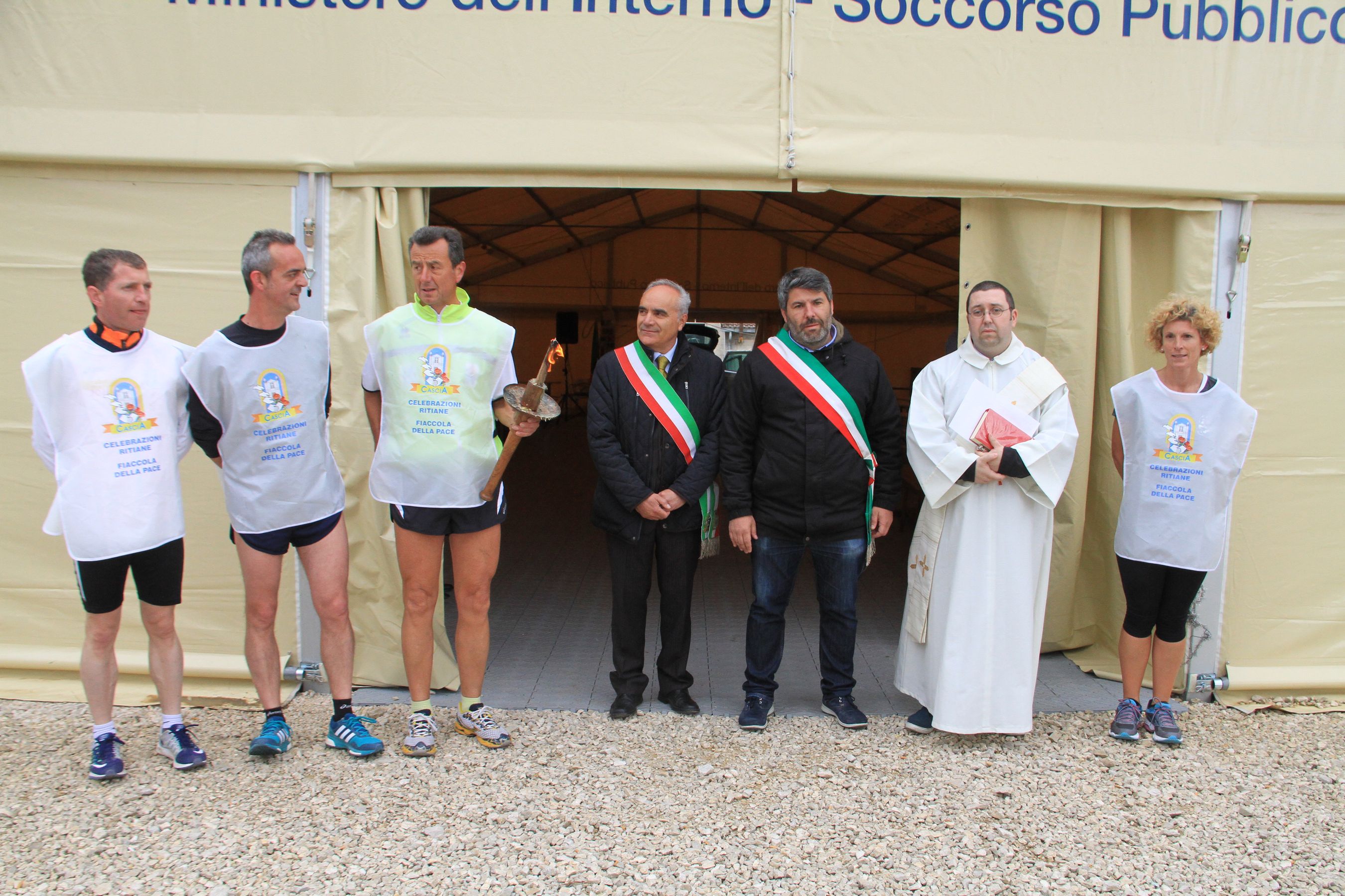 Ad accogliere la fiaccola, il sindaco di Cittareale Francesco Nelli ed una nutrita delegazione di parrocchiani e rappresentanti dell’amministrazione comunale di Cittareale.
