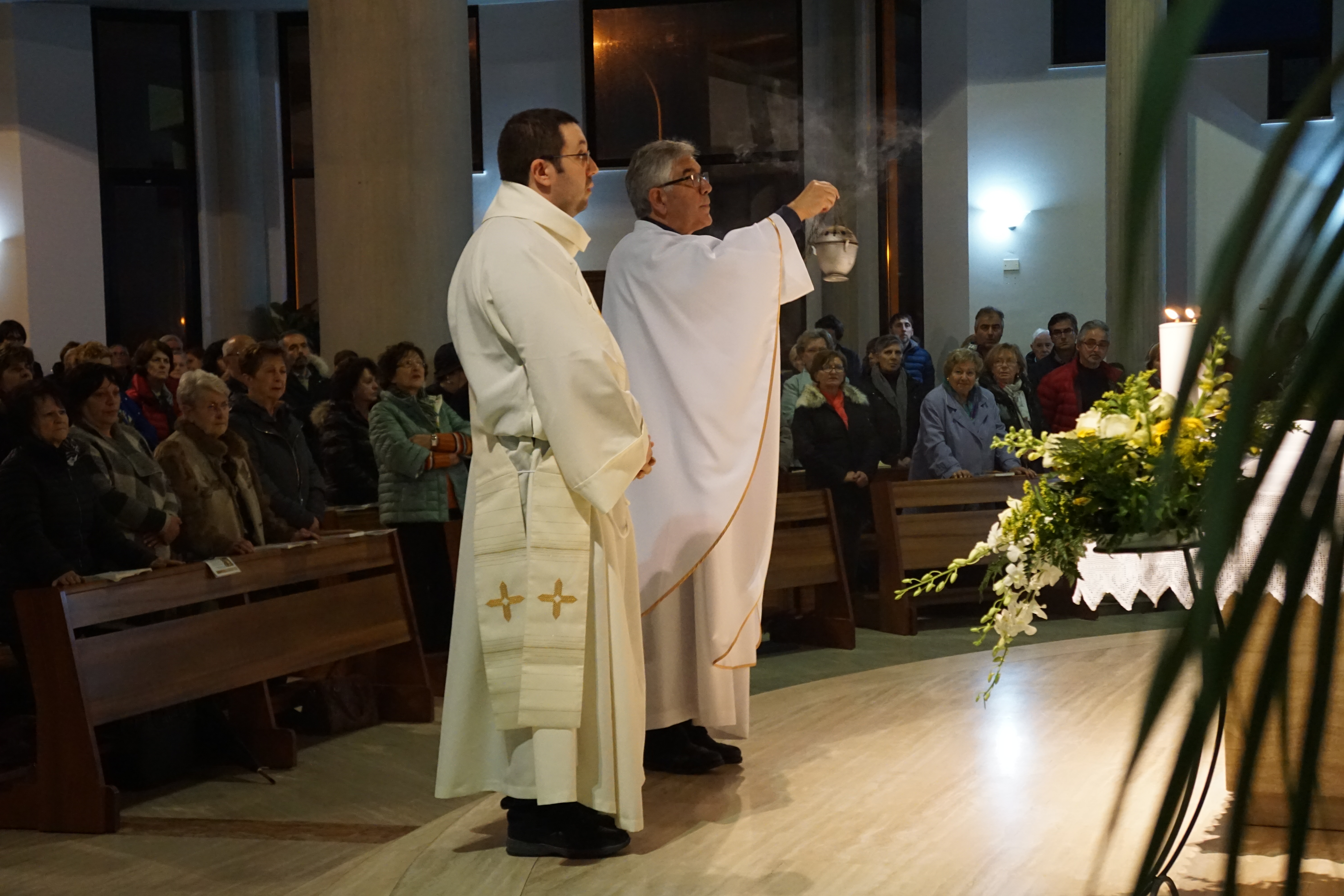 Il rito si è svolto nella chiesa di San Giovanni Battista, gremita dei fedeli del popoloso quartiere, ma anche dei parrocchiani di Santa Rufina venuti per salutare don Lorenzo, loro parroco per trent’anni, e delle altrettante persone legate a don Roberto.