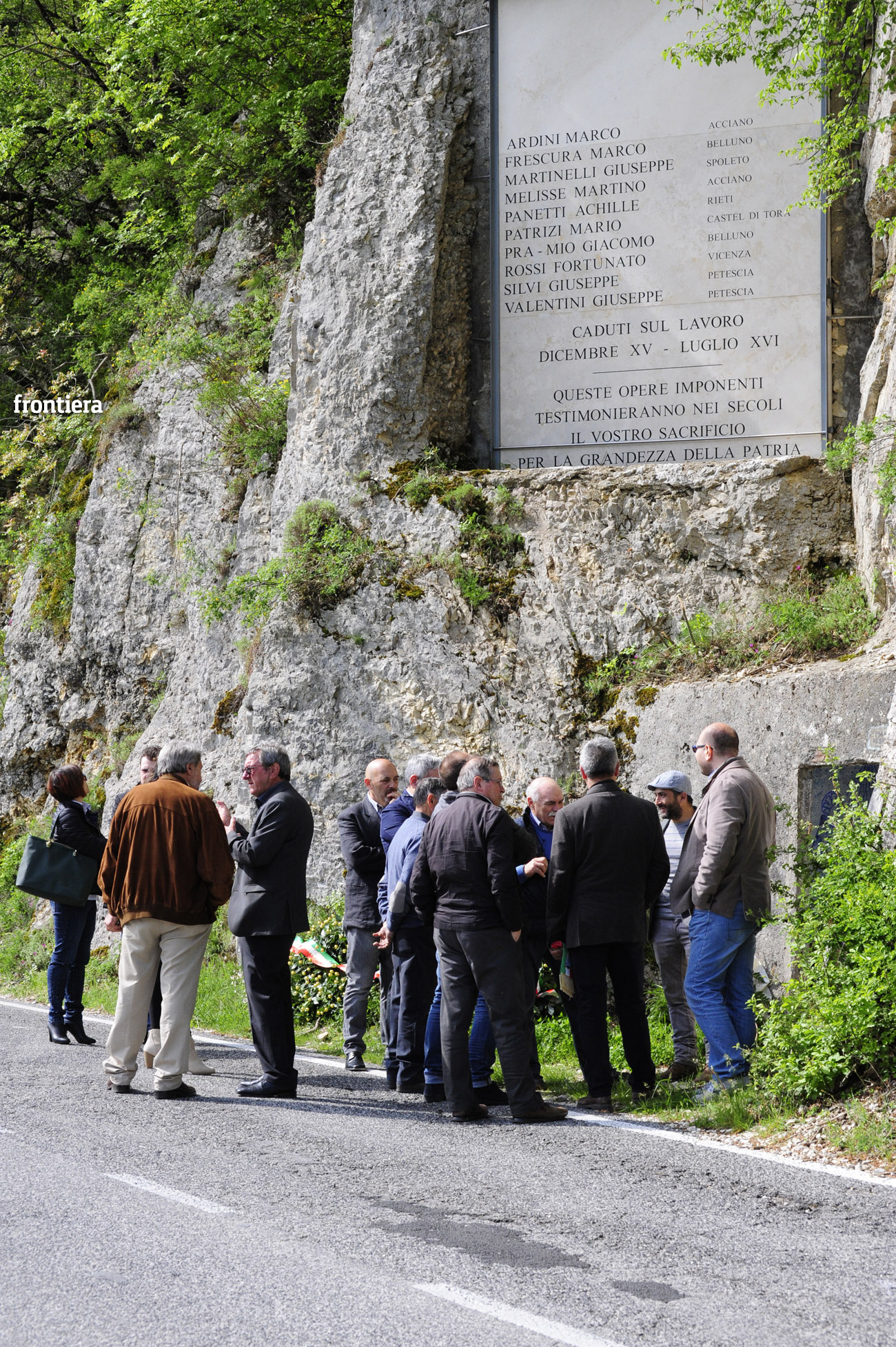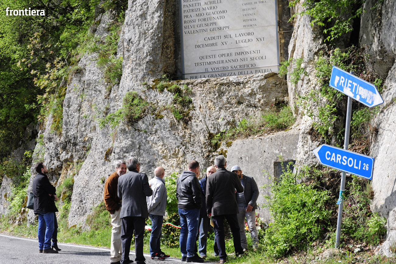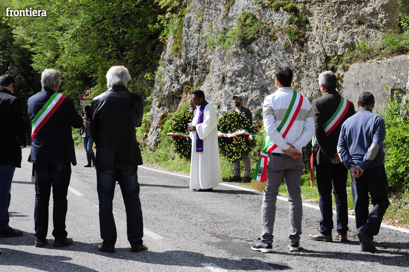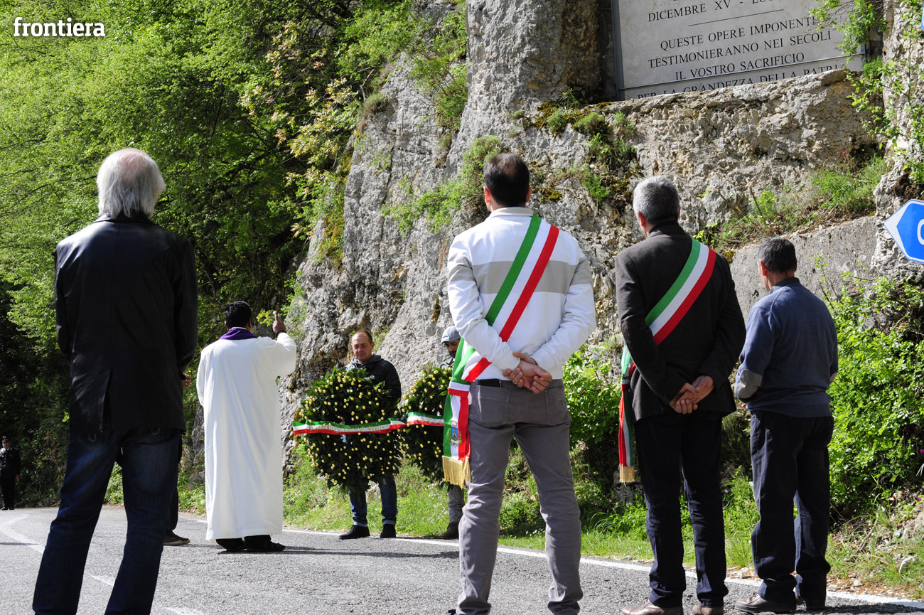 Sotto la lapide con incisi i nomi di Marco Arduini e Martino Melisse di Acciano, Marco Frescura di Belluno, Giuseppe Martinelli di Spoleto, Achille Panetti di Rieti, Mario Patrizi di Castel di Tora, Giacomo Pra-Mio di Belluno, Fortunato Rossi di Vicenza, Giuseppe Silvi e Giuseppe Valentini di Petescia, sono state deposte due corone di fiori, accompagnate dalla preghiera guidata da padre Saverio Shiju, parroco di Rocca Sinibalda.