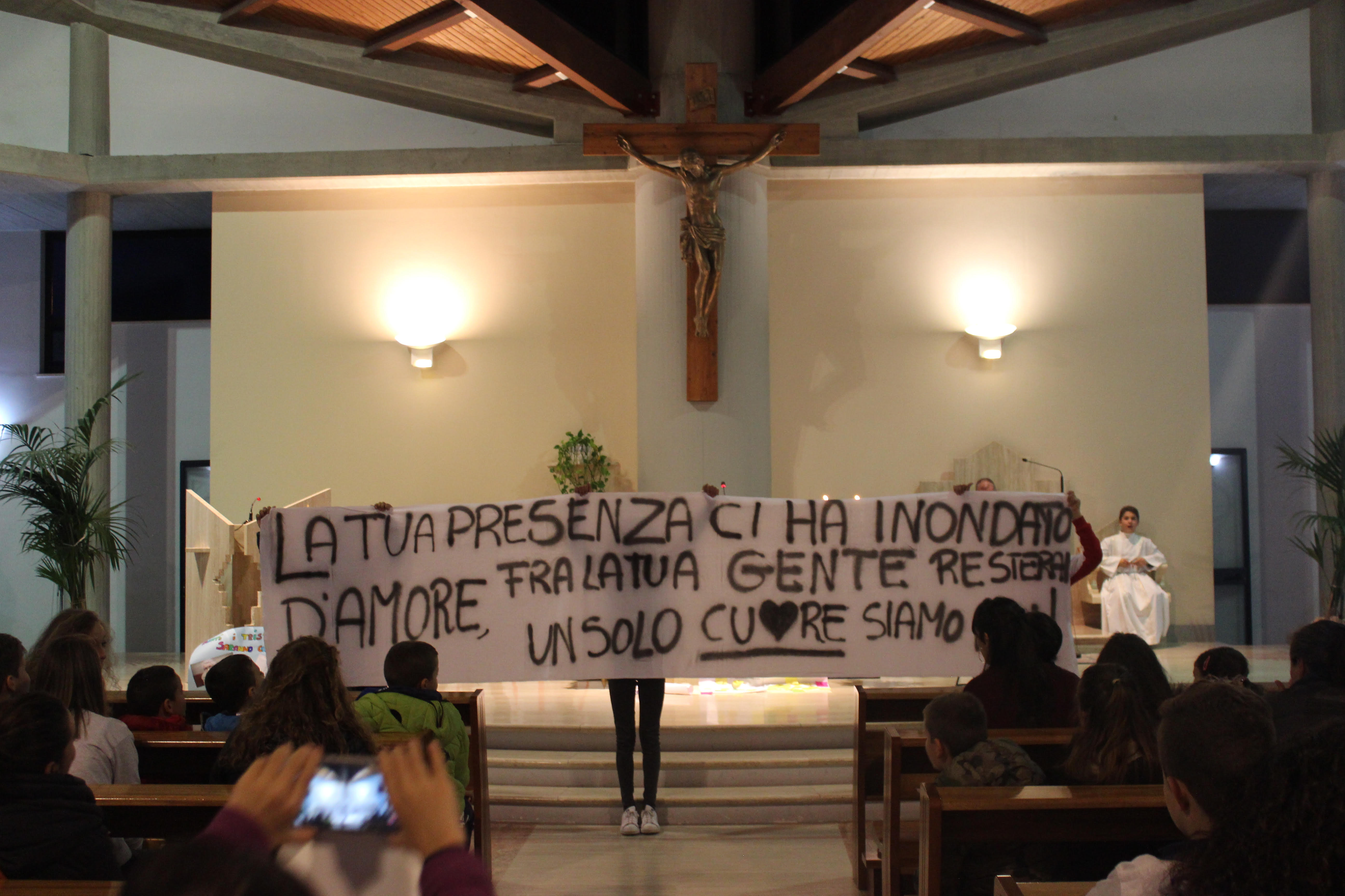 Alla messa vespertina hanno partecipato tutte le famiglie con momenti profondi, simboli e applausi commossi, a cui si è aggiunta l’irruente creatività, tipica della giovane età, con uno striscione e la lettura di una lettera di ringraziamento. Una dimostrazione di stima e affetto da parte di tutti coloro che hanno potuto conoscere la vera accoglienza, grazie ad un sacerdote molto attento anche alle esigenze dell’ultima generazione.