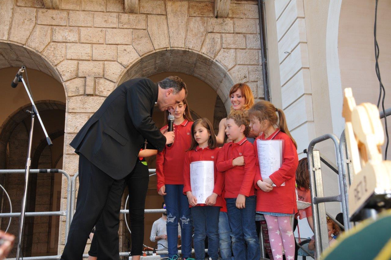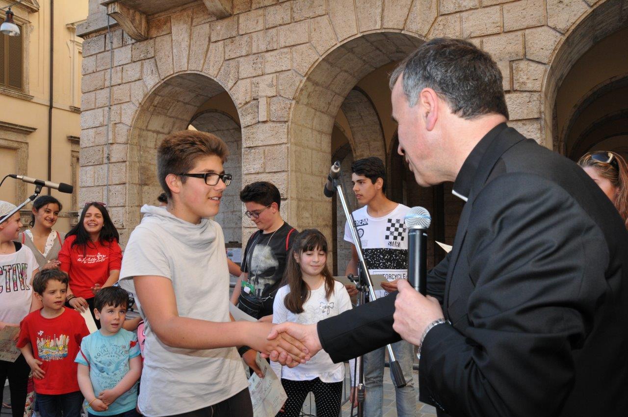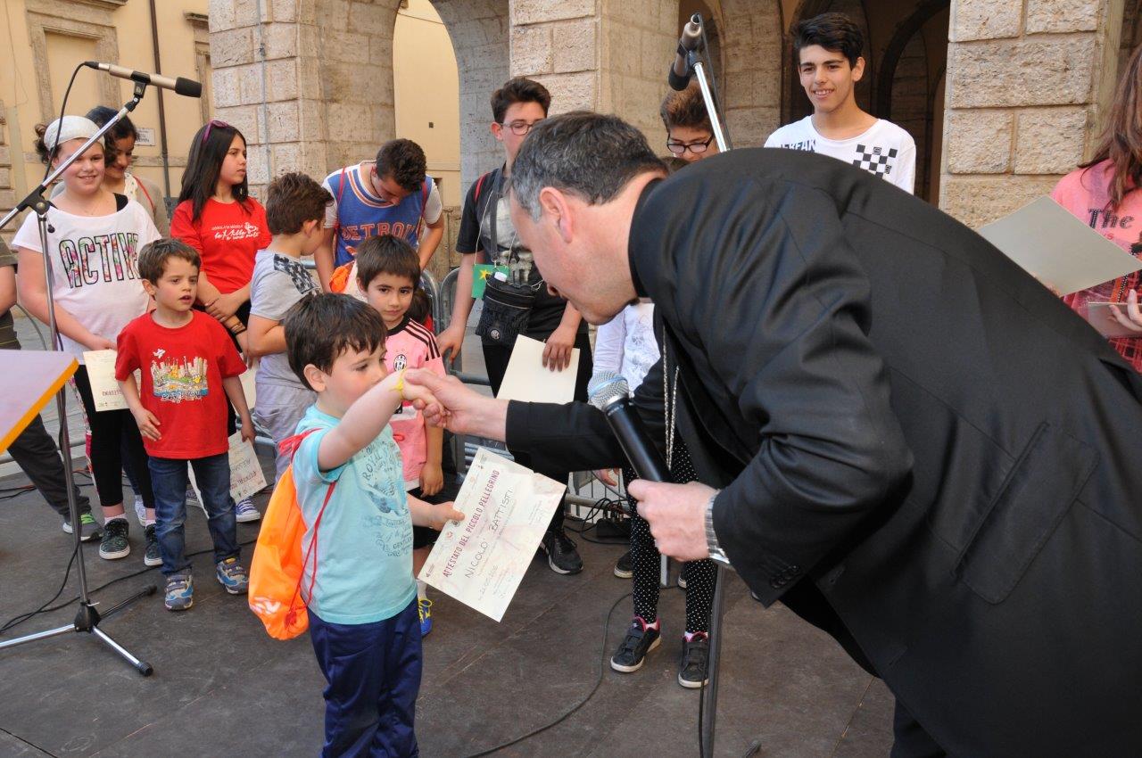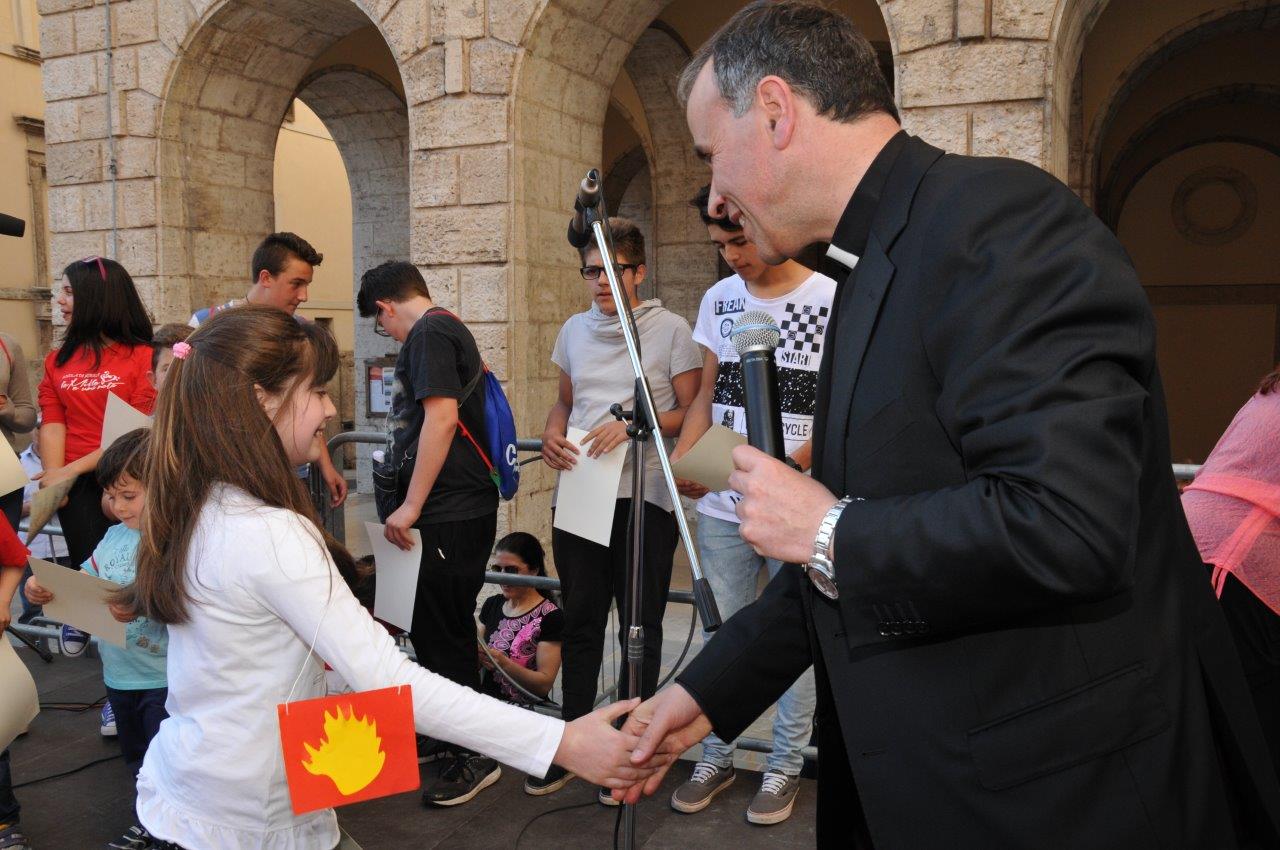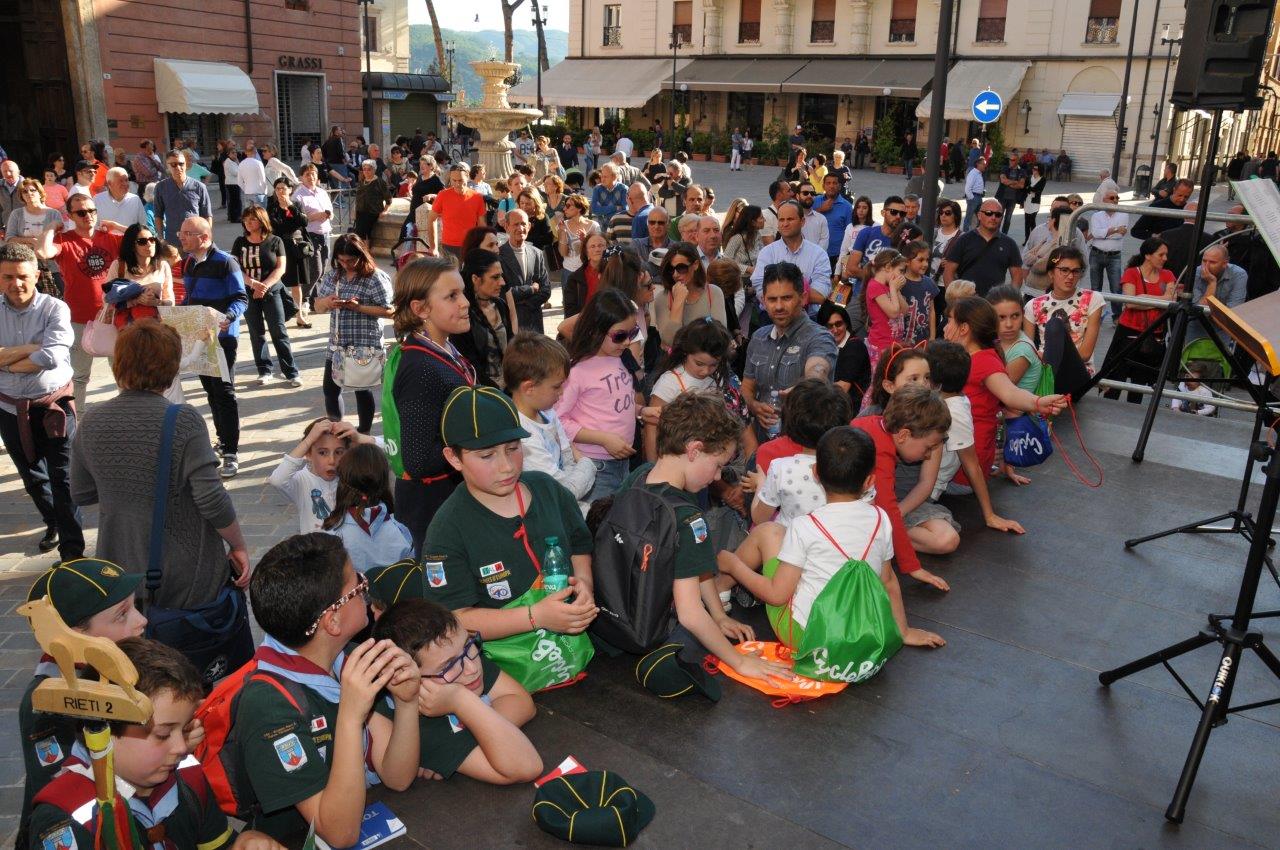 Una quinta tappa svolta nel centro storico di Rieti, dove si è svolta una “Caccia ai talenti, alla scoperta del tesoro di Francesco”, e che in piazza Vittorio Emanuele II ha visto il vescovo Domenico consegnare ai bambini le certificazioni finali del progetto.