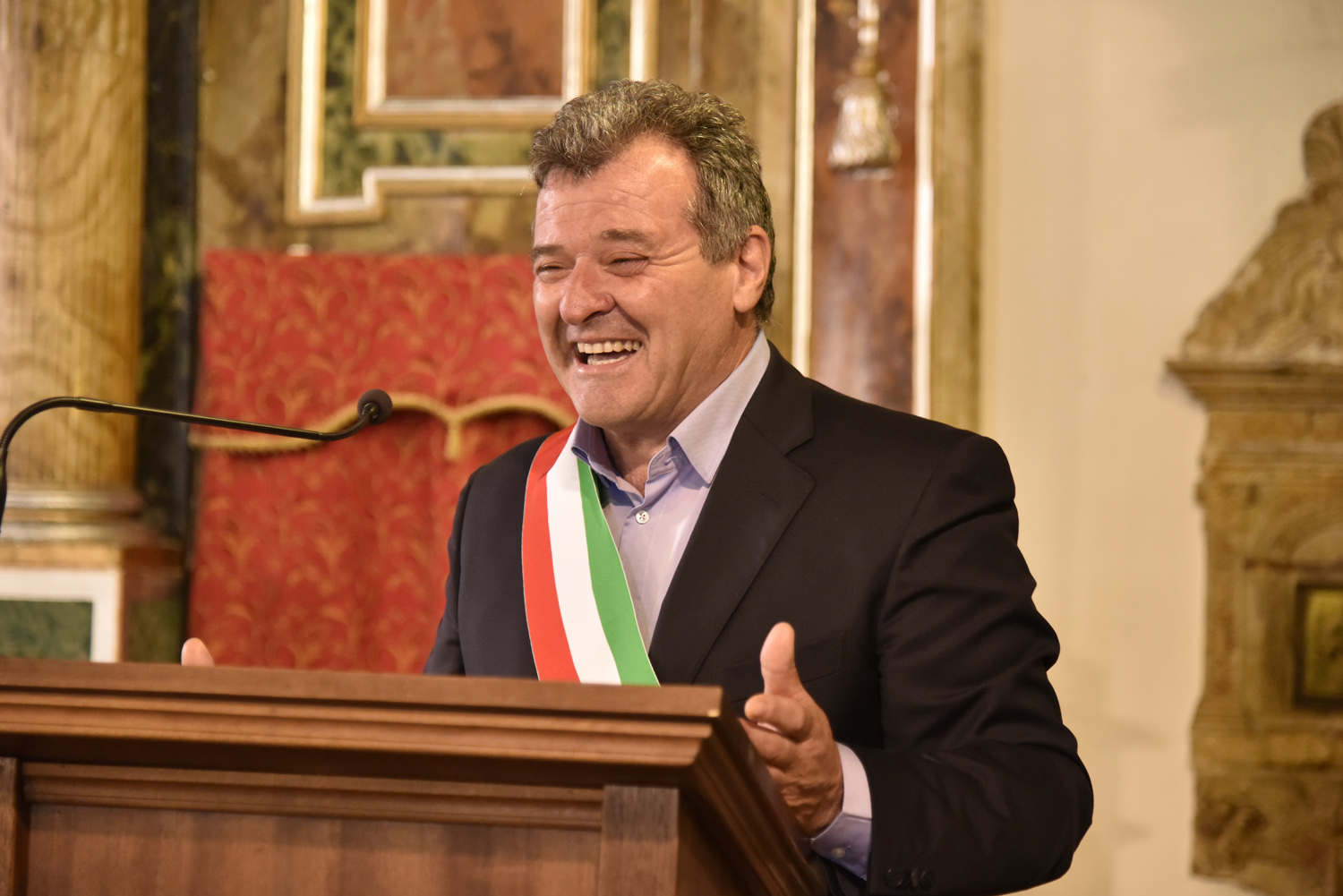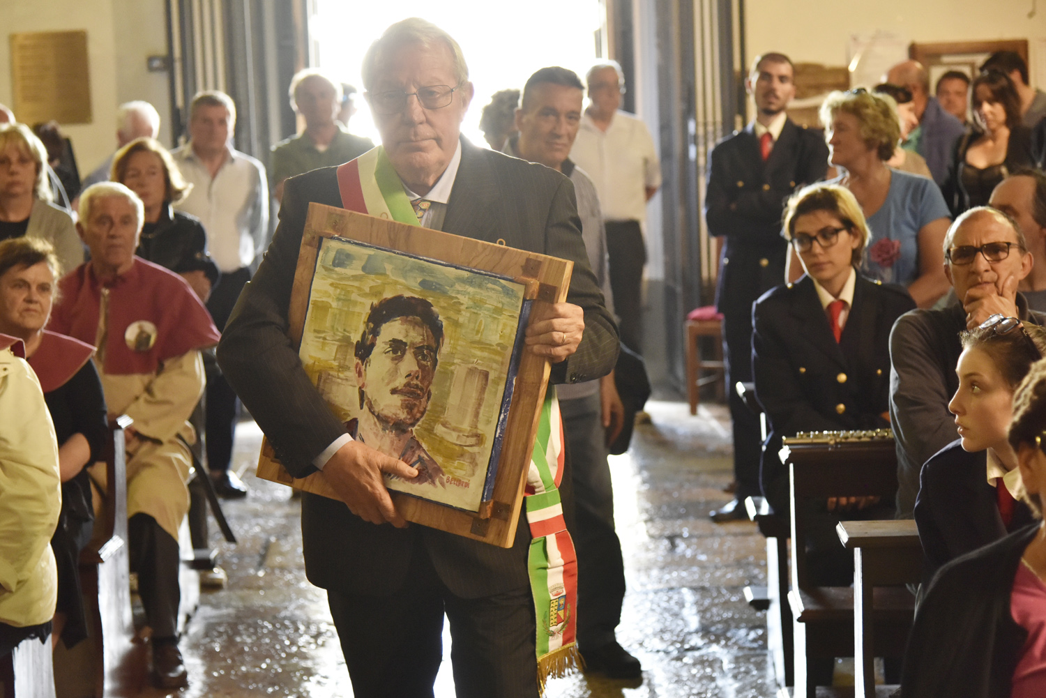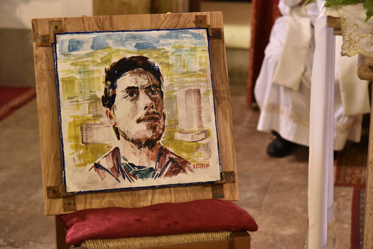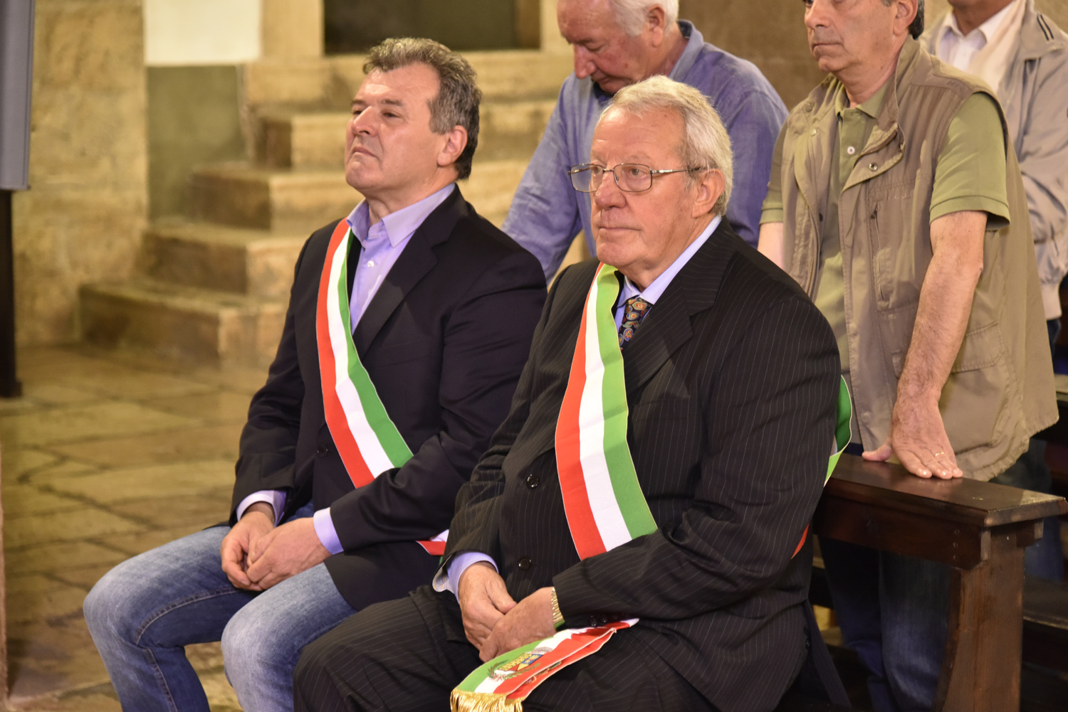 Al termine della Messa, l’atto di omaggio della comunità di Labro a quella di Colli, ricambiando il gesto svolto poco prima nella collegiata che di Colli è la “chiesa matrice”: stavolta è il sindaco di Labro, Gastone Curini, a consegnare a quello di Colli, Alberto Micanti, un quadro in bassorilievo, raffigurante la patrona santa Maria Maddalena, anch’esso opera dell’artista Franco Bellardi. Residente in paese e autore del ciclo pittorico che arricchisce la chiesa con l’affresco dell’abside e le quattro tele agli altari laterali, anche il pittore ha rivolto il suo saluto ai convenuti, prima che il Santissimo Sacramento venisse esposto nell’ostensorio. La santa ostia, sotto il baldacchino sorretto dai confratelli, è stata condotta nel sacro corteo, con la partecipazione dei parrocchiani e dei sodalizi con i loro stendardi e insegne, fino alla vecchia chiesa di Santa Maria Maddalena, fuori il paese, recuperata anni fa e di recente riconsacrata dal vescovo Pompili, dove è stato cantato il Te Deum di ringraziamento per concludere con la benedizione eucaristica impartita da monsignor Lucarelli.