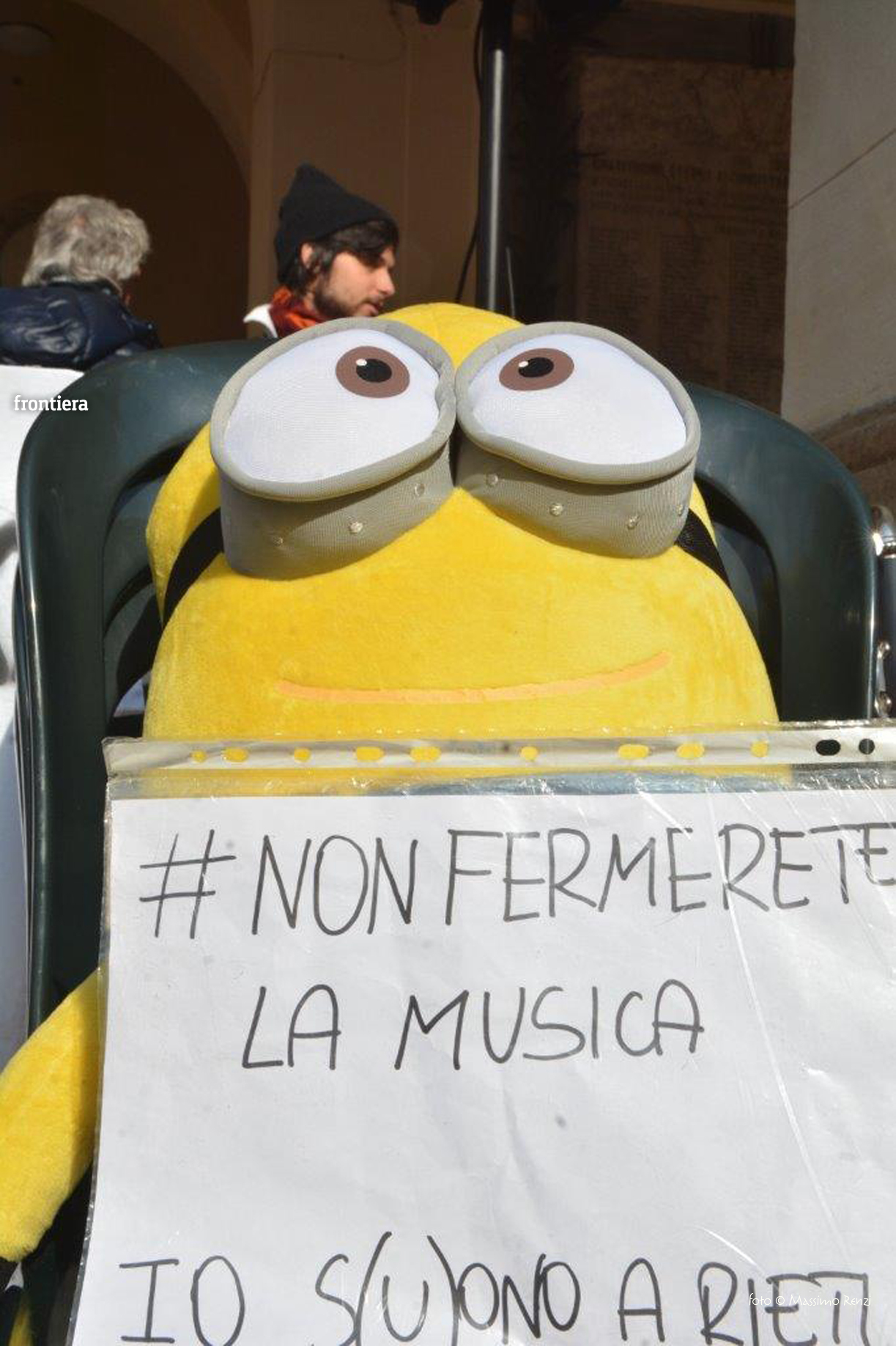Intanto i giovani musicisti non si perdono d’animo e rilanciano. Sabato 14 febbraio sono tutti in Piazza Vittorio Emanuele II con il proprio strumento per dar vita ad un concerto all’aperto. Un avvenimento che intende coinvolgere la città dalle 9 di mattina fino alle 24. E alle 16 tutti i musicisti reatini sono invitati a partecipare con il proprio strumento in segno di solidarietà nei confronti degli allievi. Una iniziativa aperta anche alle scuole medie e superiori della città e dei dintorni.