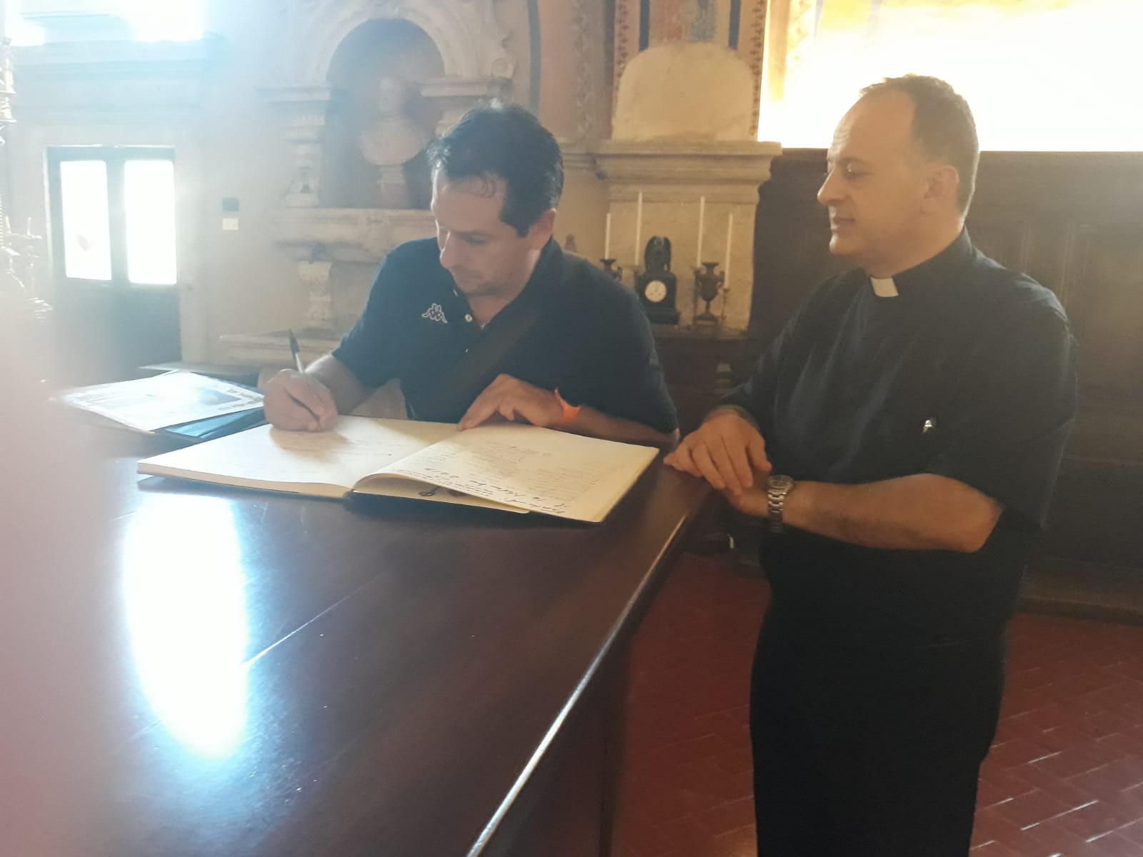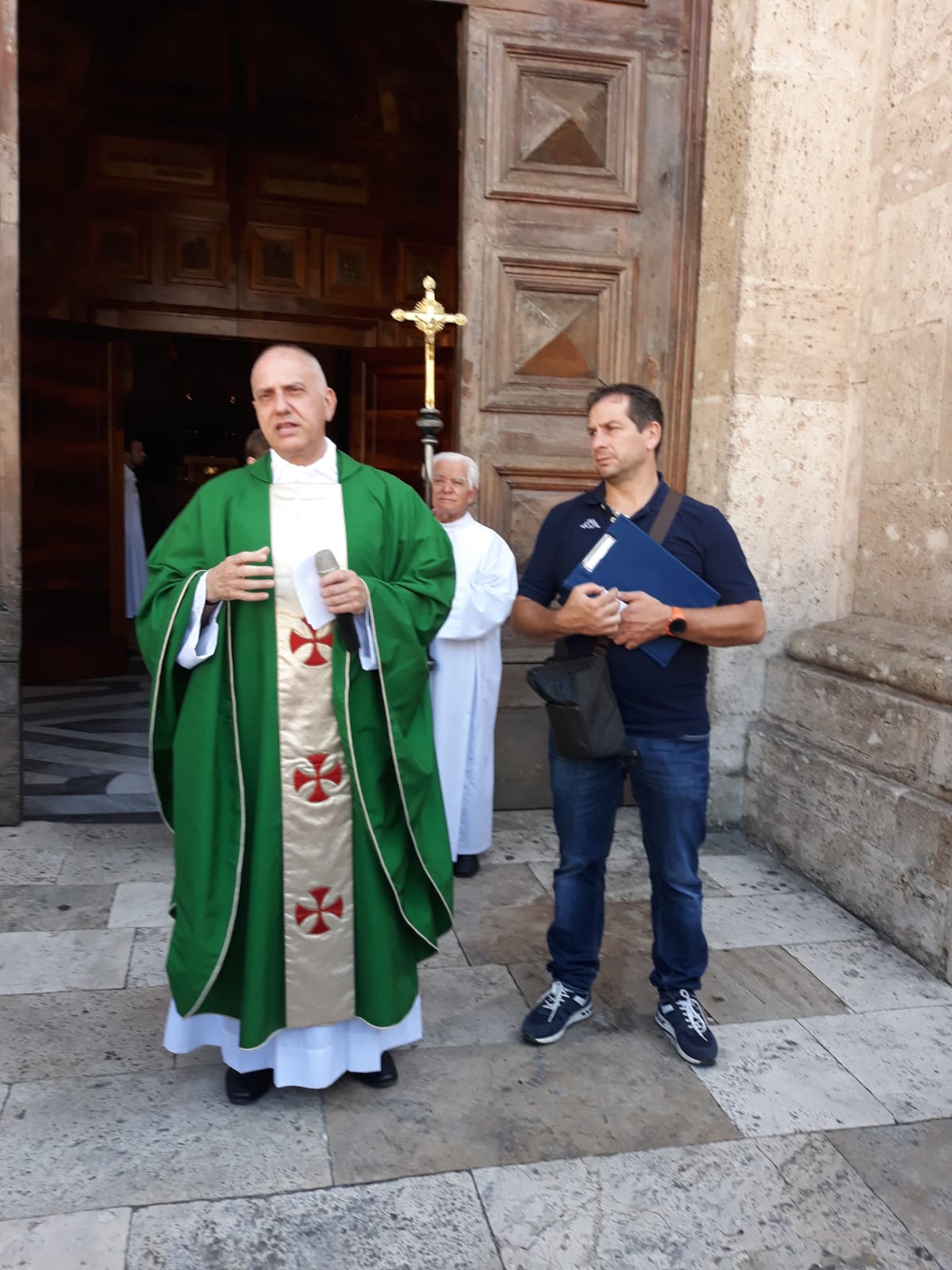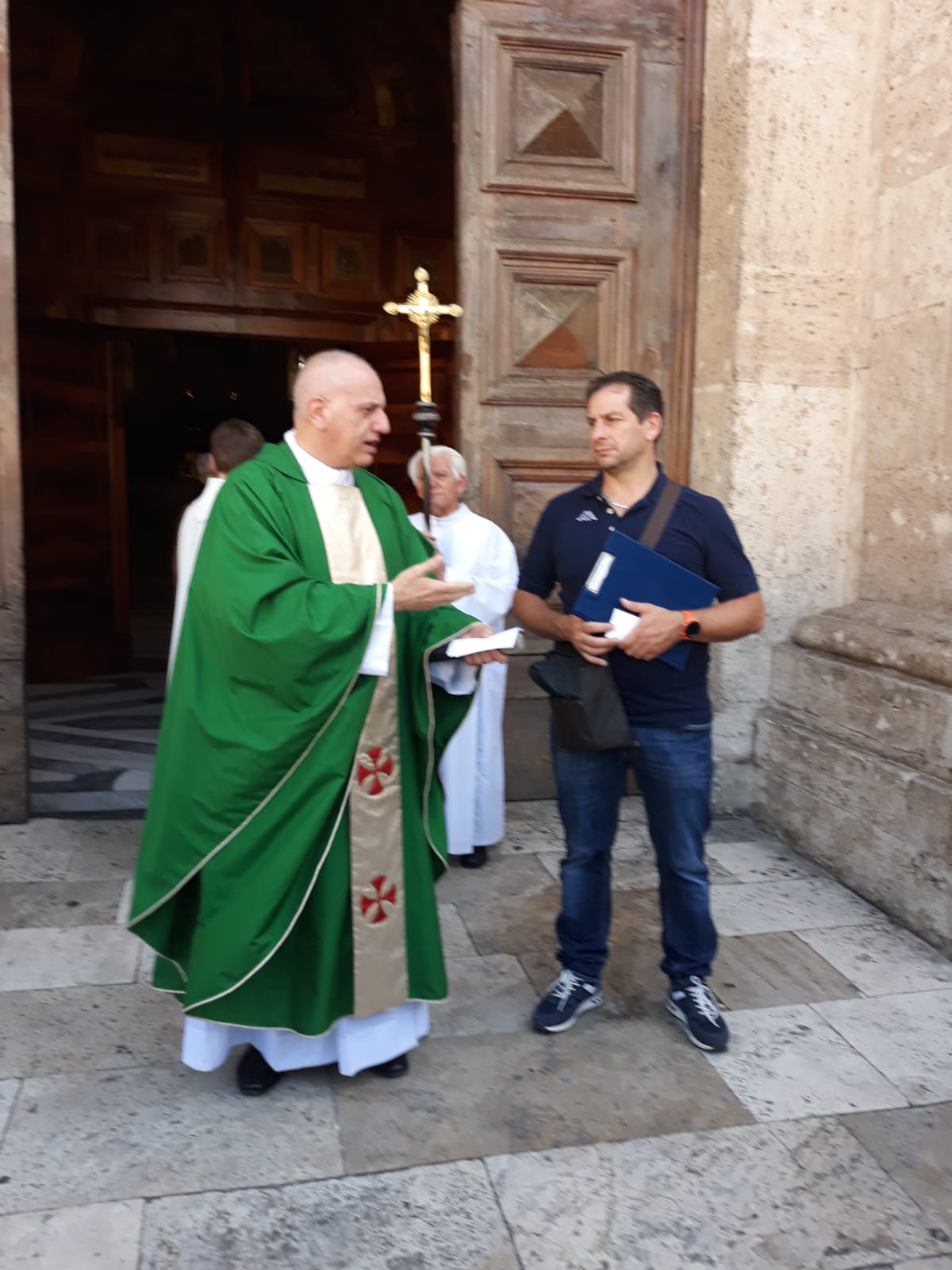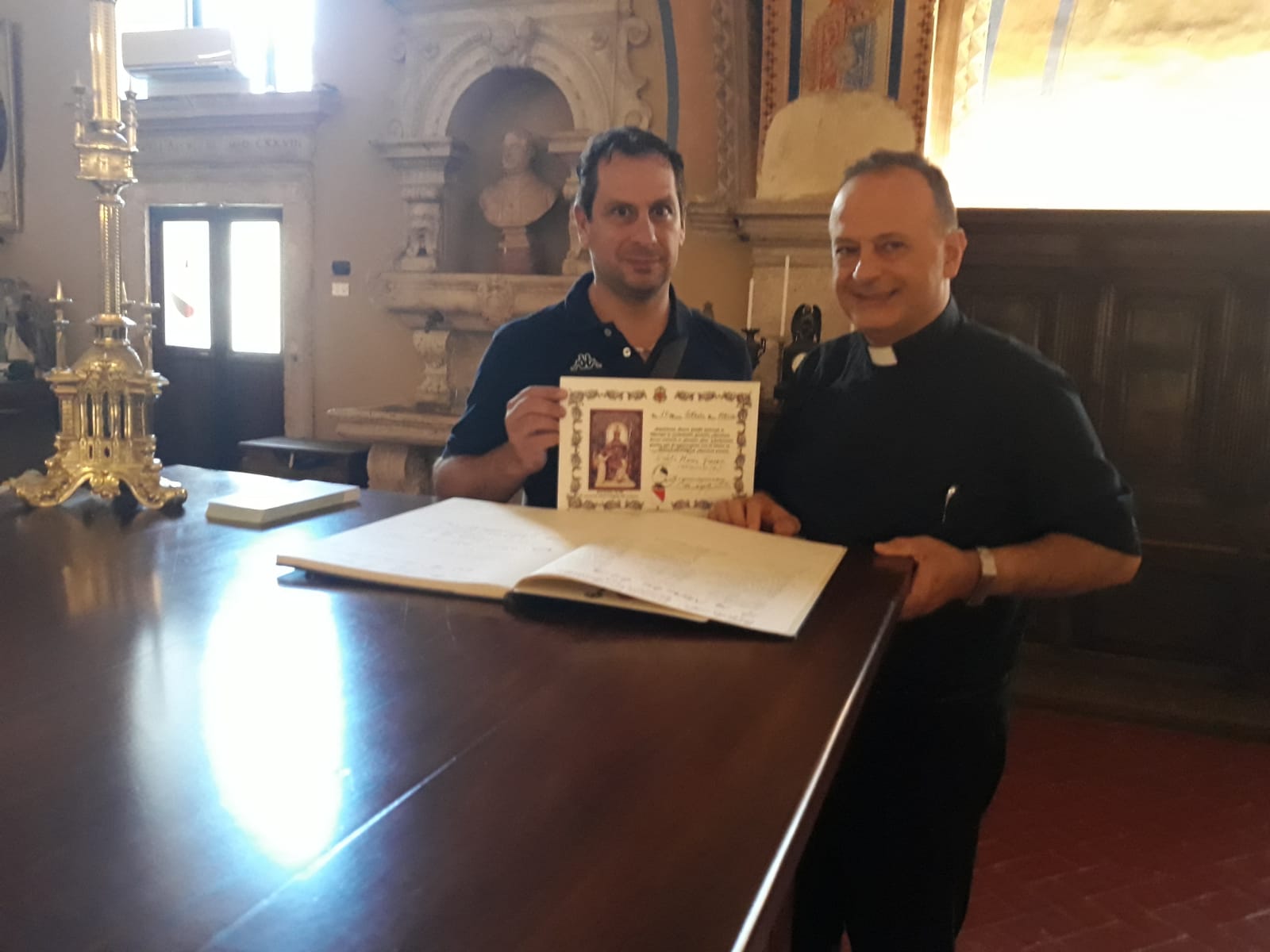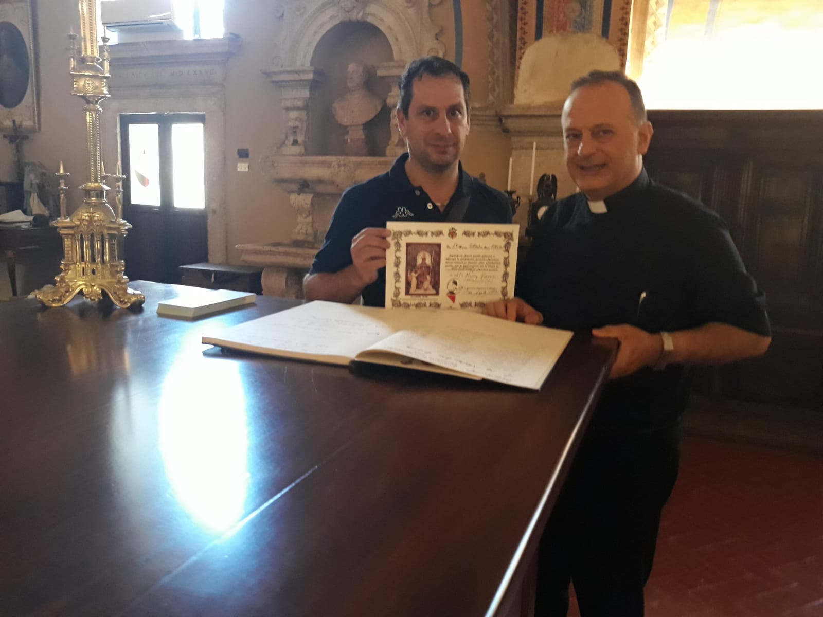 Dopo la Santa Messa nella maestosa cattedrale di piazza Arringo, il priore della confraternita della Madonna delle Grazie di Cantalice è stato invitato a lasciare un pensiero sul “Libro d’oro” dei pensieri, ricevendo in dono dalla parte della comunità ascolana una significativa pergamena.