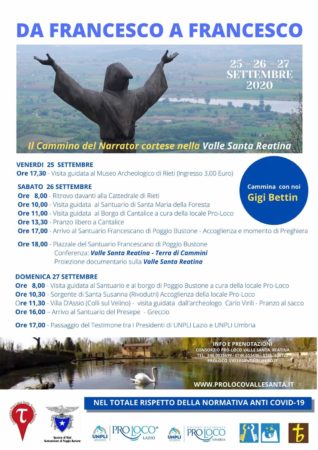 A esse si appoggiò più volte san Francesco quando decise di visitare la Valle di Rieti e la magnificò fino a farcela dire santa. Proprio al convento di San Giacomo di Poggio Bustone, poi santuario francescano, si giungerà nel pomeriggio del 26 settembre (ore 17,00 previste), con l’accoglienza di padre Renzo Cocchi e un breve momento di preghiera.