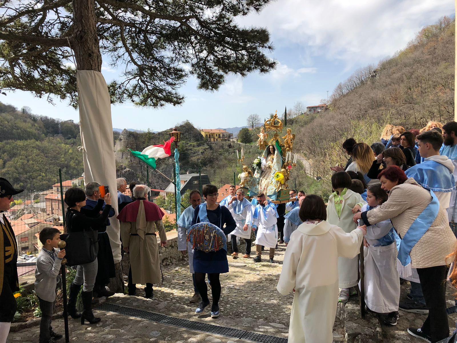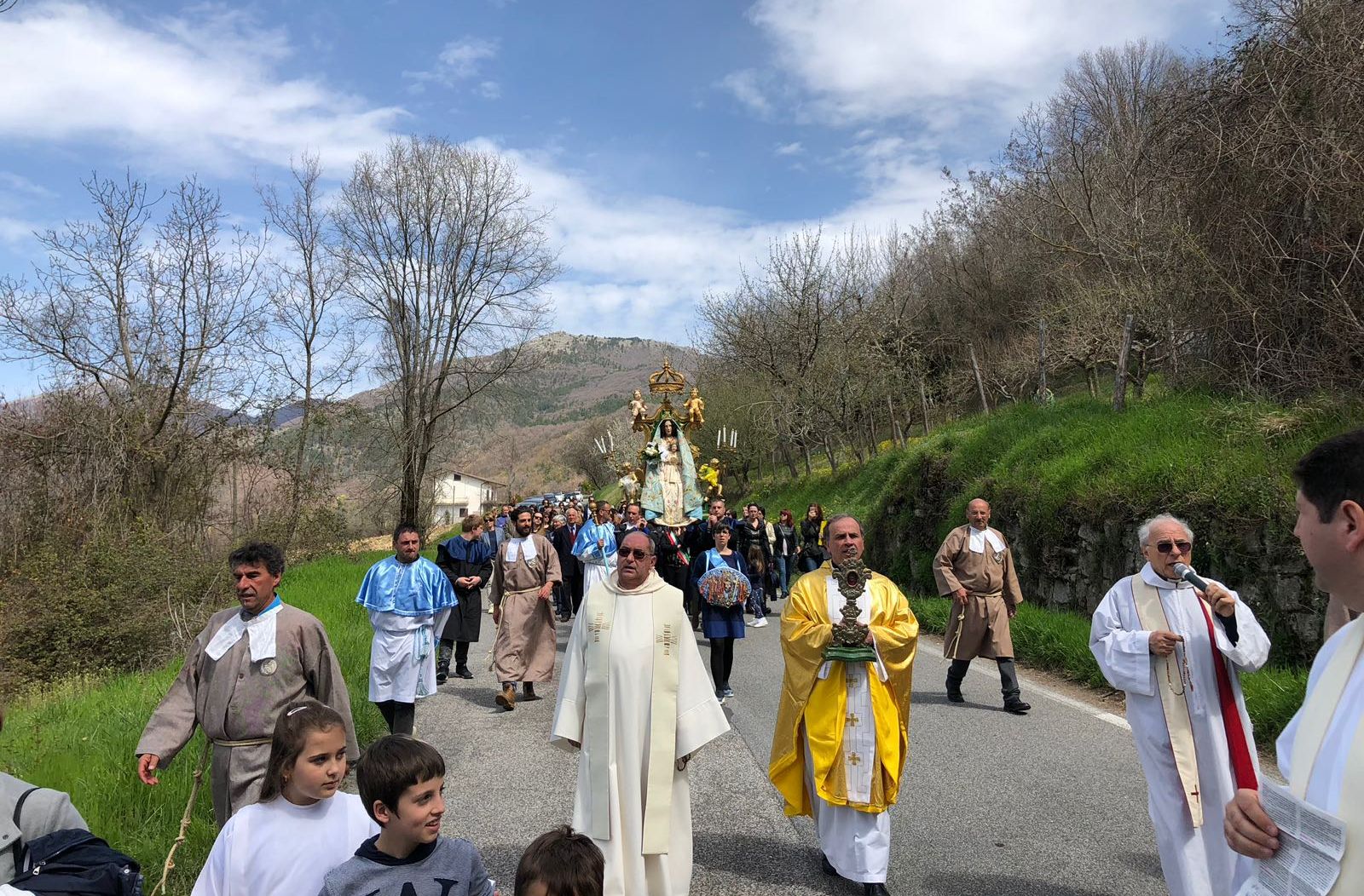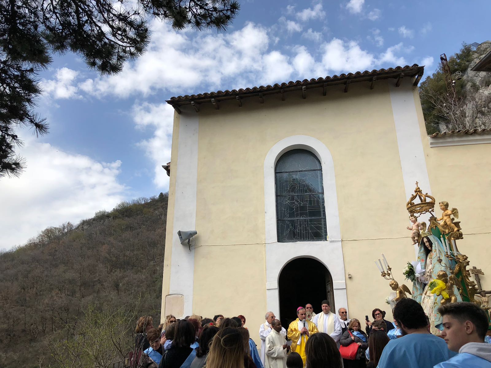 Una giornata importante per il paese, che come tradizione la seconda domenica di Pasqua ha festeggiato la sua Madonnina dalle gote rosse arroccata su un’altura. Ai festeggiamenti, celebrati in una mattinata assolata e carica di entusiasmo, ha partecipato anche il vescovo Domenico, che ha presieduto la messa. «Non dobbiamo lasciarci andare alle lamentele, non dobbiamo cedere al pessimismo, non dobbiamo lasciarci prendere dall’apatia», ha esortato mons Pompili, scuotendo la popolazione. «Ci richiudiamo in noi stessi, diventiamo sospettosi e paurosi, amplifichiamo i nostri limiti e le nostre incertezze. Viviamo male, come quella quindicenne di Torino, che non si sentiva abbastanza bella e ha pensato di farla finita sotto il treno».