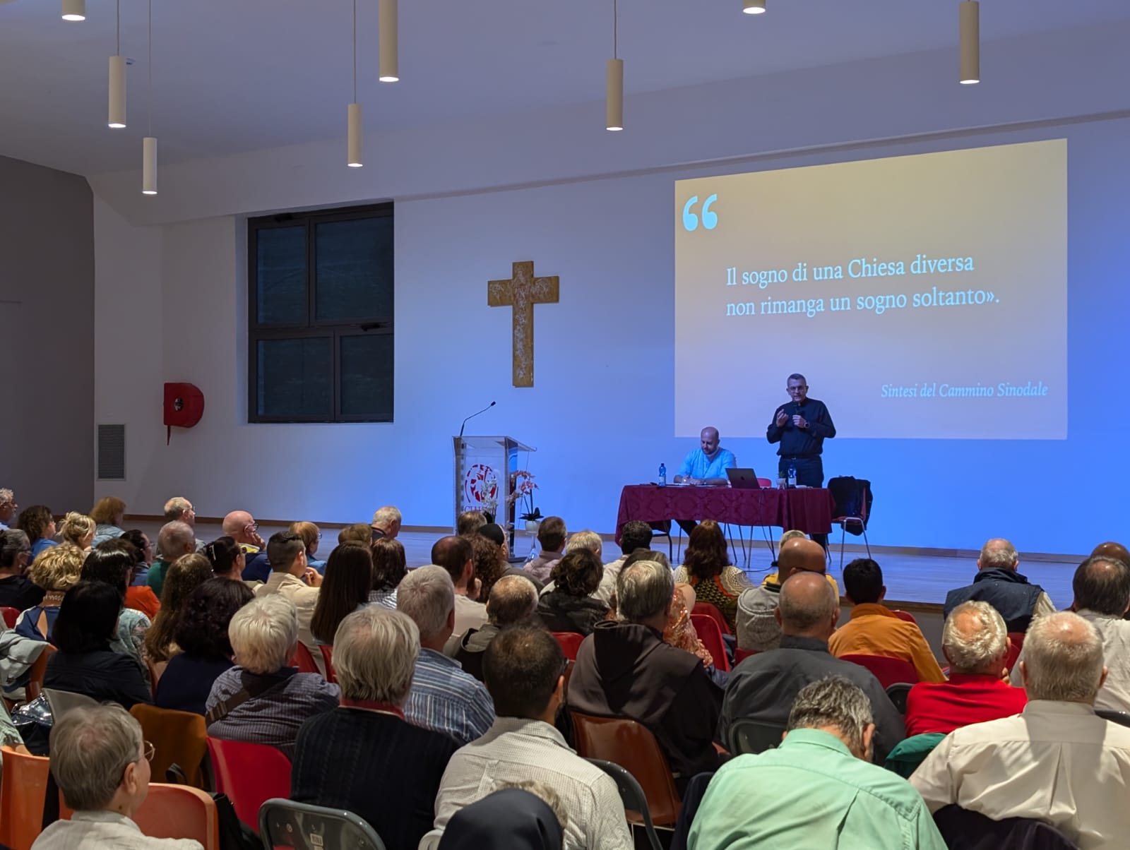 Un altro concetto chiave emerso nella relazione è stato quello di «abitare il labirinto», metafora utilizzata per descrivere l’esperienza della vita contemporanea, spesso percepita come confusa e priva di senso. Don Michele ha invitato i presenti a riconoscere la presenza dello Spirito anche nei momenti di difficoltà e incertezza, richiamando l’importanza della Parola di Dio come guida per orientarsi nel caos del mondo moderno. Ha ribadito che, senza la Parola, la Chiesa rischia di soffocare, perdendo il respiro vitale della fede.