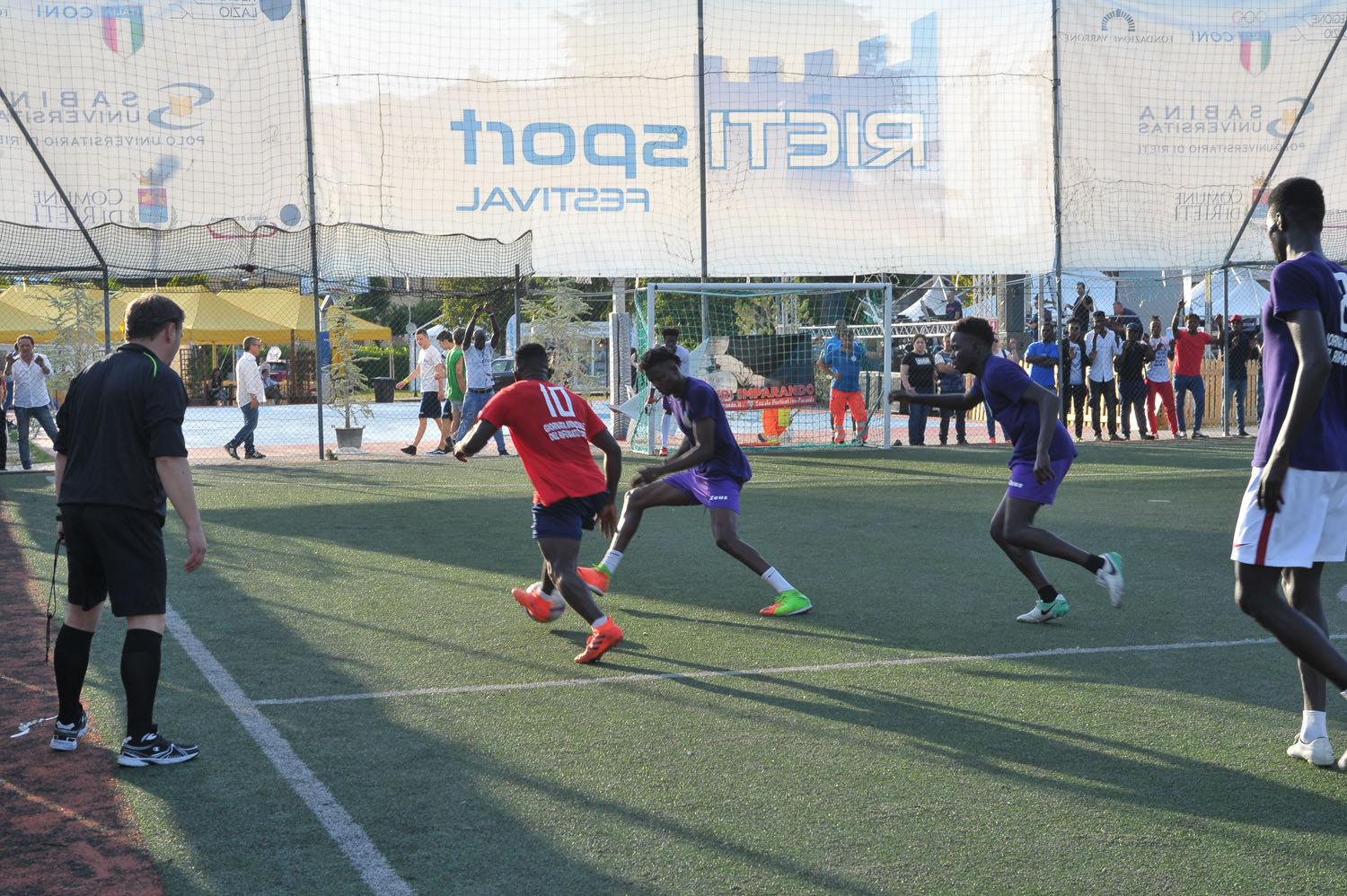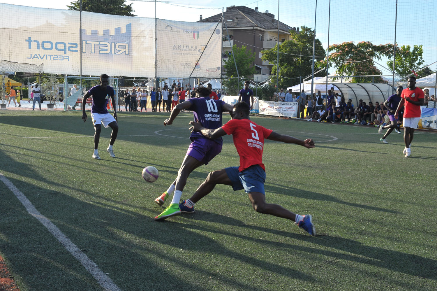 I centri di accoglienza della città di Rieti Sprar e Cas in vista della Giornata Mondiale del Rifugiato hanno organizzato un torneo di Calcio a 5 all’interno del Rieti Sport Festival, con l’obiettivo di sensibilizzare l’opinione pubblica sulla condizione di milioni di rifugiati e richiedenti asilo costretti a lasciare le proprie terre, la propria famiglia, il proprio lavoro a causa di conflitti armati, diniego dei diritti umani e povertà.