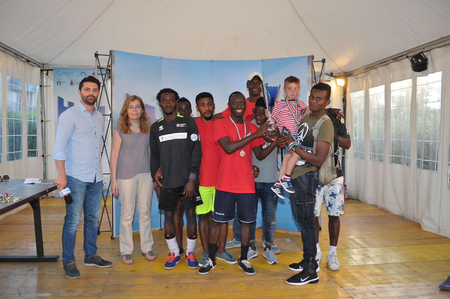 La finale si è svolta domenica 17 giugno con la premiazione dei vincitori. Il primo premio è andato alla squadra del progetto Sprar gestito da Arci Rieti; il secondo posto alla squadra del progetto Cas gestito dalla Coop “Il Volo”. Altri premiati sono stati il capocannoniere Ndir Mame Ass della squadra vincitrice e il premio per la migliore squadra in campo per il “fair play” conquistato dalla squadra del progetto Cas gestito dalla coop “L’Albero1”. La cerimonia di premiazione è stata molto emozionante per tutti i giocatori, ognuno dei quali ha ricevuto una medaglia.