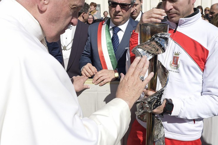Domenica 3 aprile alle 19.45 circa giungerà a Rieti la Fiaccola Benedettina “Pro pace et Europa Una”, accesa nella cripta della Basilica di San Benedetto a Norcia il 27 febbraio e accolta e benedetta da Papa Francesco in Vaticano il 2 marzo scorso.