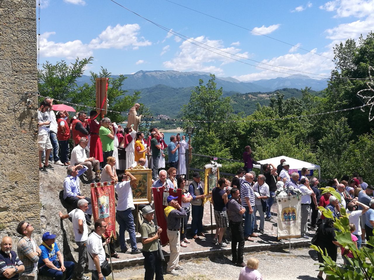 «Siamo chiamati all’incontro e non a starcene per proprio conto». È questa la lettura che il vescovo Domenico ha offerto della Santissima Trinità, festeggiata a Vallececa la scorsa domenica. Mons Pompili ha celebrato la prima delle messe previste per la giornata di festa nel bel santuario della frazione del comune di Pescorocchiano. Già nel primo mattino, infatti, un incontro gioioso di gente si è inoltrato nella natura delle stupende rive del Lago del Salto, fino a raggiungere la struttura fatta costruire a suo tempo dal vescovo di Rieti Ippolito Vicentini. Un edificio molto semplice, con le pareti in pietra a vista, il tetto a cuspide e la laterale torre campanaria, meta ogni anno di un sentito pellegrinaggio.