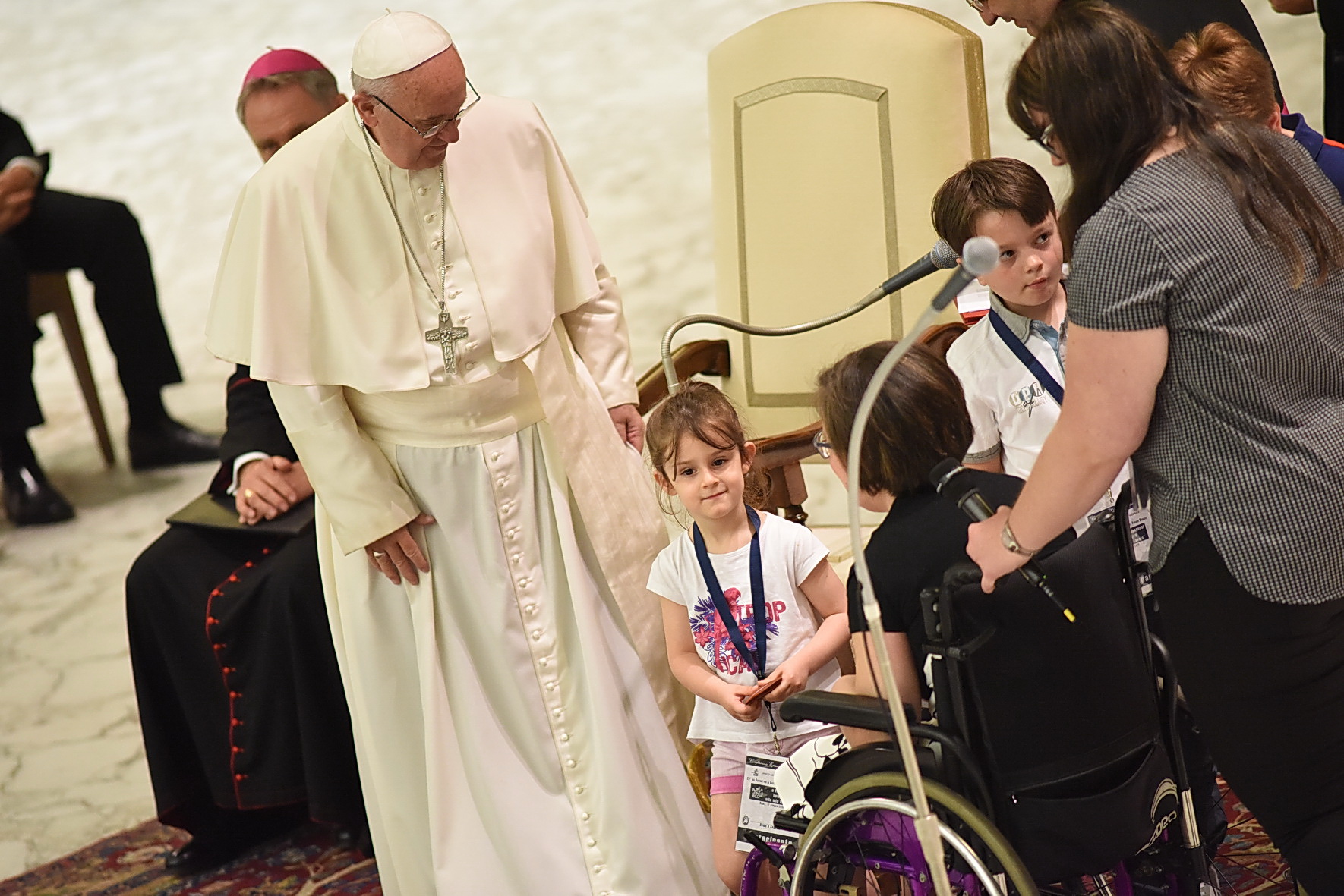 Dopo le parole pronunciate dal Santo Padre Francesco in risposta alla domanda di Serena, persona con disabilità, nessuna porta di una chiesa potrà mai essere chiusa ad una persona disabile: “O tutti o nessuno”. “Ha parlato poco, tre/quattro righe, ma le ha dette con forza! Serena ha parlato di una delle cose più brutte che ci sono fra noi: la discriminazione. E’ una cosa bruttissima!’Tu non sei come me, tu vai di là e io di qua’”. “Ma, io vorrei fare la catechesi…” – “In questa parrocchia no. Questa parrocchia è per quelli che si assomigliano, non ci sono differenze…”. “Questa parrocchia è buona o no?” [Aula: “Nooo!”] Che cosa deve fare, il parroco?…Tutti abbiamo la stessa possibilità di crescere, di andare avanti, di amare il Signore, di fare cose buone, di capire la dottrina cristiana, e tutti abbiamo la stessa possibilità di ricevere i sacramenti…
