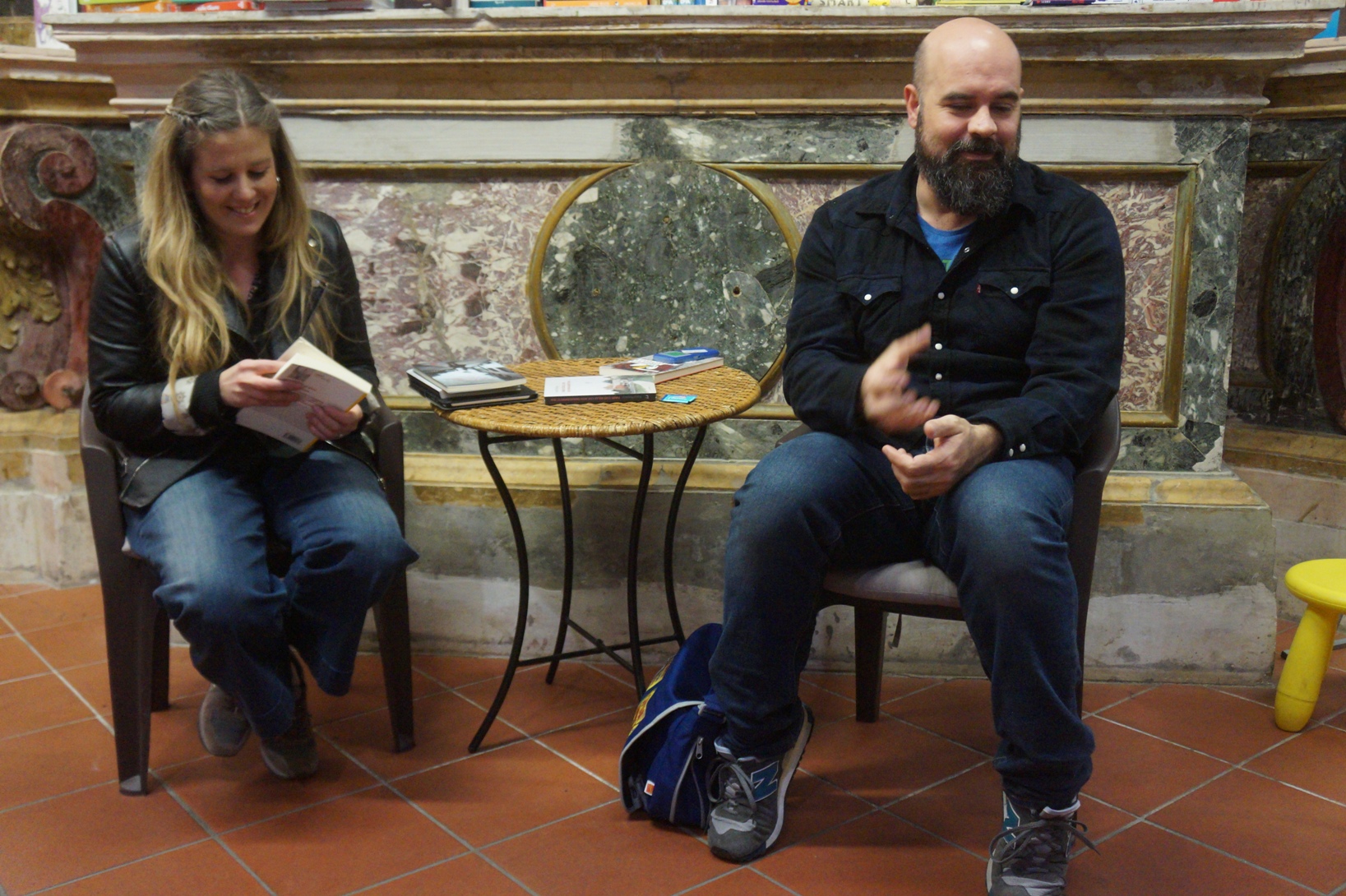 Alle 22, presso il bar Diciottozerouno Lounge Café, Ivano Porpora ha letto alcune delle sue poesie tratte da Parole d’amore che moriranno quando morirai (Miraggi Edizioni). Anche in questo caso l’acuta leggerezza della scrittura dell’autore, passa in rassegna temi molto personali e quotidiani con una spiccata propensione alla cruda sincerità e allo sguardo irriverente. Tra una poesia e l’altra il giovane cantautore reatino Tommaso Tozzi ha presentato cover e brani propri ispirati dalla lettura. Un’alchimia di spontanea simpatia si è presto accesa tra i due artisti, coinvolgendo anche il pubblico in un reading davvero speciale e raro per la vita culturale della città.