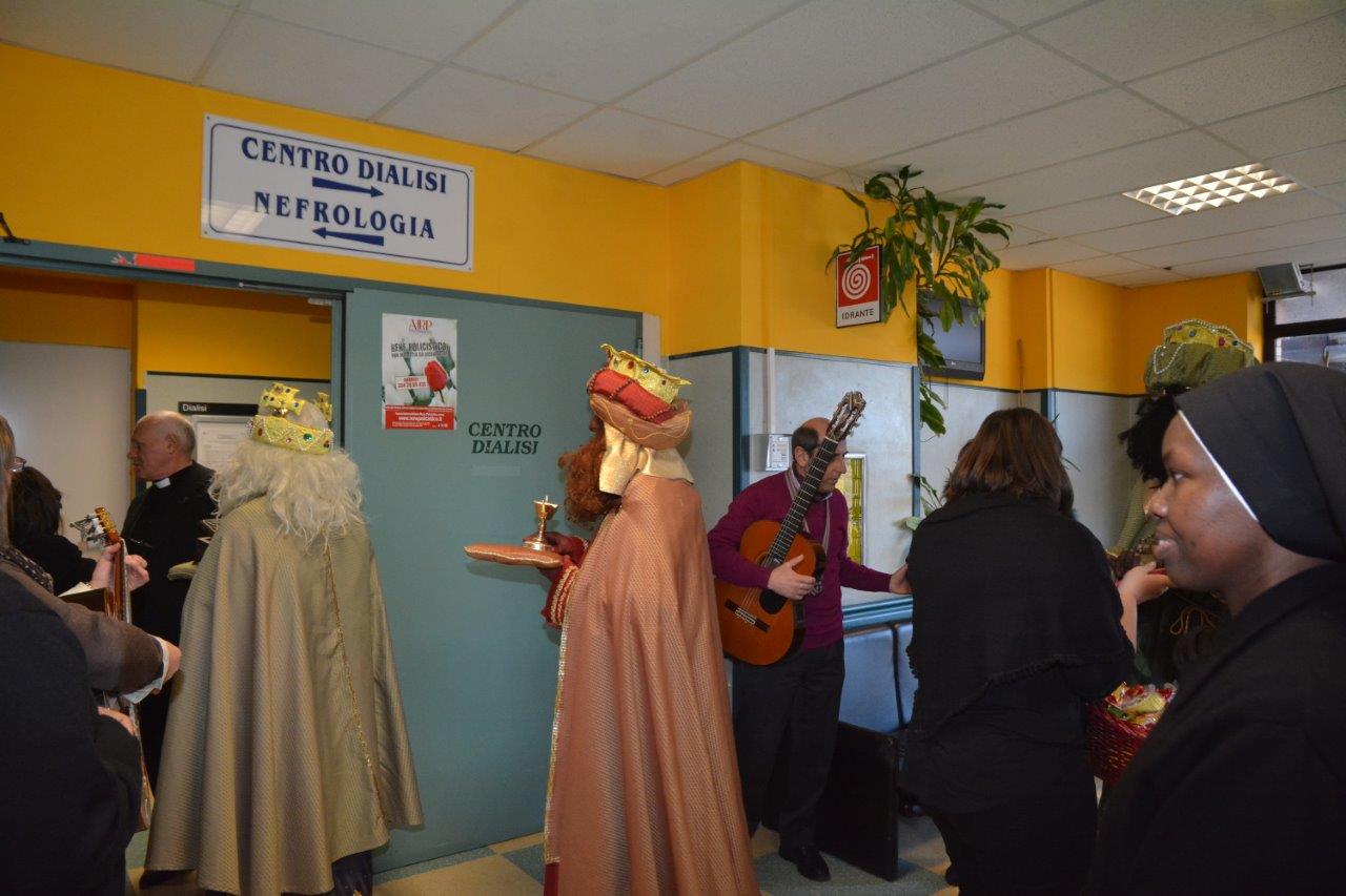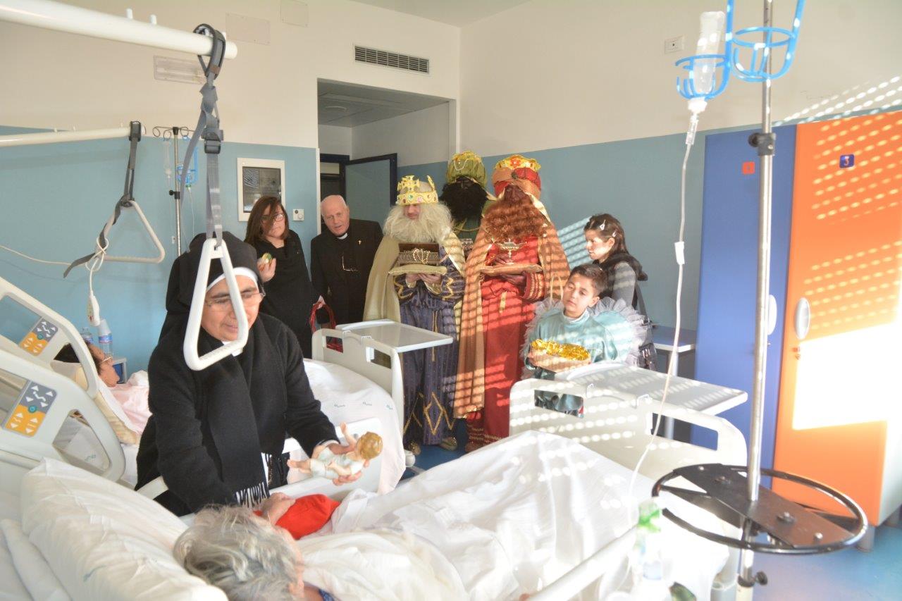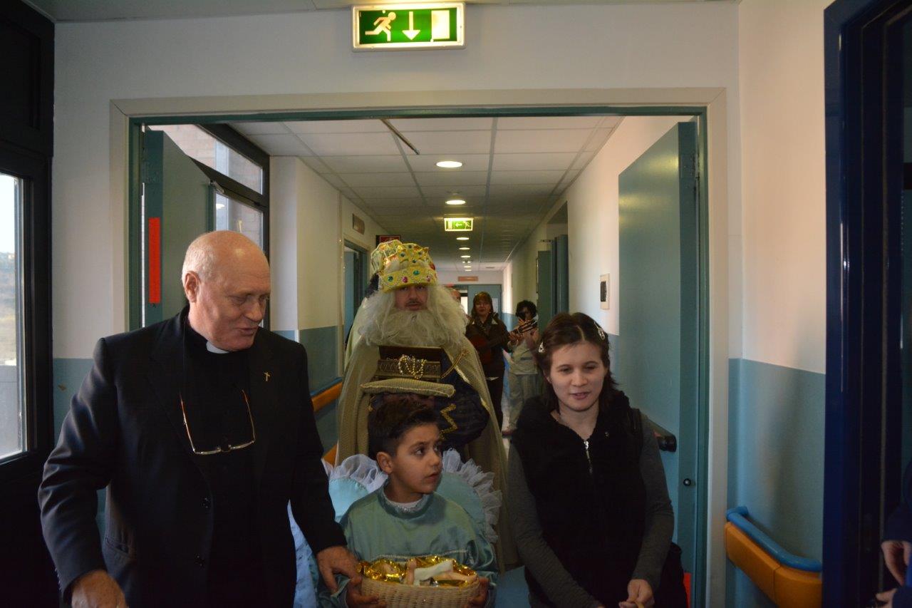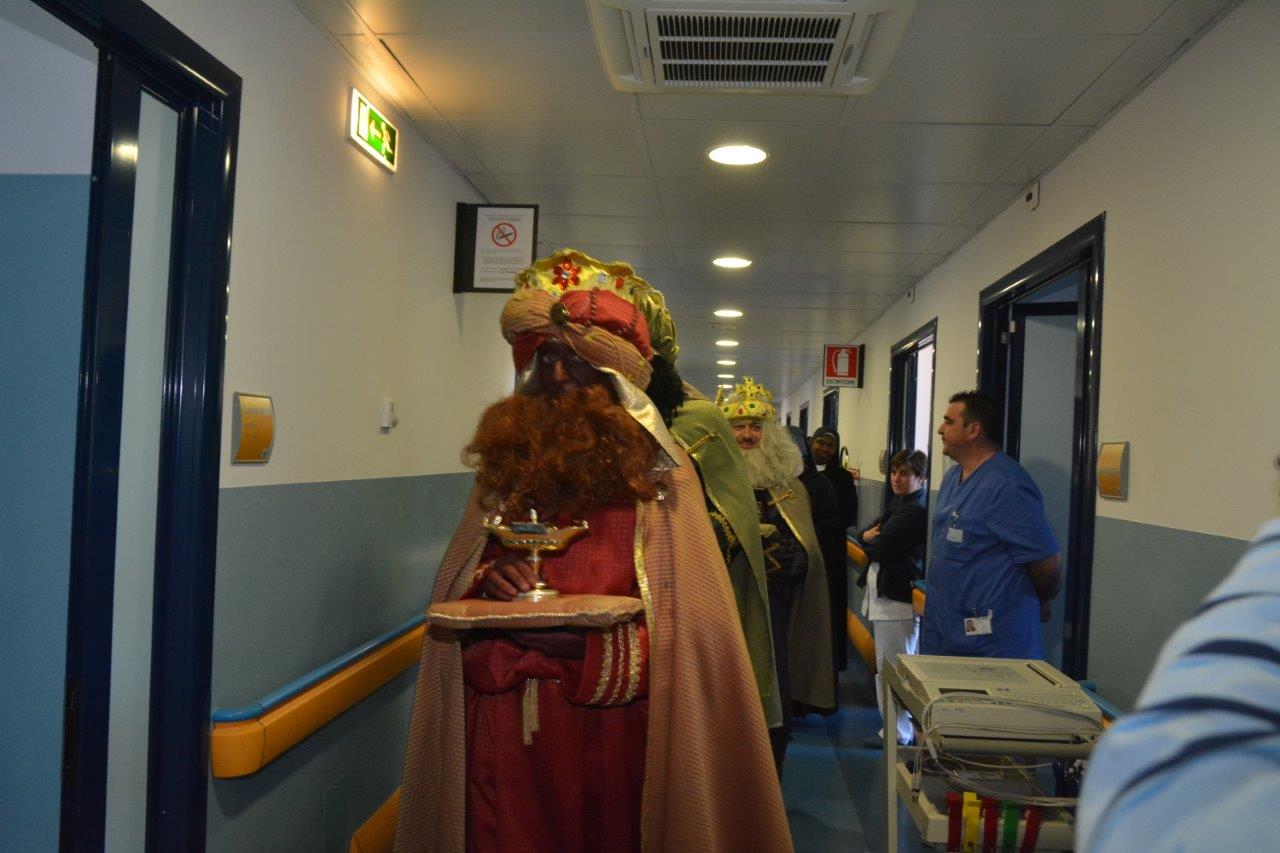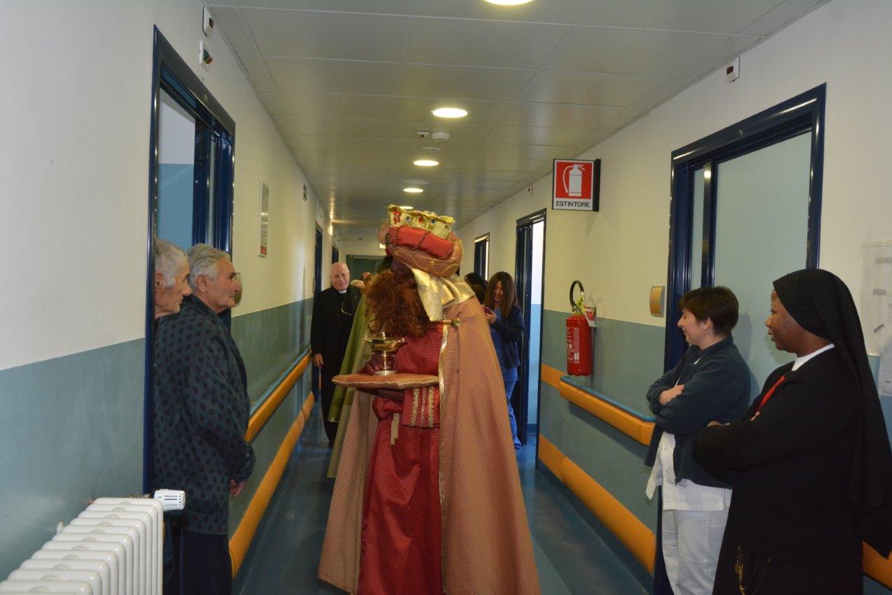 È ormai una consuetudine quella di vedere un singolare corteo di Magi nelle corsie del “de Lellis” il pomeriggio dell’Epifania. Sono anni che va avanti l’iniziativa della parrocchia S. Michele Arcangelo di portare gli auguri agli ospiti del nosocomio il 6 gennaio. Il tutto partì quando si ritrovò ricoverato il parroco don Benedetto e i giovani parrocchiani vollero andare a trovarlo in questa veste “epifanica”.