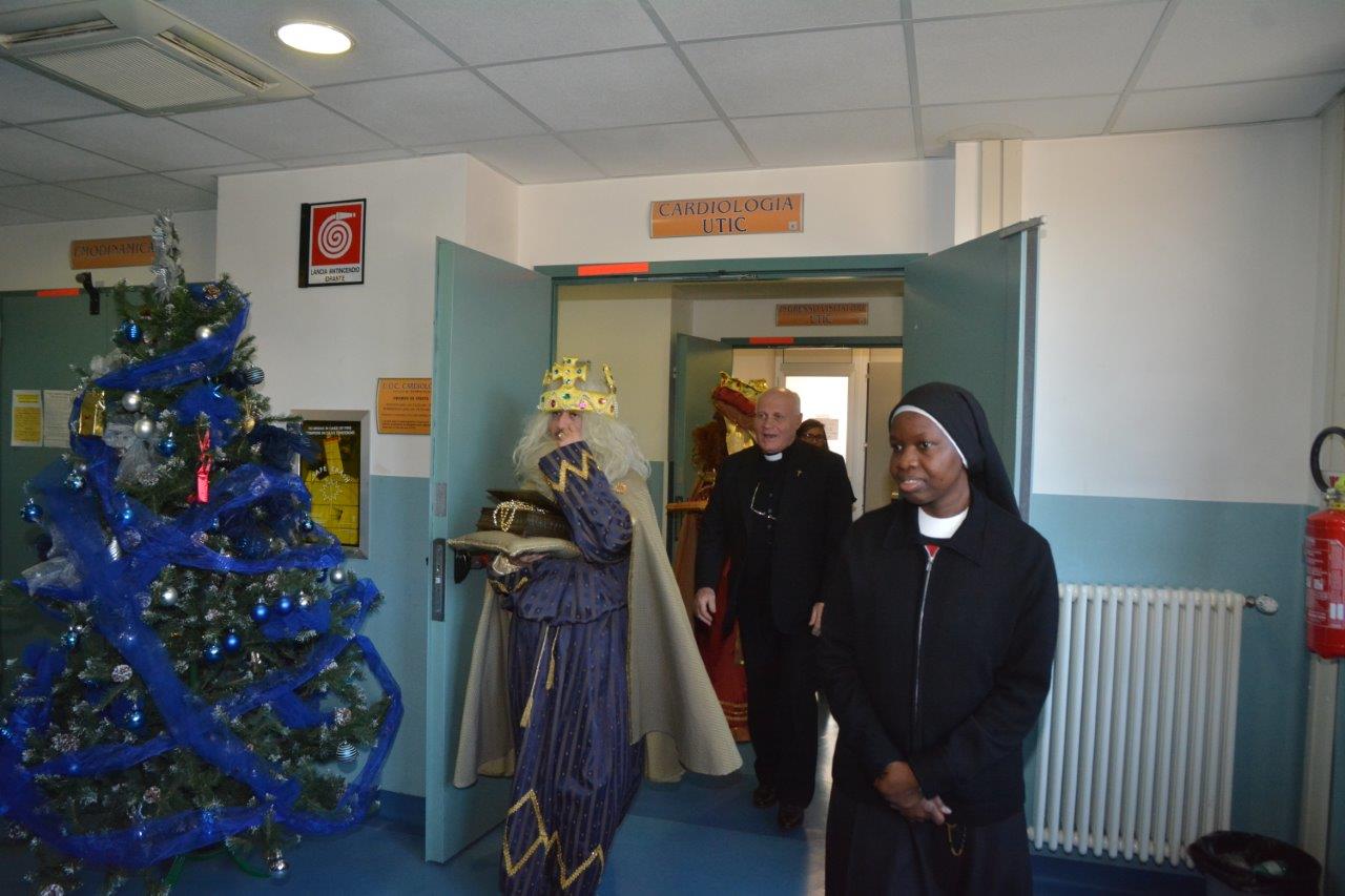 Da allora, si ripete ogni anno la simpatica iniziativa che vede una rappresentanza della comunità del Borgo raggiungere l’ospedale, con tre giovani vestiti da Magi e un accompagnamento di bambini-angioletti e di chitarristi che propongono canti natalizi. E così, anche stavolta, i malati costretti a trascorrere a letto la giornata di festa sono stati allietati dalla visita del gruppetto che ha recato, assieme ai doni preparati dal gruppo Caritas, sorrisi e allegria, nello spirito di solidarietà e di attenzione verso chi soffre a cui don Falcetti, da buon direttore della Caritas diocesana, ci tiene a educare adeguatamente i propri parrocchiani.