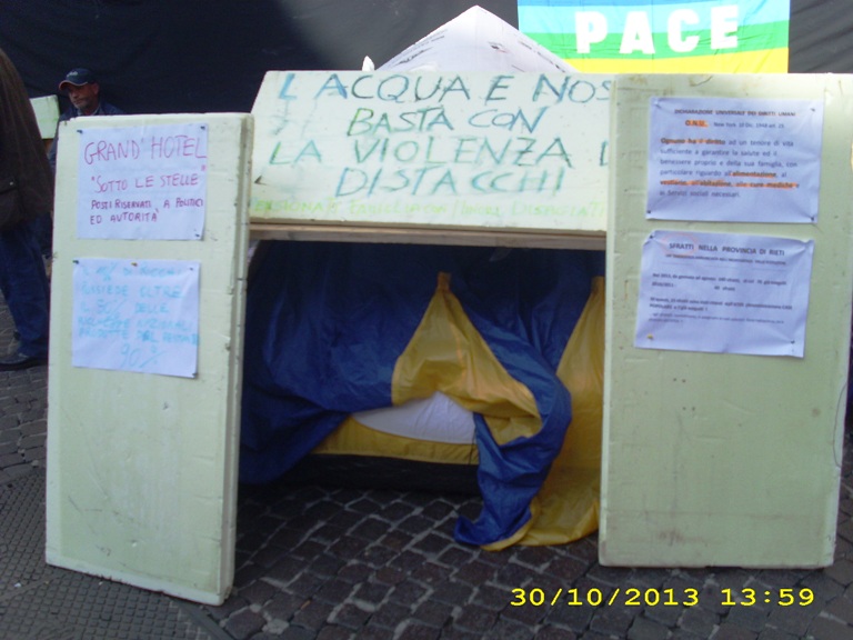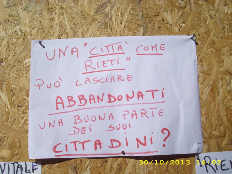 Alcune famiglie reatine sono accampate da ieri davanti agli archi del Palazzo del Comune proprio per rivendicare il diritto alla casa. L’art 23 cita testualmente: «… La locazione dei beni del patrimonio disponibile è soggetta alle norme della legge 431/98. Il Settore competente effettua periodicamente una ricognizione dei beni del patrimonio disponibile che risultano sfitti al fine di programmarne la utilizzazione. Individua pertanto: a) gli alloggi destinati ad uso abitativo; La Giunta Comunale, con proprio provvedimento, indica al responsabile del procedimento competente alla emanazione del bando per la locazione degli immobili suddetti, i criteri di valutazione delle richieste e le eventuali priorità per i nuclei familiari in particolari condizioni di disagio economico-sociale».