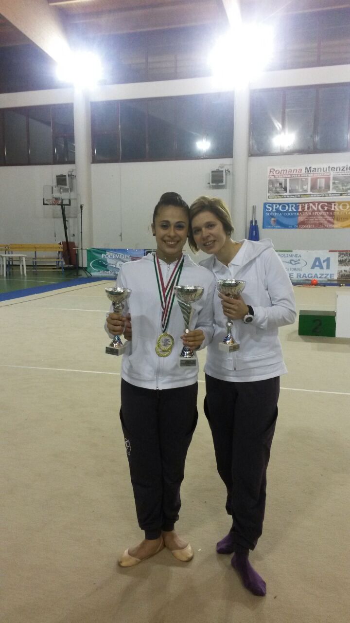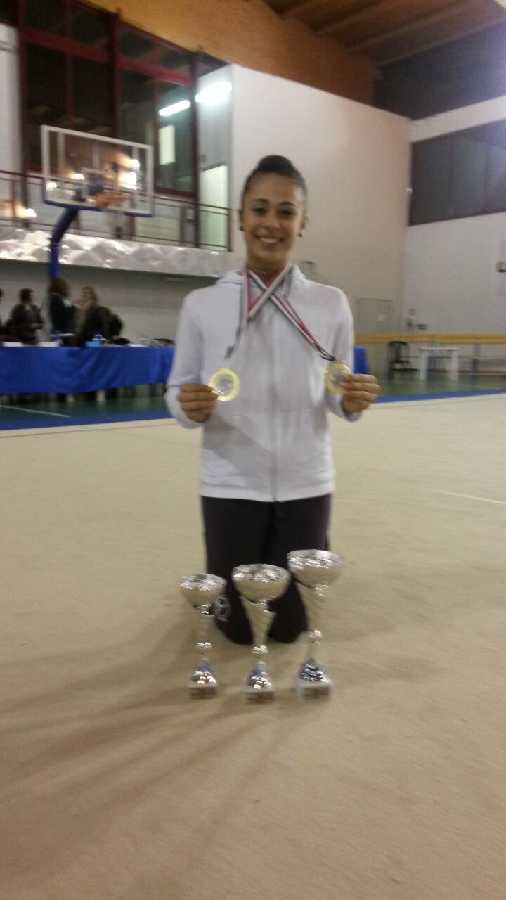 Alice Cattani (classe 1999) nella categoria senior, conquista il primo posto della 2^ prova del Campionato sia con l’esercizio con le clavette che con il cerchio e questi due meravigliosi risultati le permettono di vincere, con entrambe le specialità degli attrezzi, nella classifica generale del Campionato, aggiudicandosi quindi il titolo di Campionessa Regionale 2015 nelle specialità clavette e cerchio, mentre nella specialità palla sale sul terzo gradino del podio conquistando una splendida medaglia di bronzo.