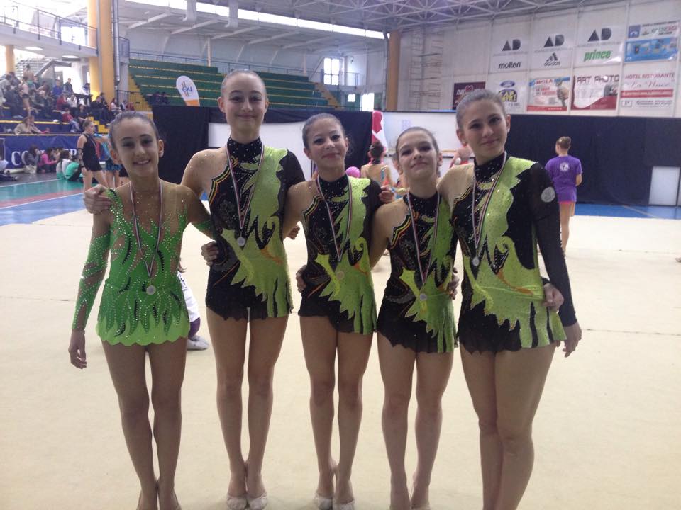 Alla seconda prova del Trofeo Regionale di ginnastica ritmica, che si è svolto a Colleferro, le ginnaste della Eos, accompagnate da Marta Apollaro, ottengono 5 bellissimi podi! Nella settore agoniste, per la categoria allieve, Chiara Carusotto vince la medaglia d’oro nell’esercizio con la fune mentre Viola Ciaramelletti si aggiudica la medaglia di bronzo al corpo libero; per la categoria junior Gloria Masci sale sul secondo gradino del podio nella specialità nastro, la squadra composta da Francesca Faraglia, Beatrice Nobili e Gloria Masci vincono la medaglia d’oro nell’esercizio di squadra con i tre cerchi. Elisa Ramacogi conquista il quarto posto nell’esercizio con la palla, seguita da Francesca Faraglia, Alessia Paci si aggiudica il quinto posto nella specialità cerchio. Nella categoria promozionale Isabel Marianantoni, Benedetta Pavan e Gaia Valeria Papò conquistano il secondo posto in classifica generale nell’esercizio a squadra cerchi/clavette, mentre la coppia Pavan/Papò ottengono il quarto posto nell’esercizio a coppia con la palla.
