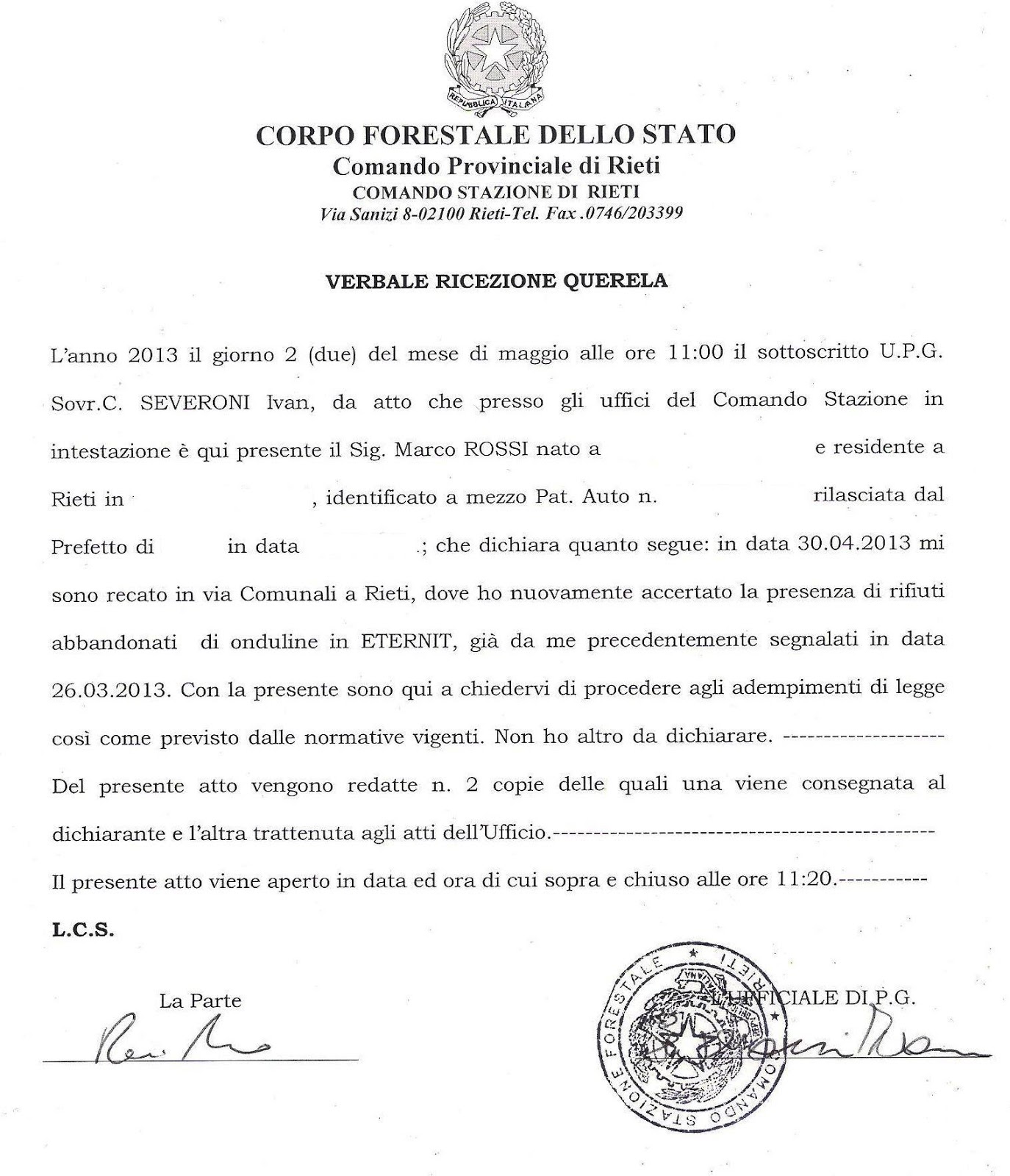 Il Movimento 5 Stelle “Grilli Parlanti”, per mezzo di un suo attivista, ha formulato un esposto, presso il locale Comando Stazione di Rieti del Corpo Forestale dello Stato, per segnalare nuovamente la presenza di materiale di Eternit nella piana reatina, nei pressi di Via Comunali.
