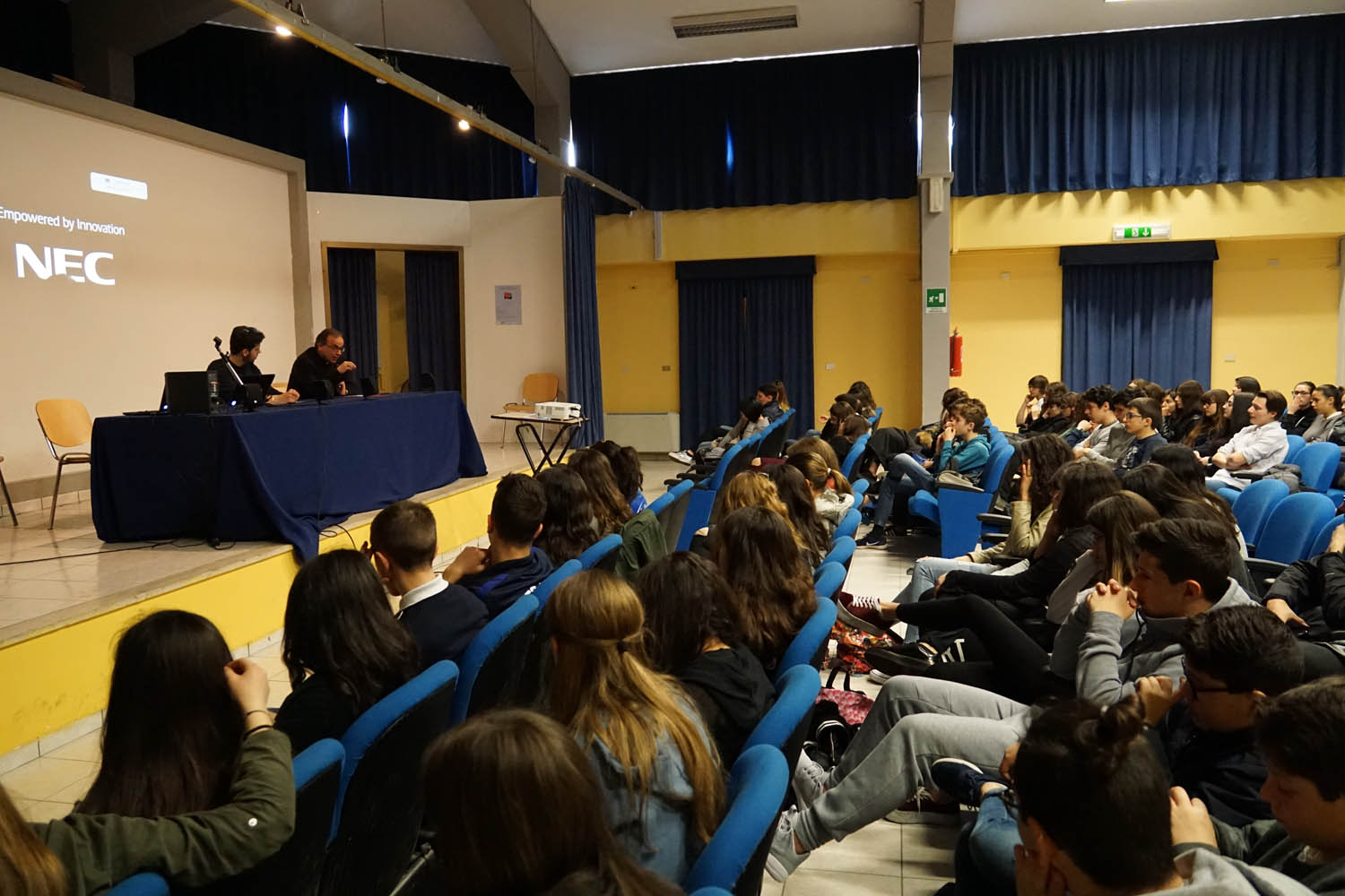 L’incontro, svolto nell’aula magna dell’Istituto Geometri Ugo Ciancarelli, ha avuto come ospite il vescovo Domenico, che con gli studenti ha intavolato un dibattito aperto e interessato.