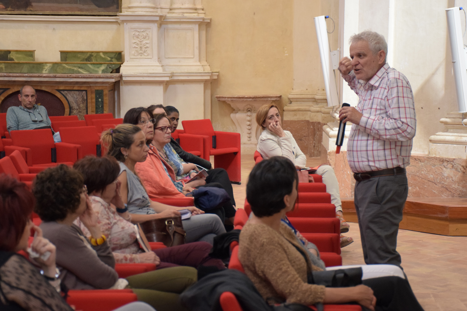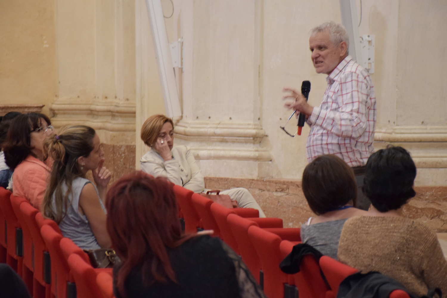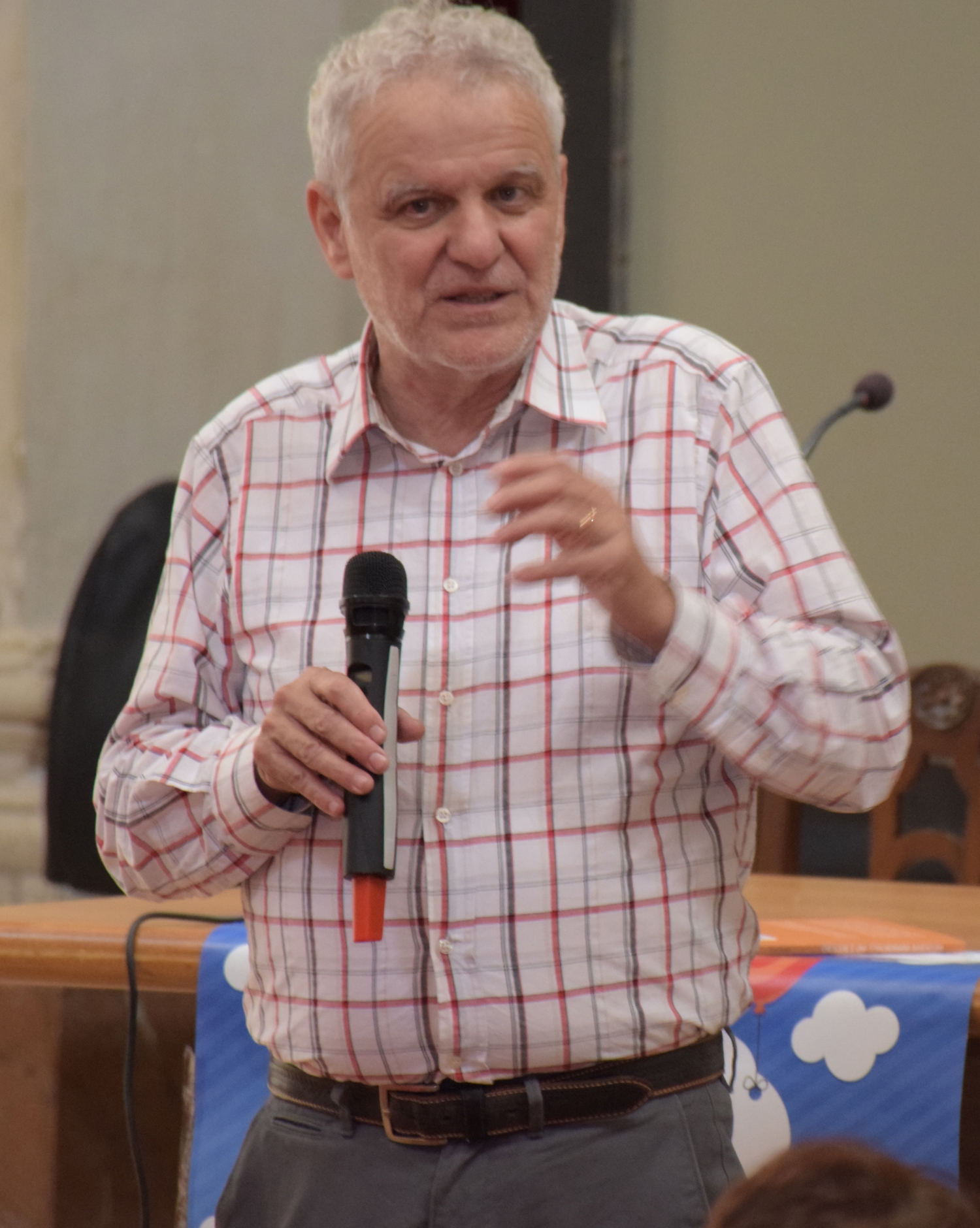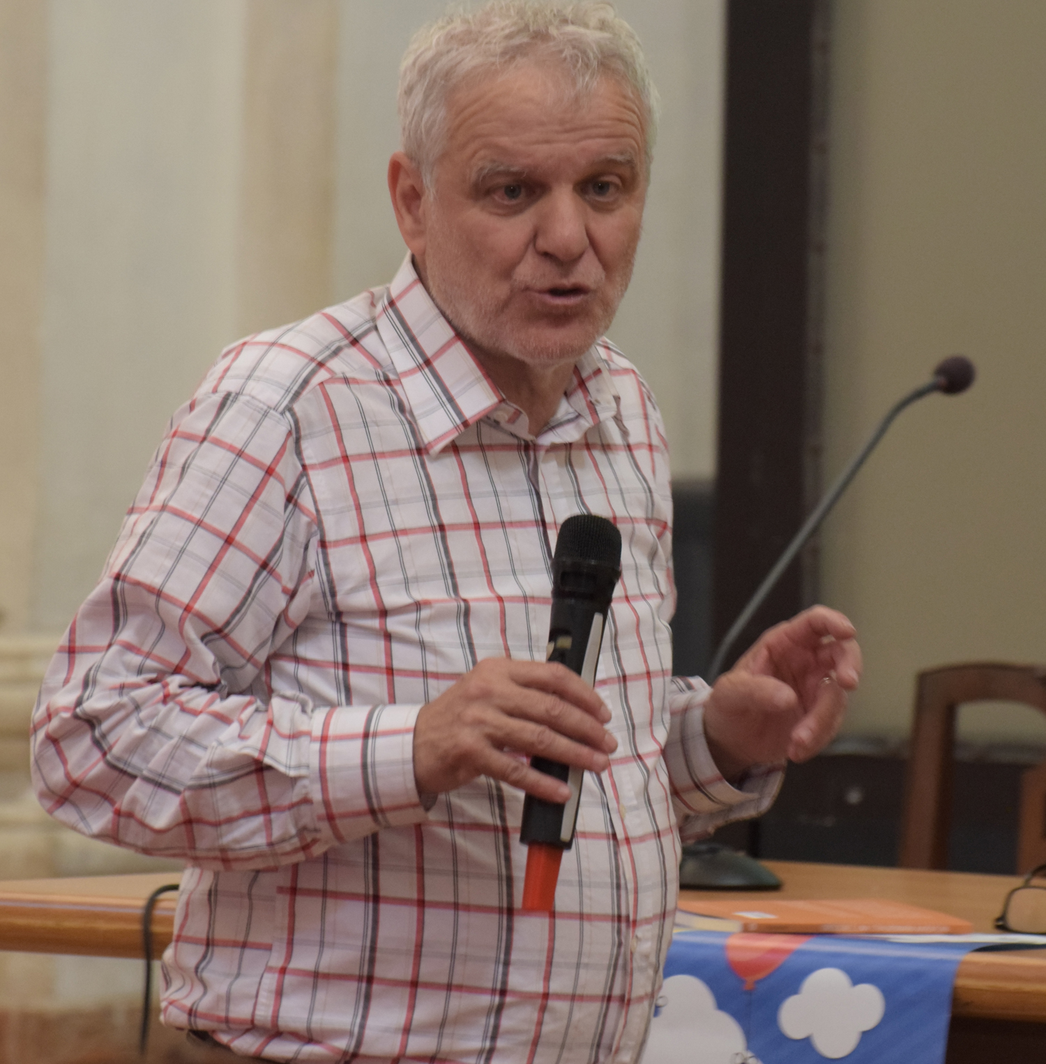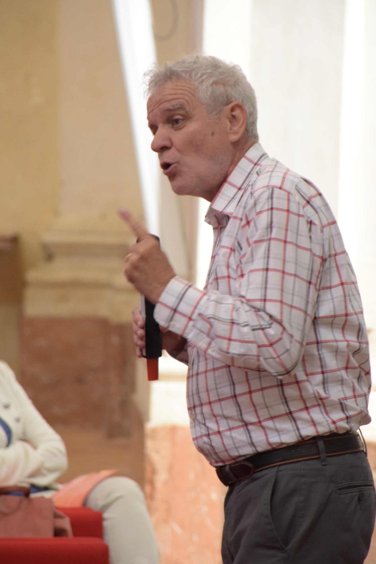 E già, perché Ezio Aceti non può che essere un mattatore. Voce squillante, timbro accattivante, cattura l’attenzione dei presenti con una gestualità che non passa inosservata. Chi lo ascolta viene da subito investito da una raffica di parole, ne rimane affascinato, catturato.
