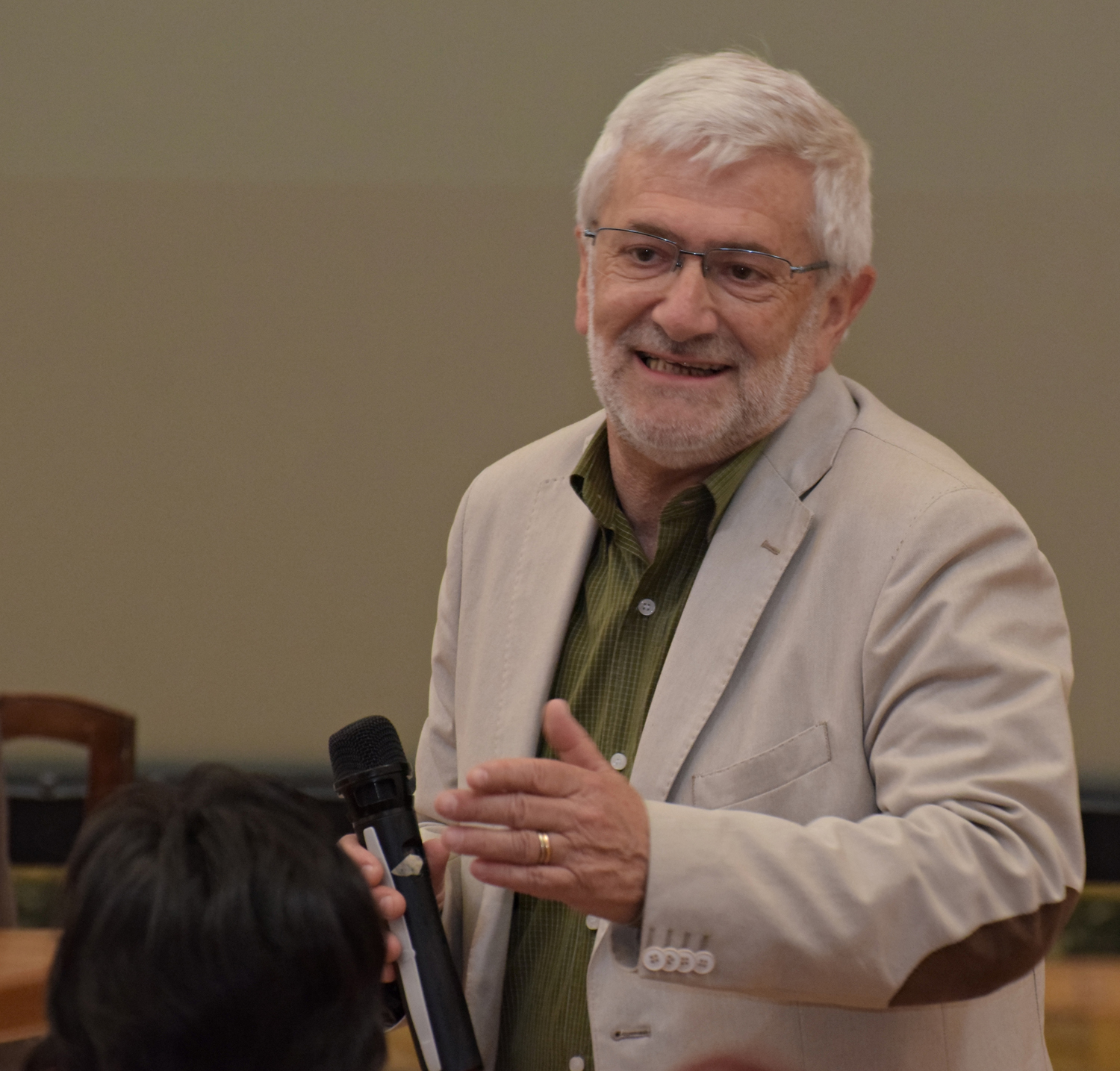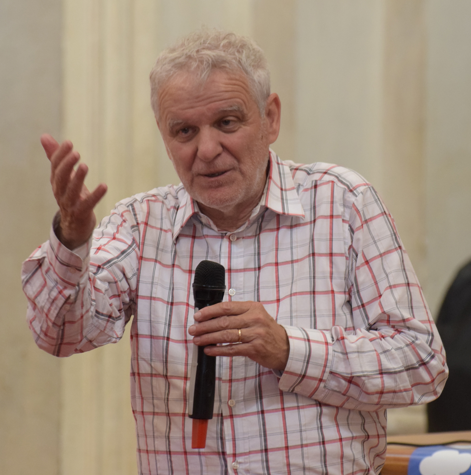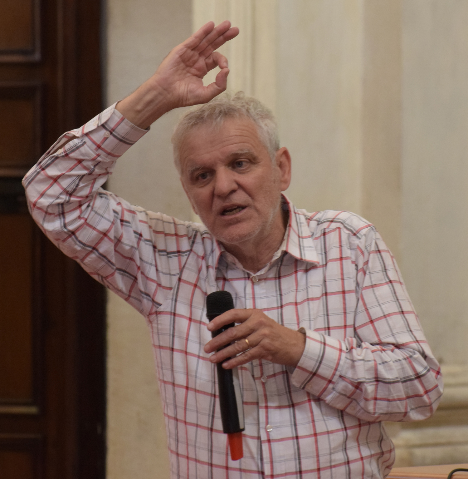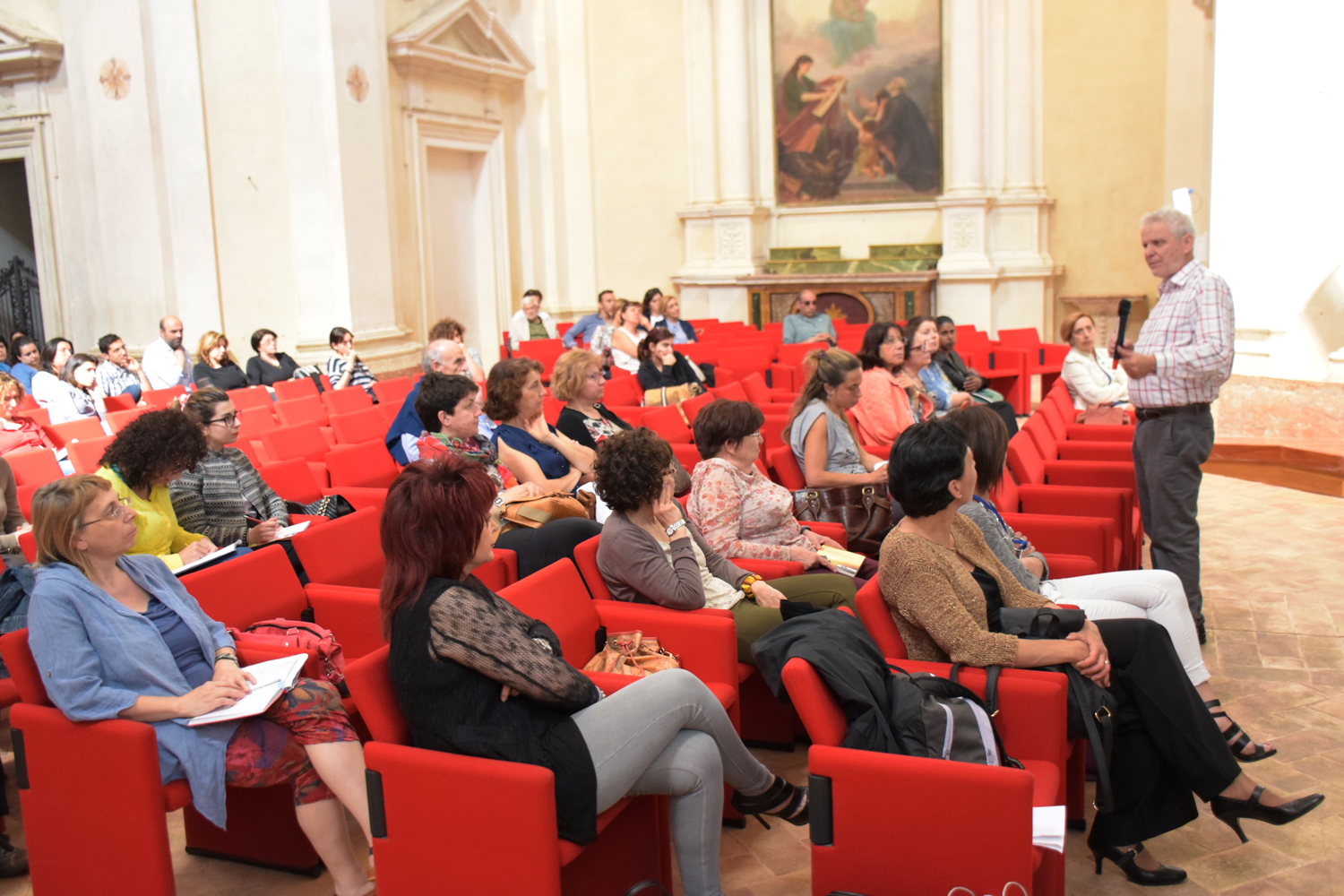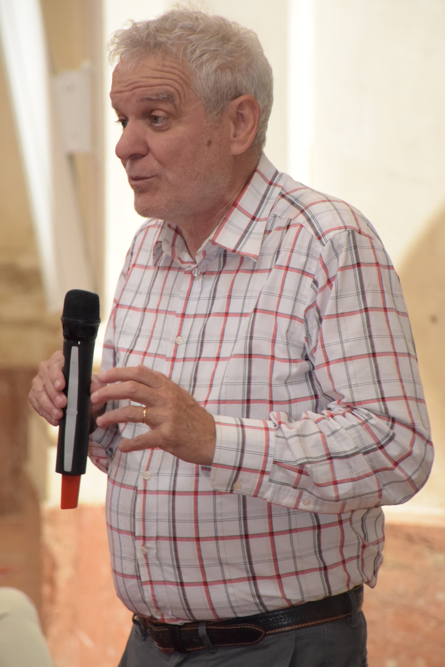 E già, perché Ezio Aceti non può che essere un mattatore. Voce squillante, timbro accattivante, cattura l’attenzione dei presenti con una gestualità che non passa inosservata. Chi lo ascolta viene da subito investito da una raffica di parole, ne rimane affascinato, catturato.