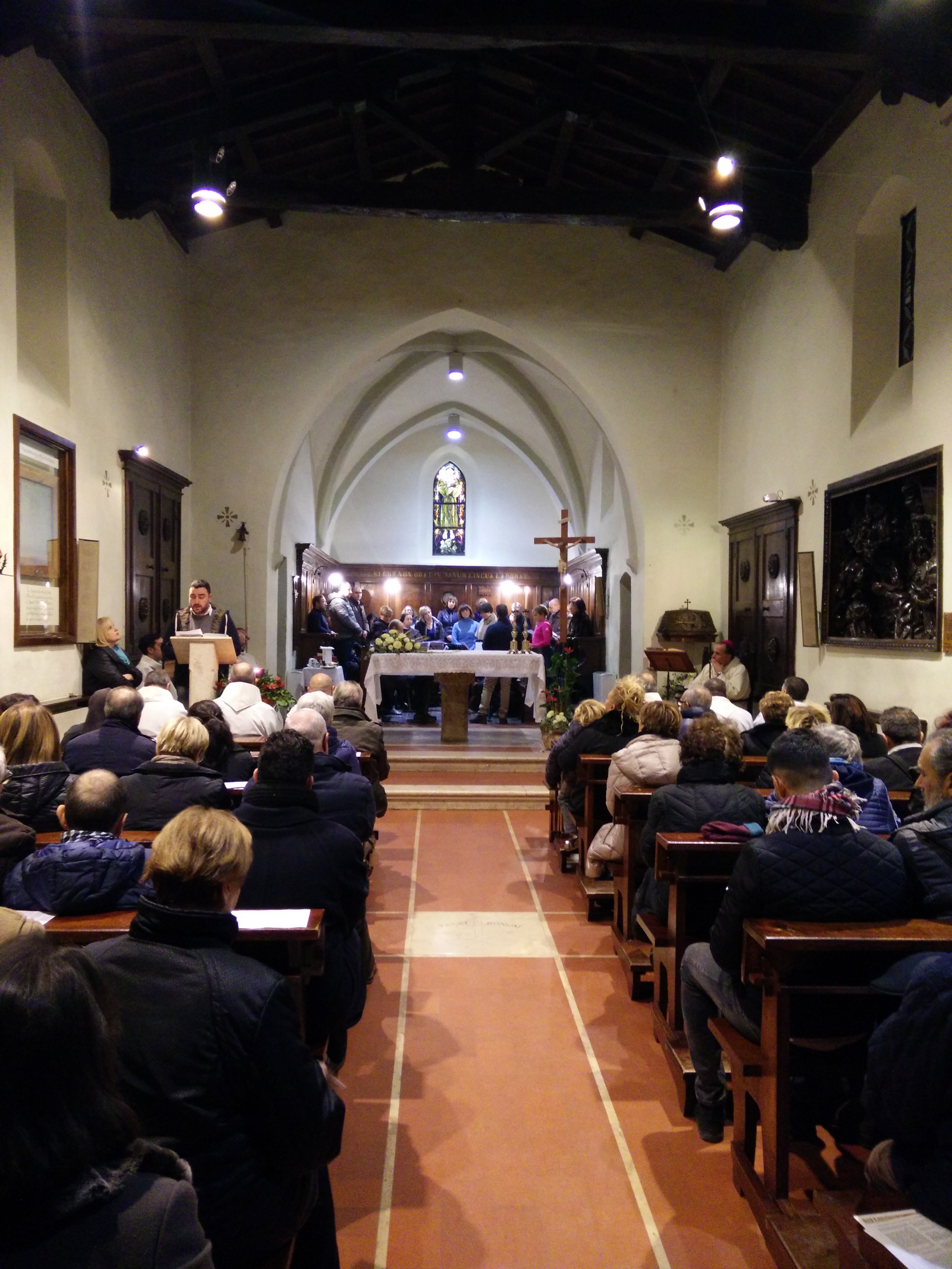 Al termine della celebrazione (allietata dai canti del nuovo coro “Valle Santa” diretto da Elio De Francesco e creato proprio su impulso di fra Ezio per animare le liturgie nei santuari francescani), ha preso la parola il padre guardiano di Fonte Colombo, fra Marino Porcelli, per formulare a nome dei confratelli francescani gli auguri di buon anniversario al festeggiato, il quale, nel ringraziare tutti i presenti ha rievocato le origini della sua vocazione nel paese di origine e l’avvio del cammino francescano con il noviziato svolto a Fonte Colombo sotto la guida proprio di padre Marino che era allora (prima di partire in missione per il Mozambico) maestro dei novizi.