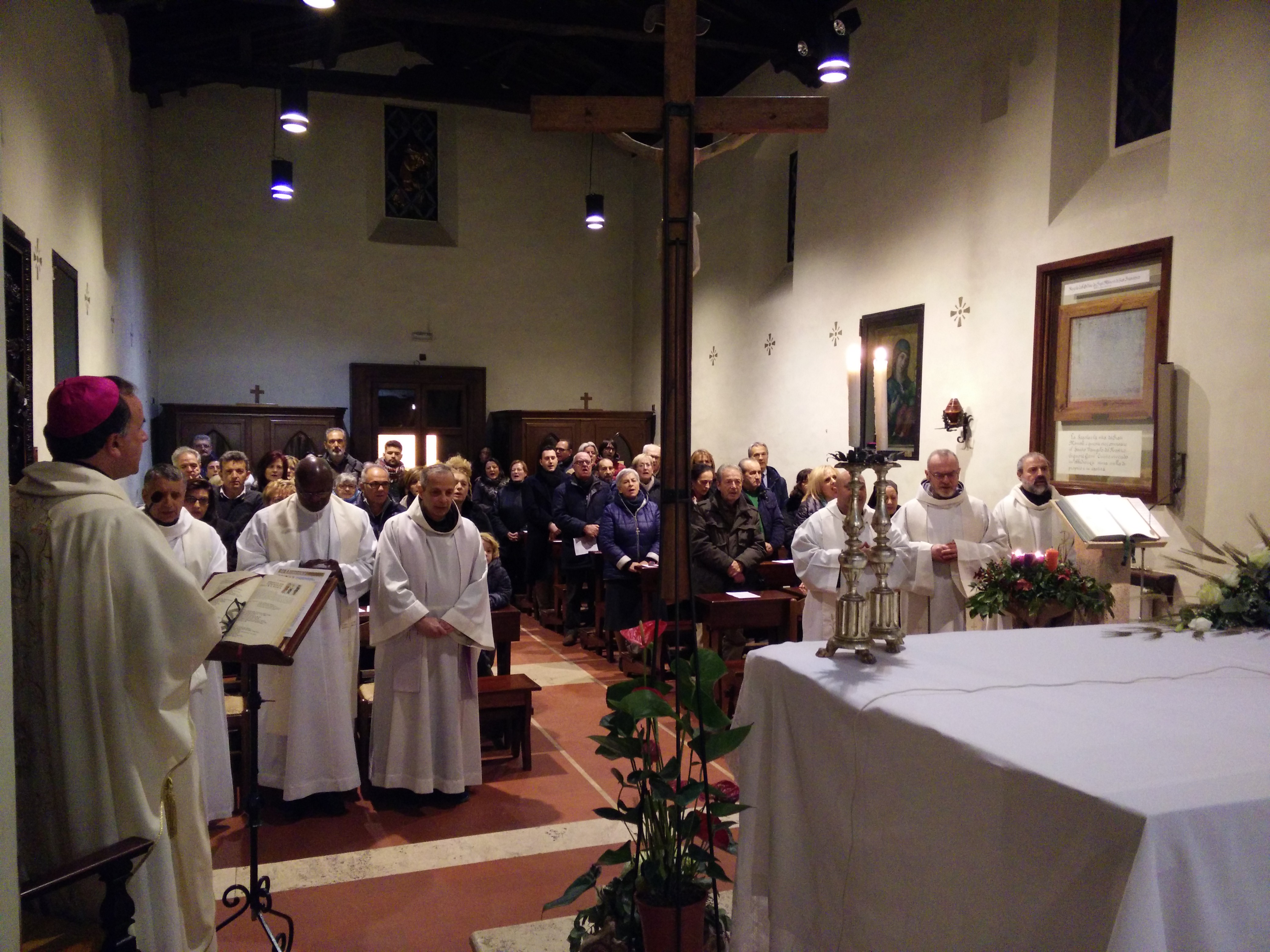 La Messa che festeggiava i suoi cinque lustri di presbiterato padre Ezio Casella, frate della comunità minoritica di Fonte Colombo e direttore dell’Ufficio liturgico diocesano, l’ha “solo” concelebrata, perché a presiederla ha voluto fosse il vescovo della diocesi che gli ha dato i natali e in cui è tornato a operare da un anno in qua, collocato nella fraternità del santuario che custodisce la memoria della Regula di san Francesco.