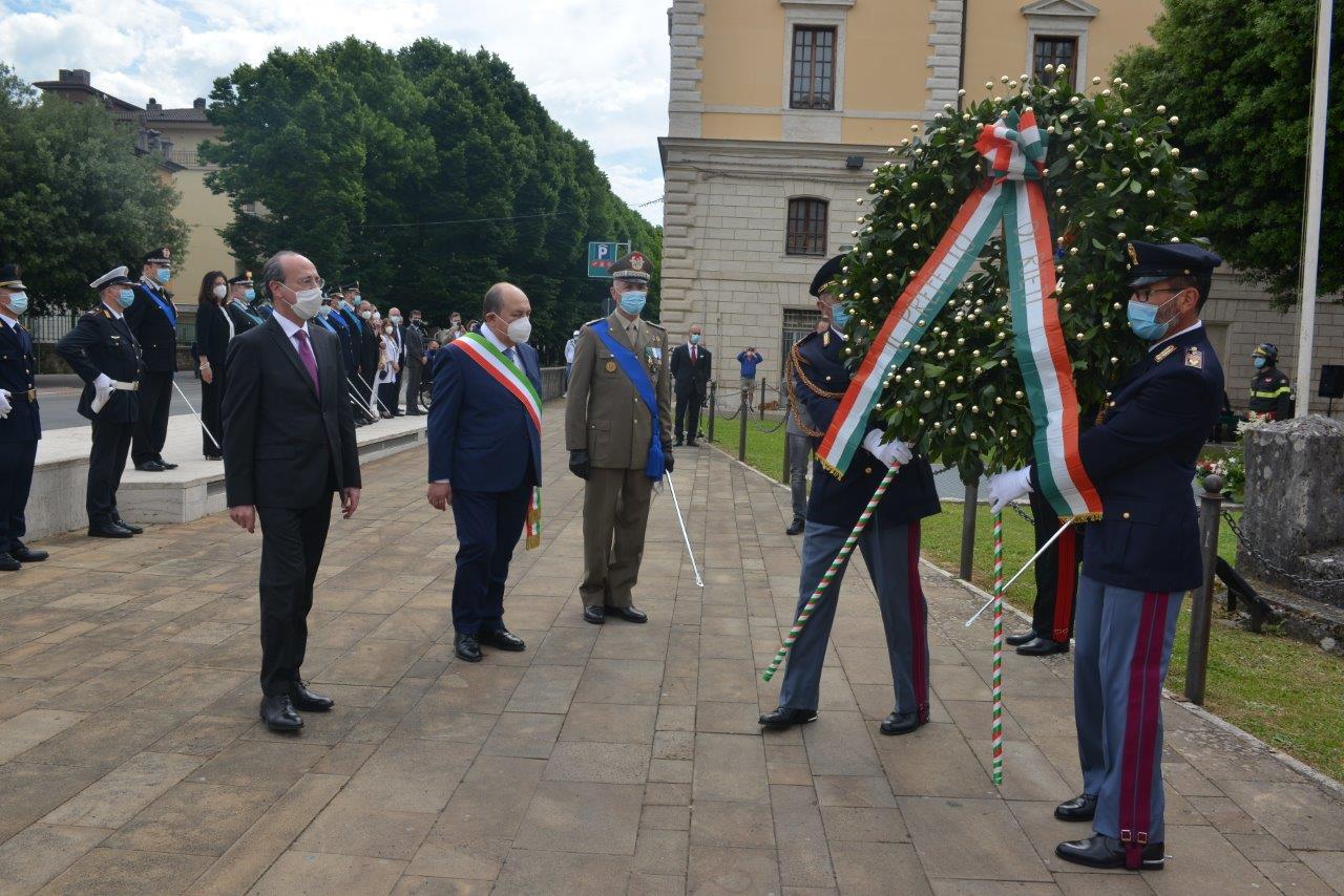 Il 2 giugno, nella ricorrenza del 75° anniversario del referendum che sancì il passaggio dalla Monarchia alla Repubblica, si è svolta in piazza Mazzini la consueta cerimonia della Festa della Repubblica. Nel rispetto delle misure di contrasto alla pandemia, le celebrazioni si sono state limitate al momento solenne dell’alzabandiera, al quale ha fatto seguito la deposizione da parte del Prefetto e del Sindaco di Rieti di una corona d’alloro al Monumento ai Caduti e la lettura del messaggio che il Presidente della Repubblica ha inviato ai Prefetti affinché se ne facciano interpreti.
