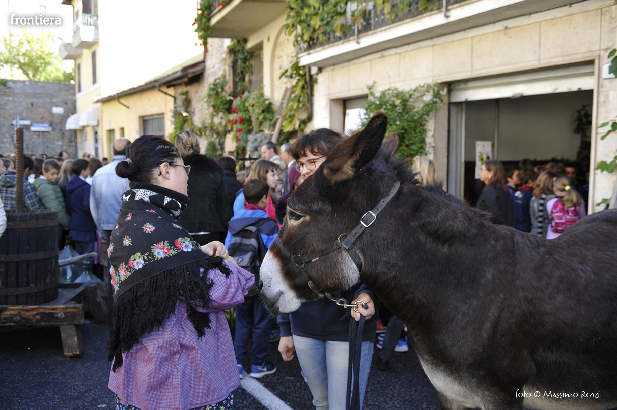 «La vite – ha spiegato il sacerdote – è cresciuta fin quasi al terzo piano e produce tantissima uva». Lo hanno constatato anche i tanti bambini dell’Istituto Comprensivo Minervini invitati alla piccola festa di quartiere, che hanno anche avuto la piacevole sorpresa di un paio di simpatici asinelli, di un allestimento “a tema”, di una mostra di strumenti della tradizione e non solo.