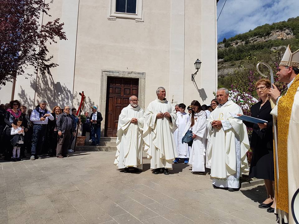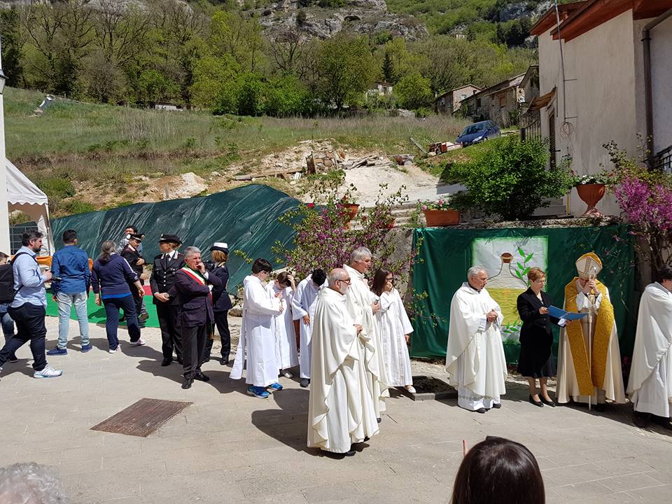 Grotti in festa nella IV domenica di Pasqua. Dopo nove anni di attesa e di liturgie celebrate nella palestra della locale scuola elementare, la chiesa parrocchiale dedicata a San Vittorino è stata restituita al popolo del paese.