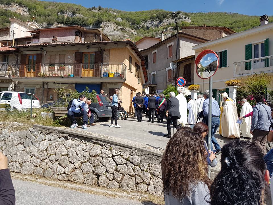 Prima della benedizione, il parroco di Grotti, don Stanislao Puzio, ha voluto onorare lo spirito della giornata glissando su tutto ciò che non è andato in questi nove anni di attesa e valorizzando il tanto bene compiuto. Il sacerdote ha quindi rivolto un ringraziamento sentito a tutti, da mons. Pompili alle autorità civili alla popolazione di Grotti. I fedeli si sono poi ritrovati all’esterno della chiesa per festeggiare con un lauto rinfresco l’inizio di un nuovo cammino per la comunità cristiana del posto.