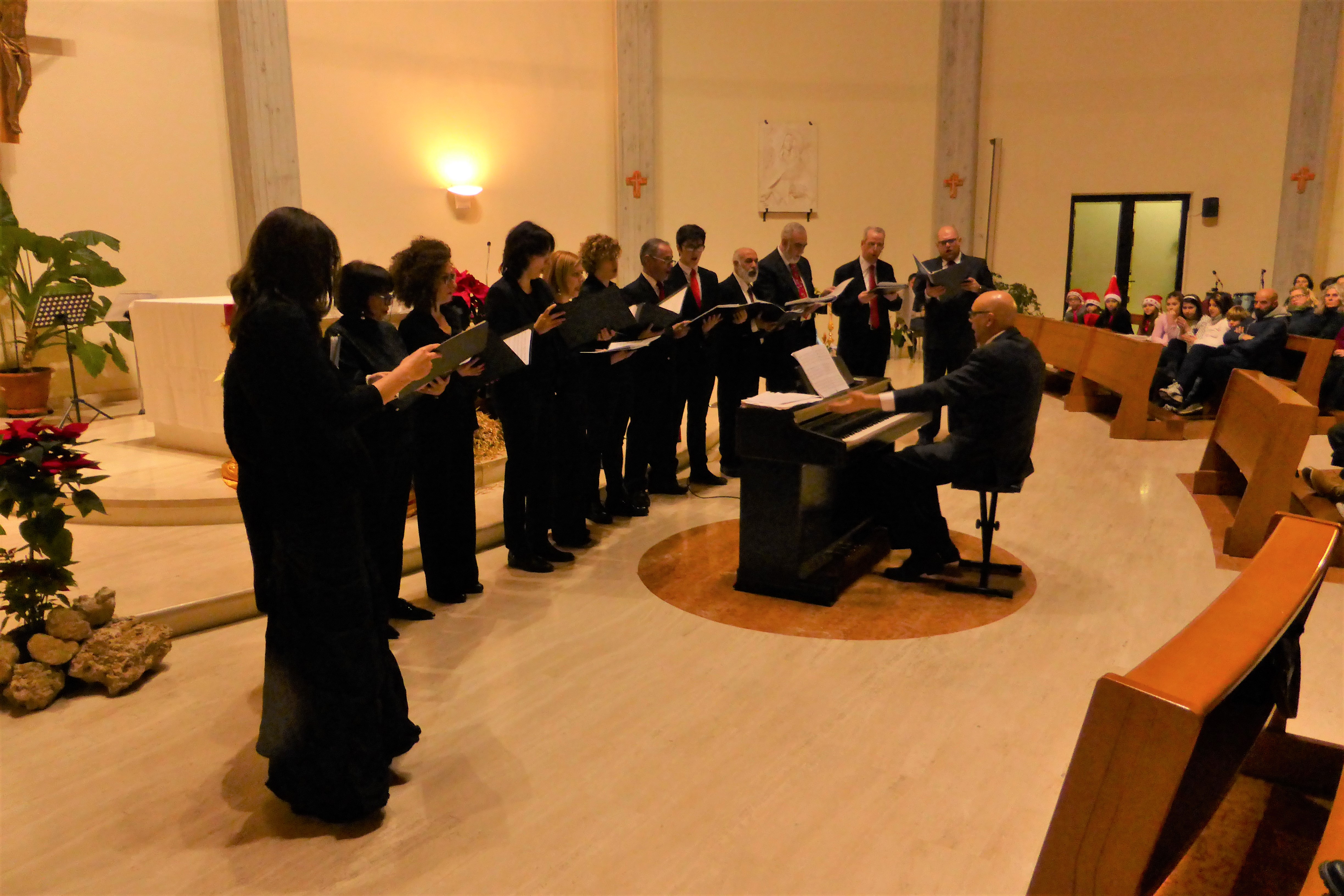 Al termine della messa, si sono esibiti di fronte ai fedeli, i ragazzi dell’ACR diretti e accompagnati dalle catechiste Chiara e Agnese Lorenzi. A supportare i propri figli, tra le fila del coro ACR, c’erano anche genitori e parenti dei ragazzi, che, vincendo l’emozione, hanno cantato insieme a loro. Degna di nota anche la partecipazione straordinaria nel coro del parroco don Zdenek, che con una cravatta rossa al collo, ha cantato insieme a bimbi e genitori due canti Il suo nome celebriamo e Scusa Gesù ti do del tu e gospel più conosciuti, come Oh Happy Day.