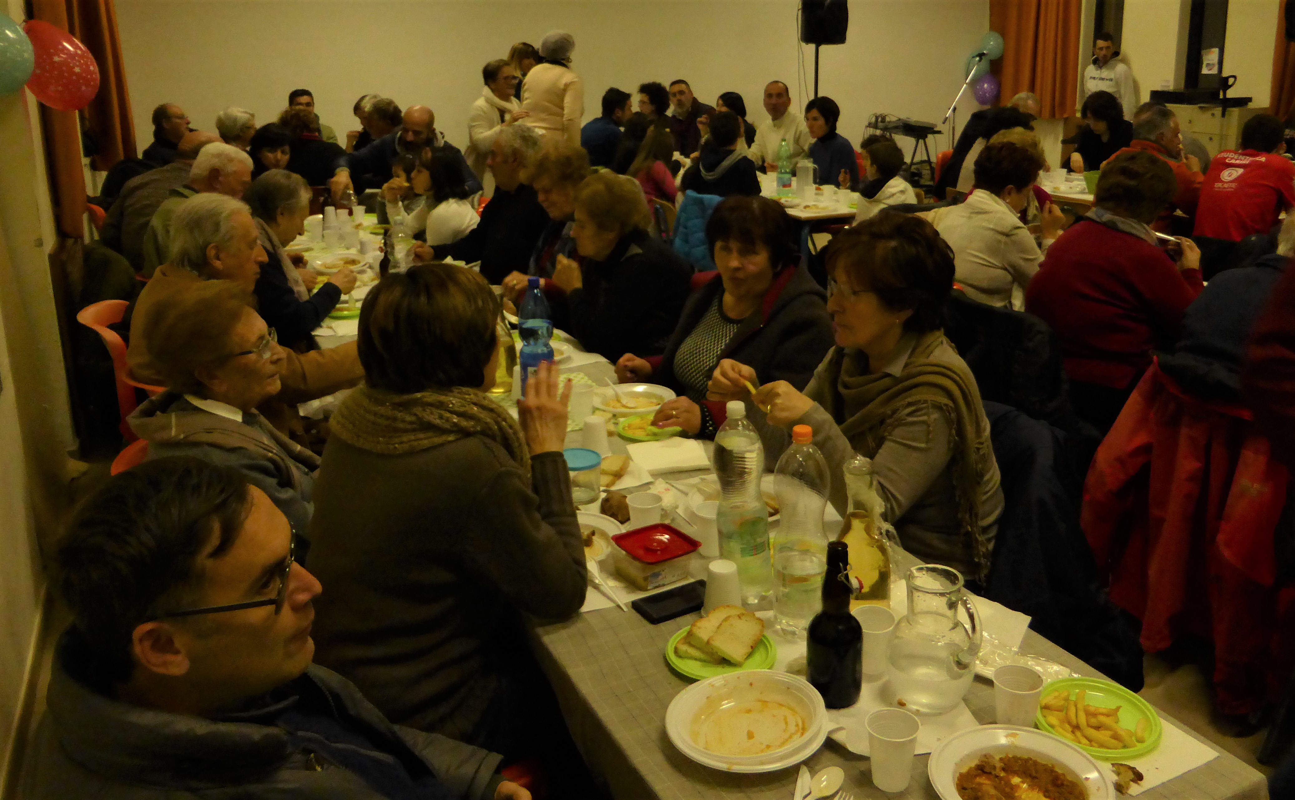 Dopo il momento musicale, finalmente la cena preparata con la solita maestria e con il solito servizio eccellente dal comitato dei festeggiamenti, formato da giovani e meno giovani ormai abili nell’organizzazione di banchetti che arrivano a contare più di centro persone.