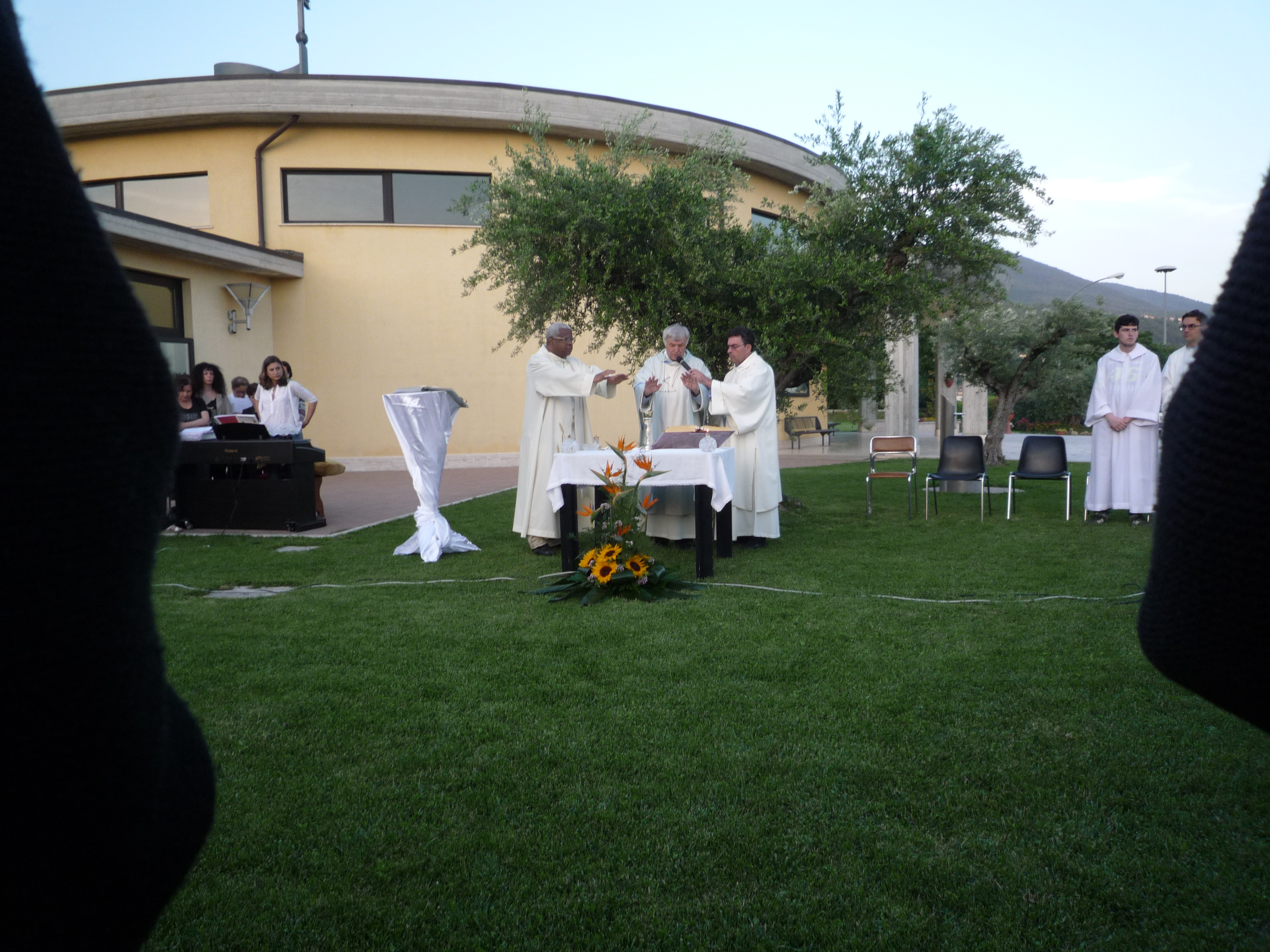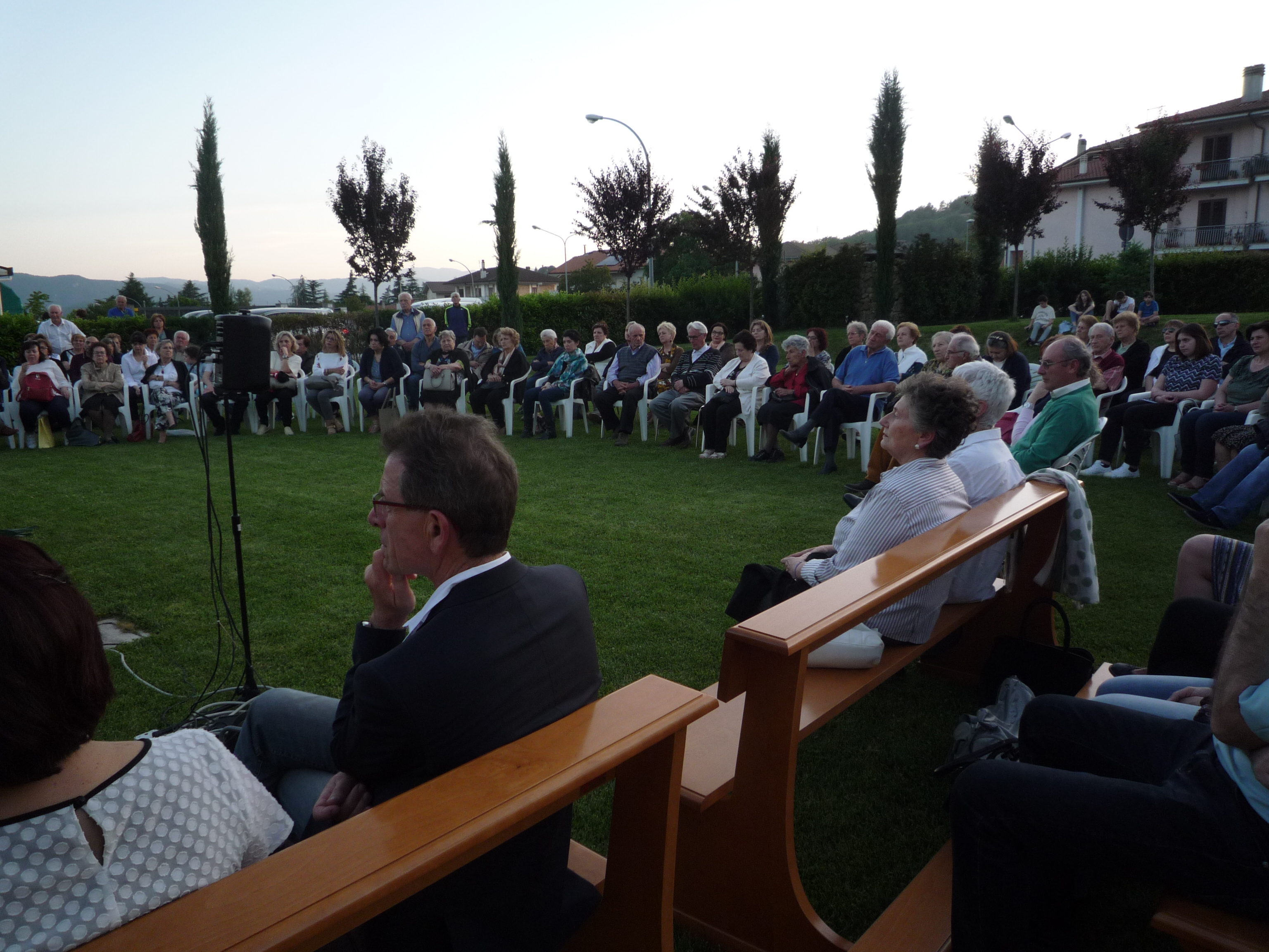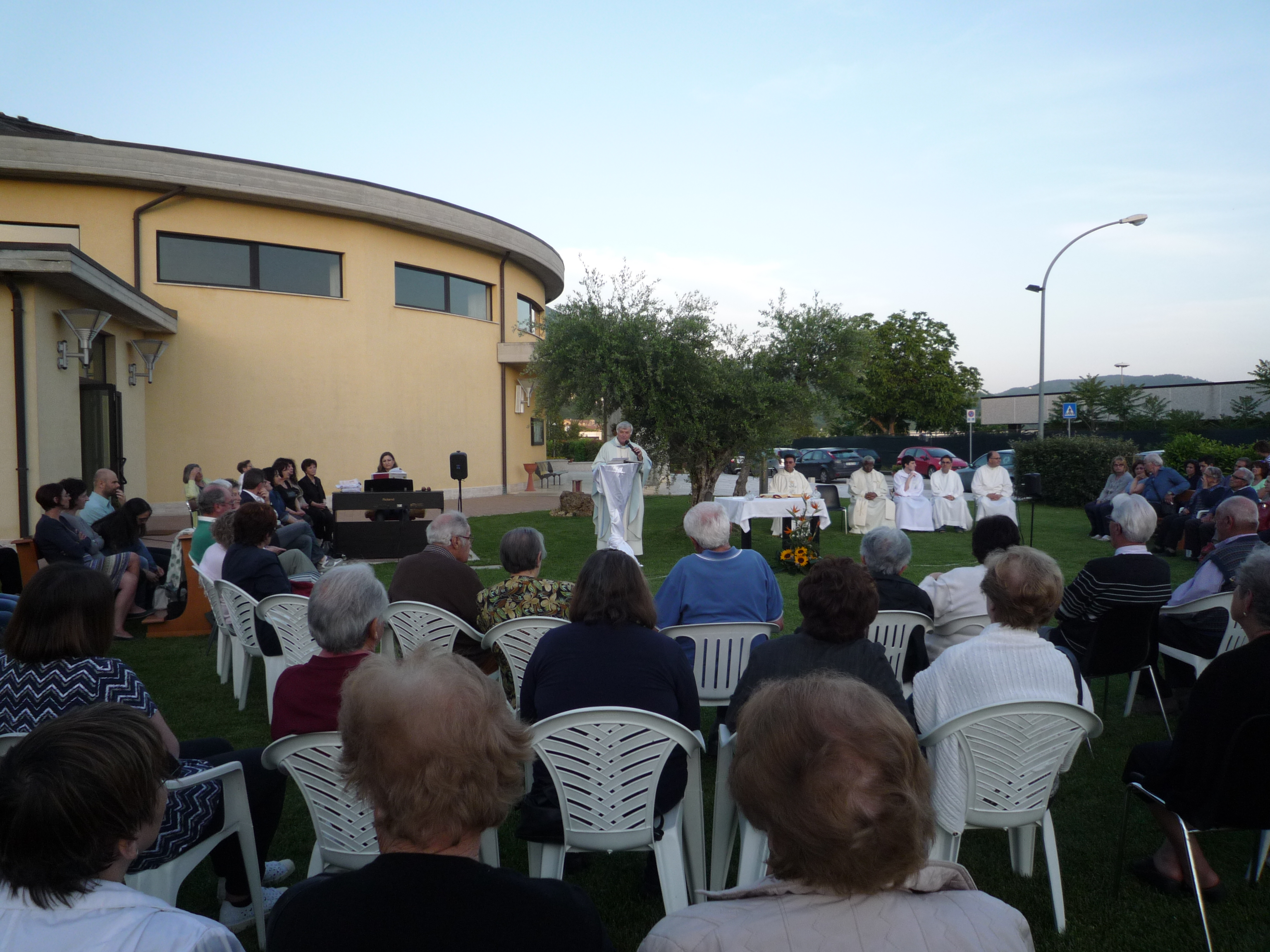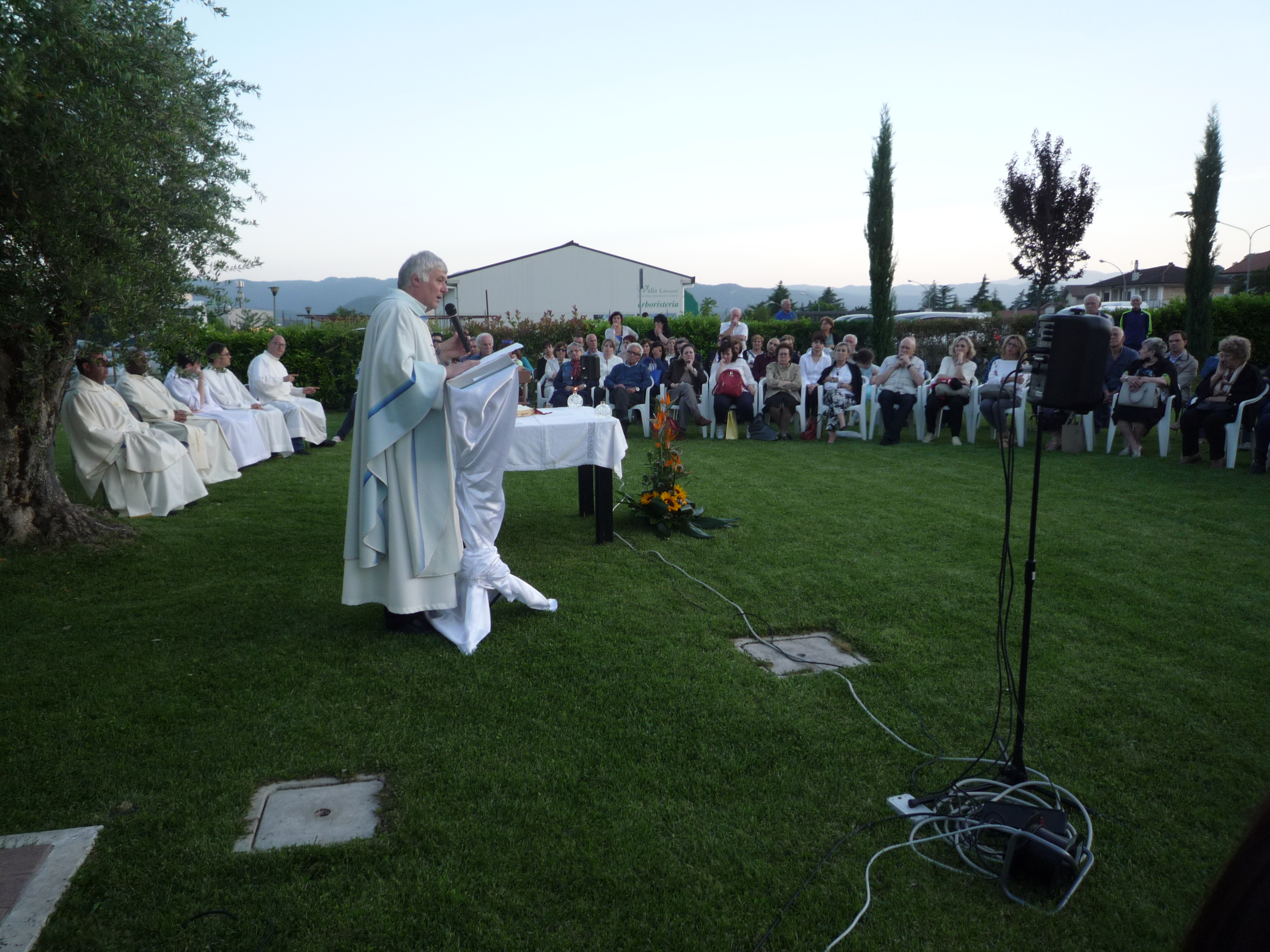 Il tempo favorevole ha consentito di officiare la Santa Messa all’aperto dell’areale Santa Maria Assunta. Sull’ampio prato spiccavano il grande ulivo presso il quale era sistemato l’altare e i cespugli di rose in piena fioritura. Le sedie e le panche sono state disposte a semicerchio in modo che tutti potessero seguire la funzione immersi nella natura e avvolti dalla spiritualità emanata dal luogo e coralmente accompagnata da buona musica.