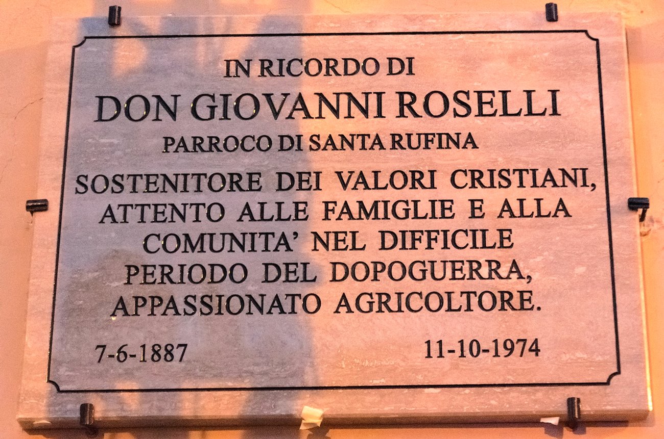 A margine della liturgia, è stata scoperta una lapide dedicata a don Giovanni Roselli, parroco di Santa Rufina, ricordato come «sostenitore dei valori cristiani, attento alle famiglie e alla comunità nel difficile periodo del dopoguerra, appassionato agricoltore». E come apertura al futuro, don Emmanuele ha proposto di realizzare un simulacro anche per santa Seconda, in modo da poter condurre tra le vie del paese anche la sua immagine, al fianco della santa sorella Rufina.