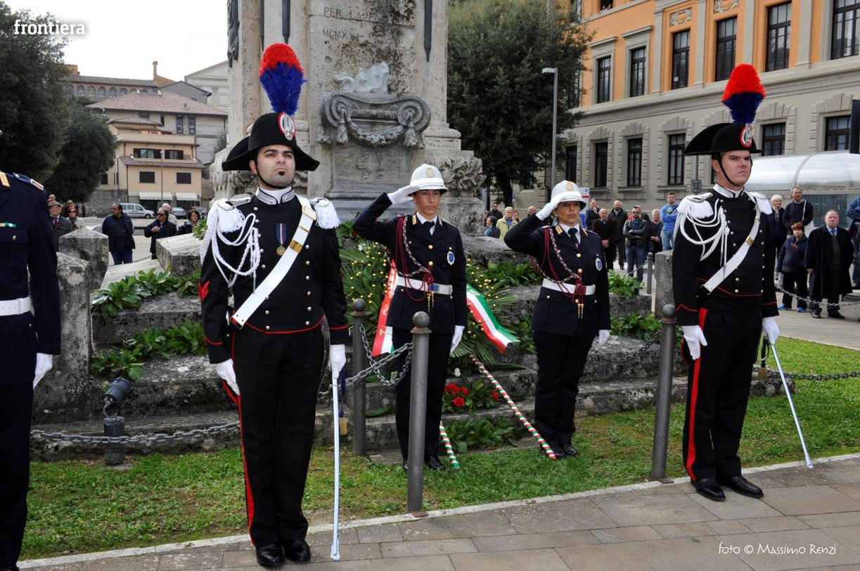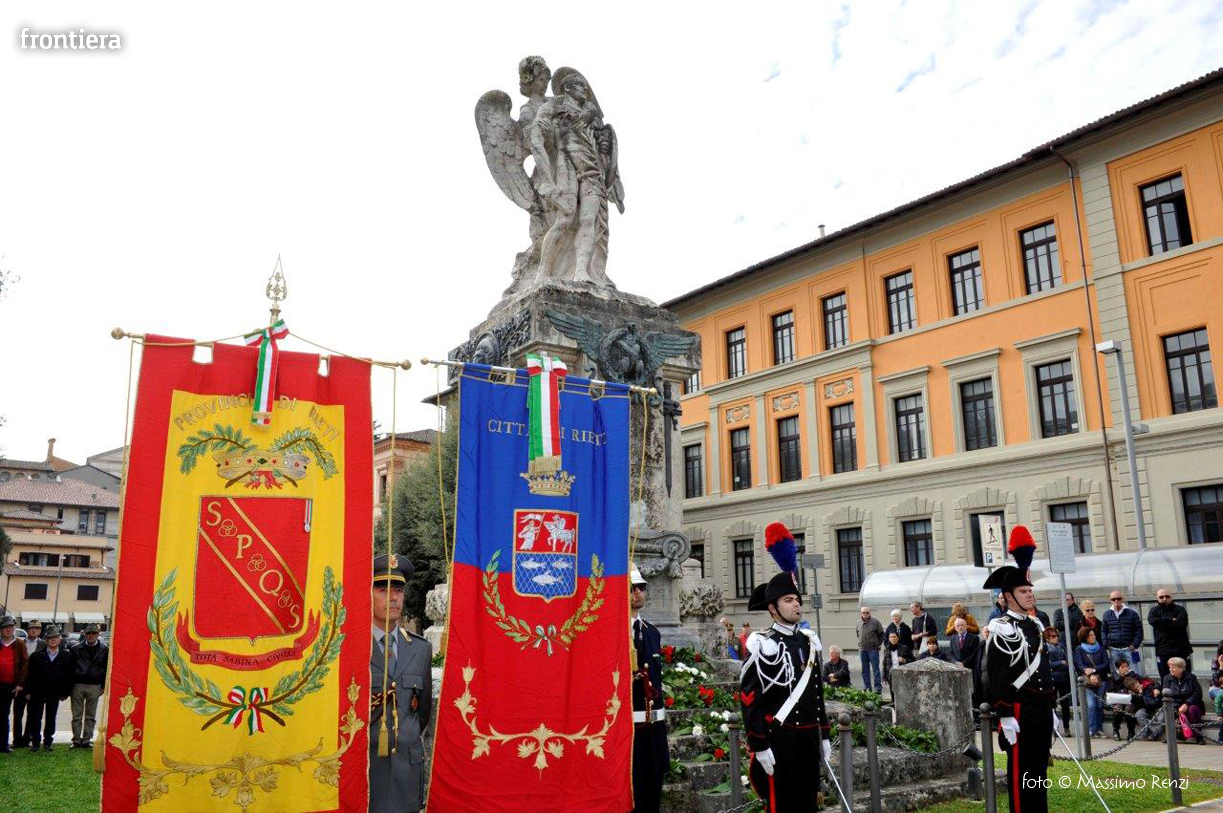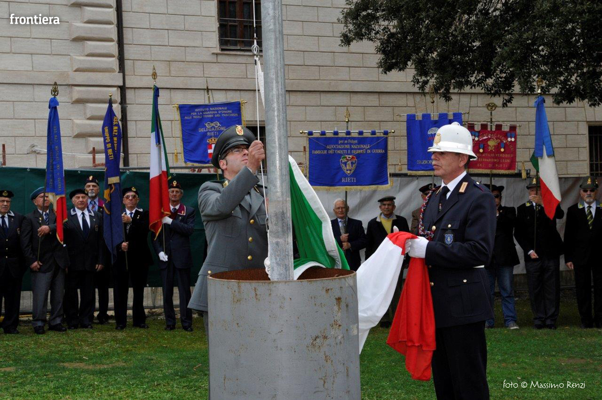 Nella mattina del 4 novembre, anche Rieti ha festeggiato il “Giorno dell’Unità Nazionale e la Giornata delle Forze Armate”. In piazza Mazzini, alla presenza delle massime autorità civili, militari e religiose, si è tenuta la consueta cerimonia dell’alzabandiera, con la deposizione di una corona sul Monumento ai Caduti.