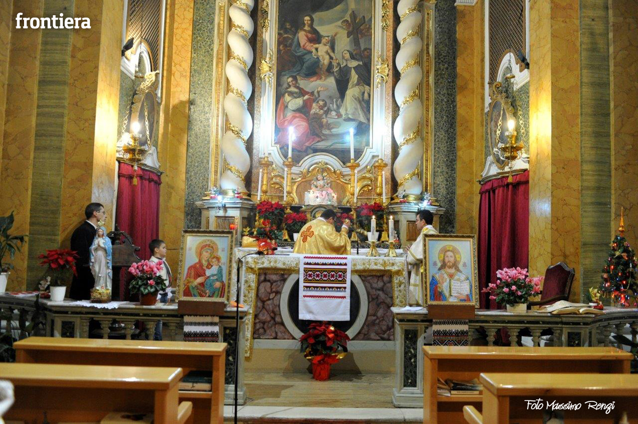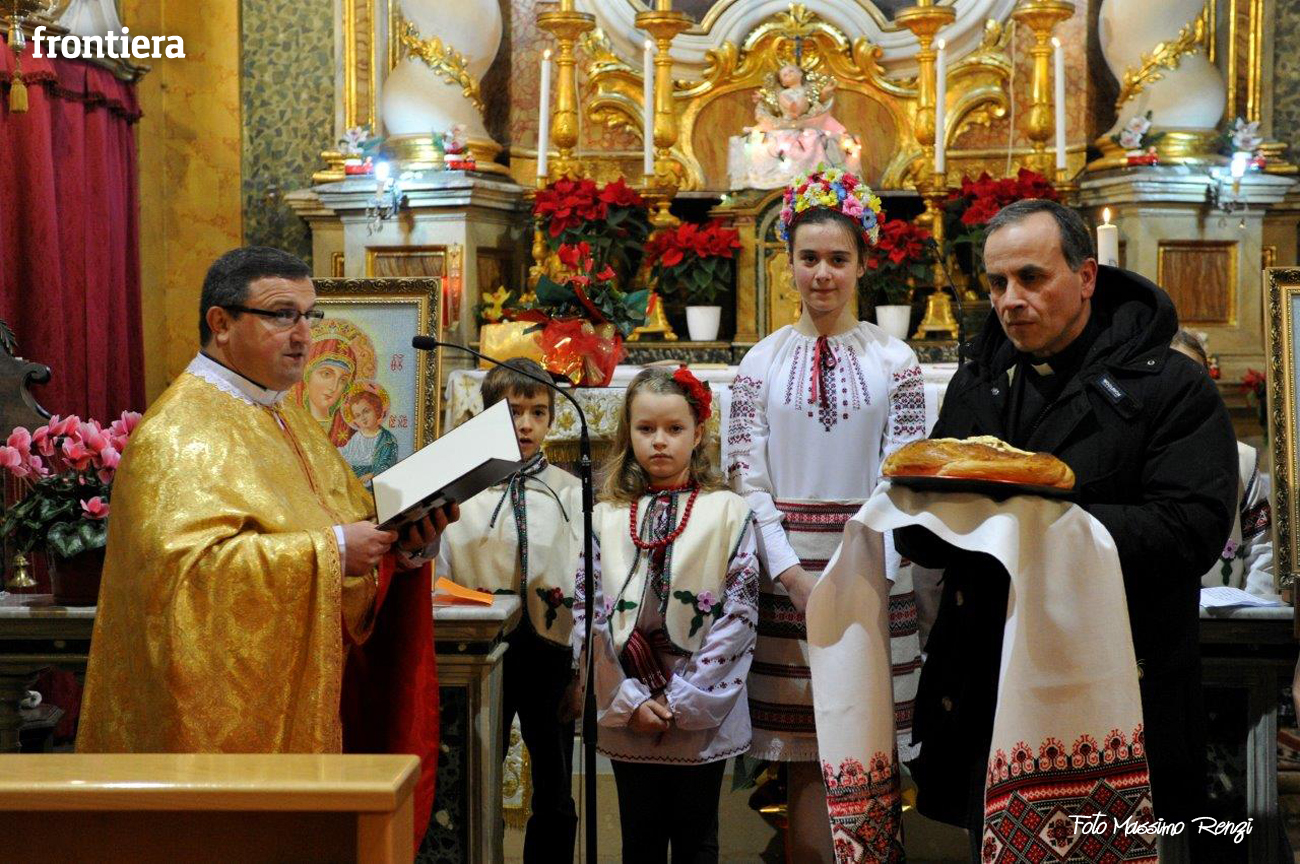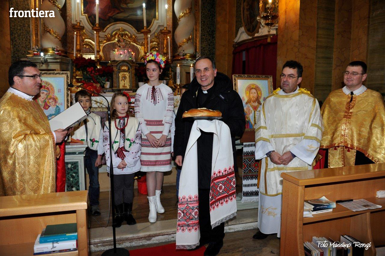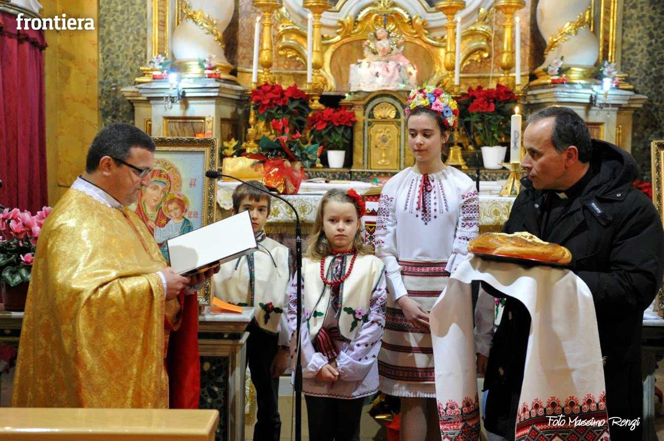 Celebrazione del Natale, che secondo il calendario giuliano cade corrisponde al nostro 6 gennaio, per la comunità ucraina di Rieti presso la chiesa del convento domenicano di Sant’Agnese, ormai sede “fissa” per queste celebrazioni. Al rito ha partecipato il diacono Arnaldo Proietti, direttore dell’ufficio Migrantes diocesano. La liturgia ha visto anche il saluto del vescovo Domenico, che ha benedetto l’assemblea e ricevuto un pane tipico in dono.