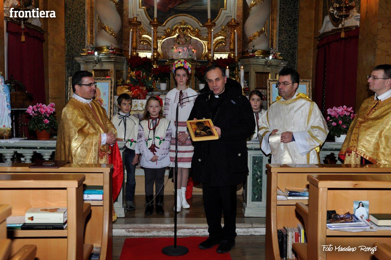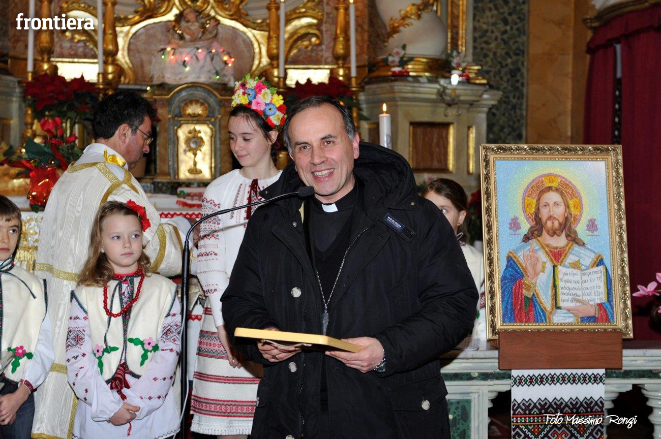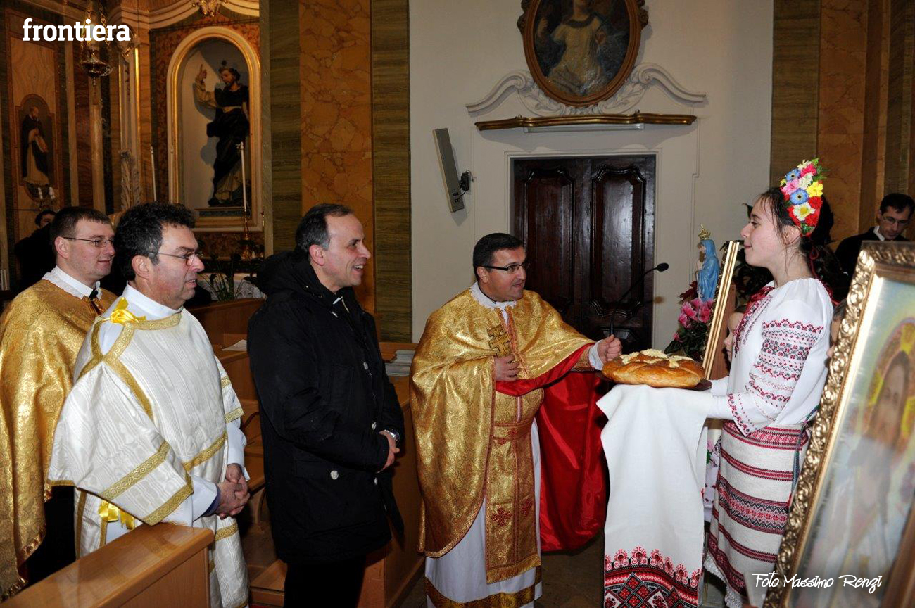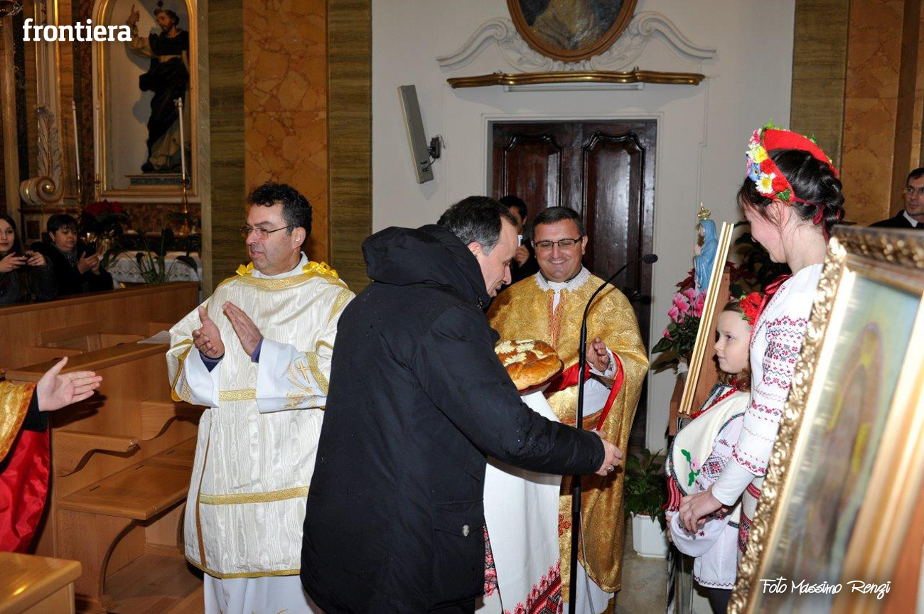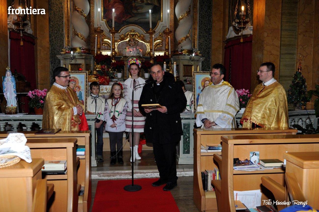 Celebrazione del Natale, che secondo il calendario giuliano cade corrisponde al nostro 6 gennaio, per la comunità ucraina di Rieti presso la chiesa del convento domenicano di Sant’Agnese, ormai sede “fissa” per queste celebrazioni. Al rito ha partecipato il diacono Arnaldo Proietti, direttore dell’ufficio Migrantes diocesano. La liturgia ha visto anche il saluto del vescovo Domenico, che ha benedetto l’assemblea e ricevuto un pane tipico in dono.