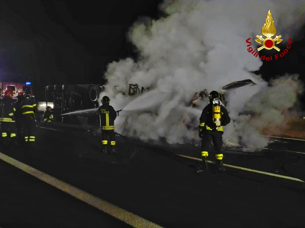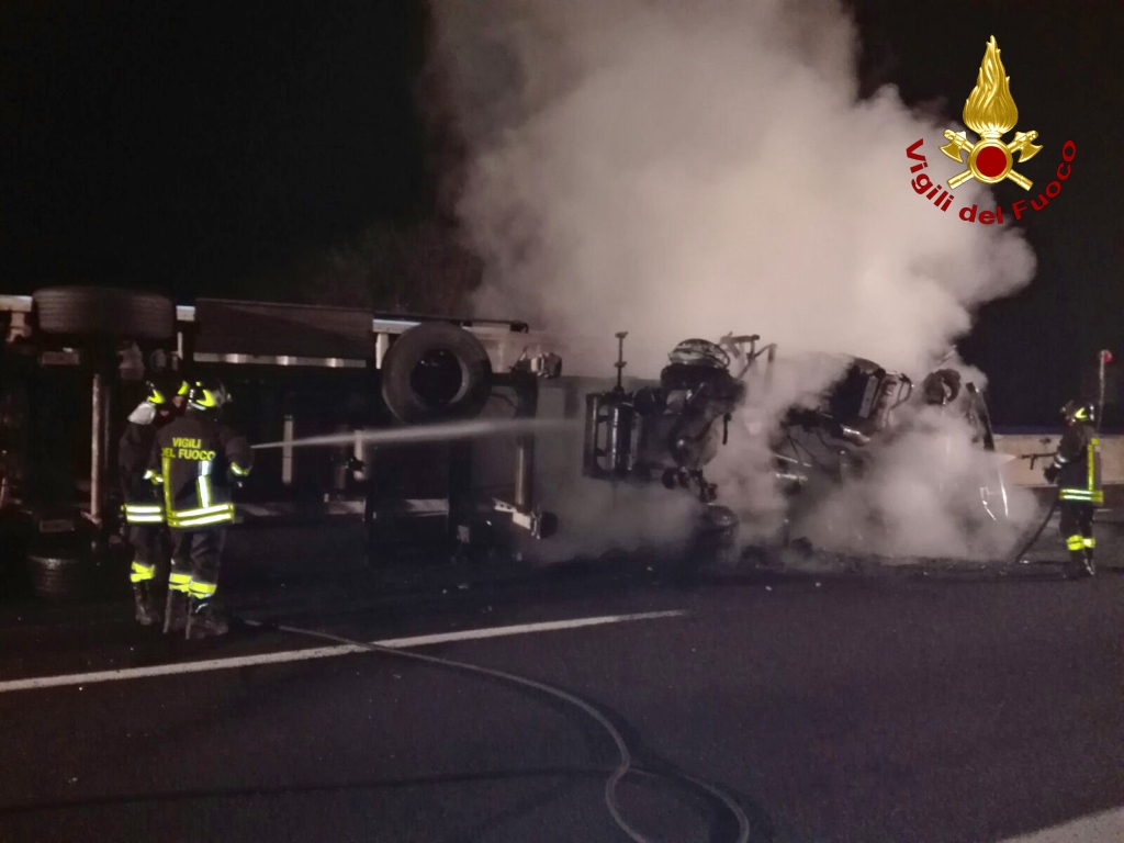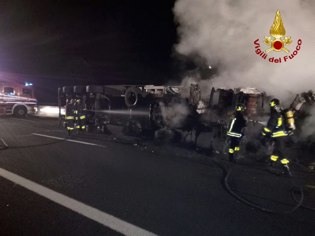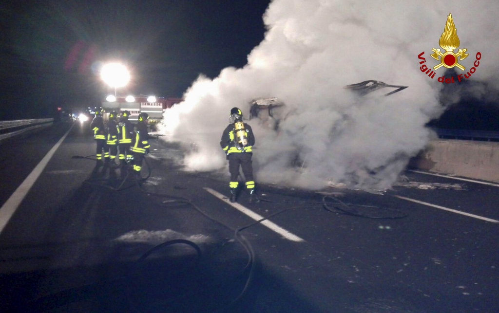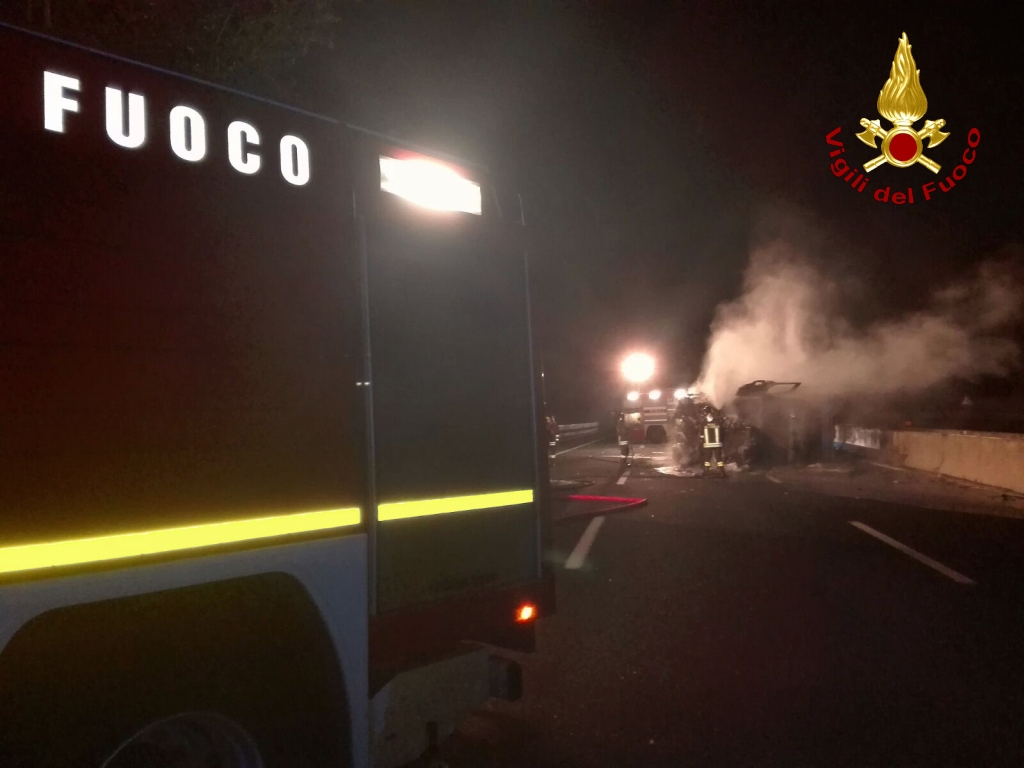 Le operazioni di spegnimento e di messa in sicurezza dell’intera area coinvolta dal sinistro sono durate sino alle ore 6 di questa mattina. Presente in posto anche la Polizia Stradale per la regolazione del flusso stradale e per i rilievi del caso.