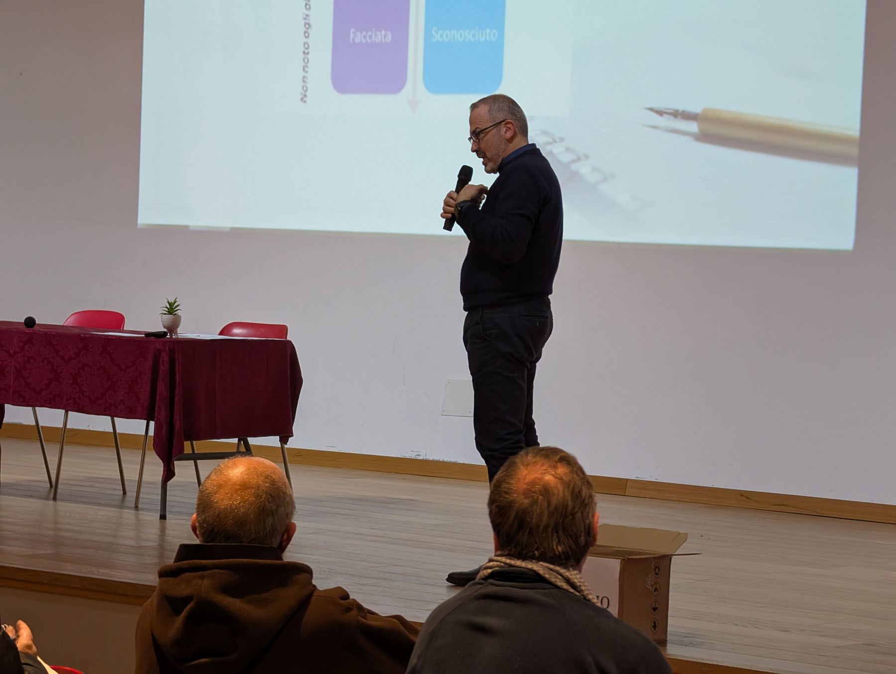 Oltre alla contemplazione, il relatore ha offerto alcuni strumenti pratici per affinare la capacità di leggere la propria interiorità alla luce della fede. Ha illustrato la “finestra di Johari”, un modello psicologico che aiuta a distinguere tra ciò che conosciamo di noi stessi, ciò che gli altri vedono e ciò che resta nascosto alla nostra consapevolezza. «La preghiera è anche questo: uno spazio in cui possiamo lasciar emergere le parti di noi che spesso ignoriamo e che Dio invece conosce e illumina con la sua grazia», ha spiegato.