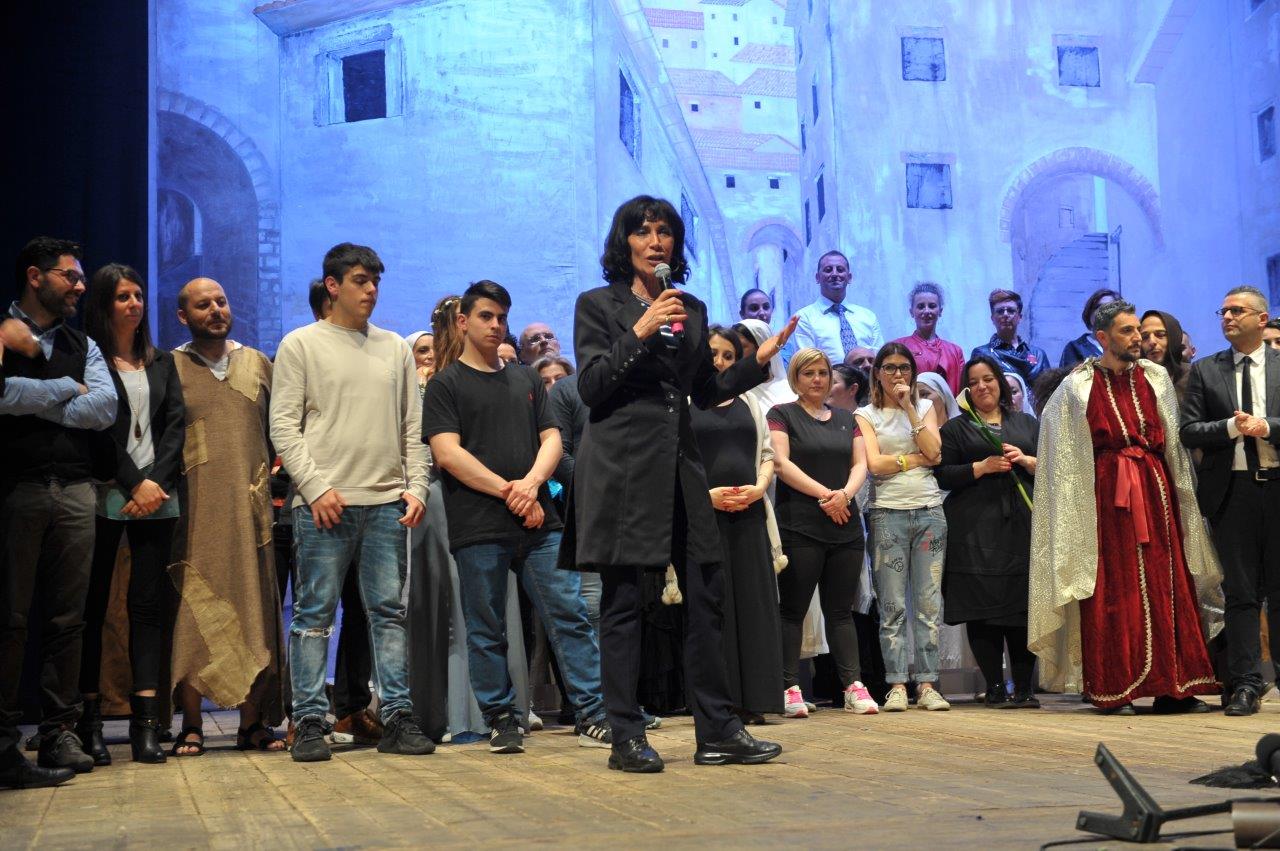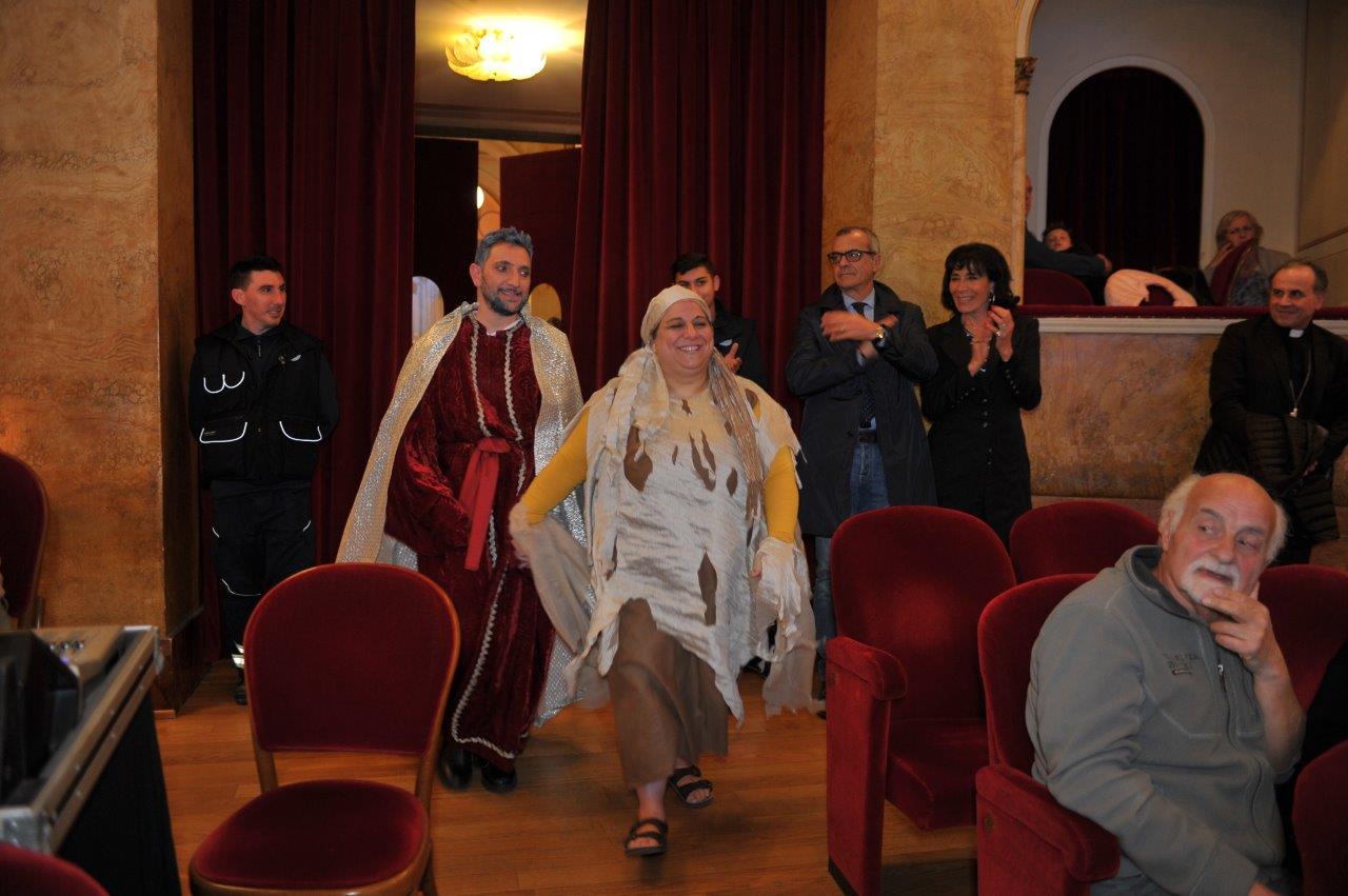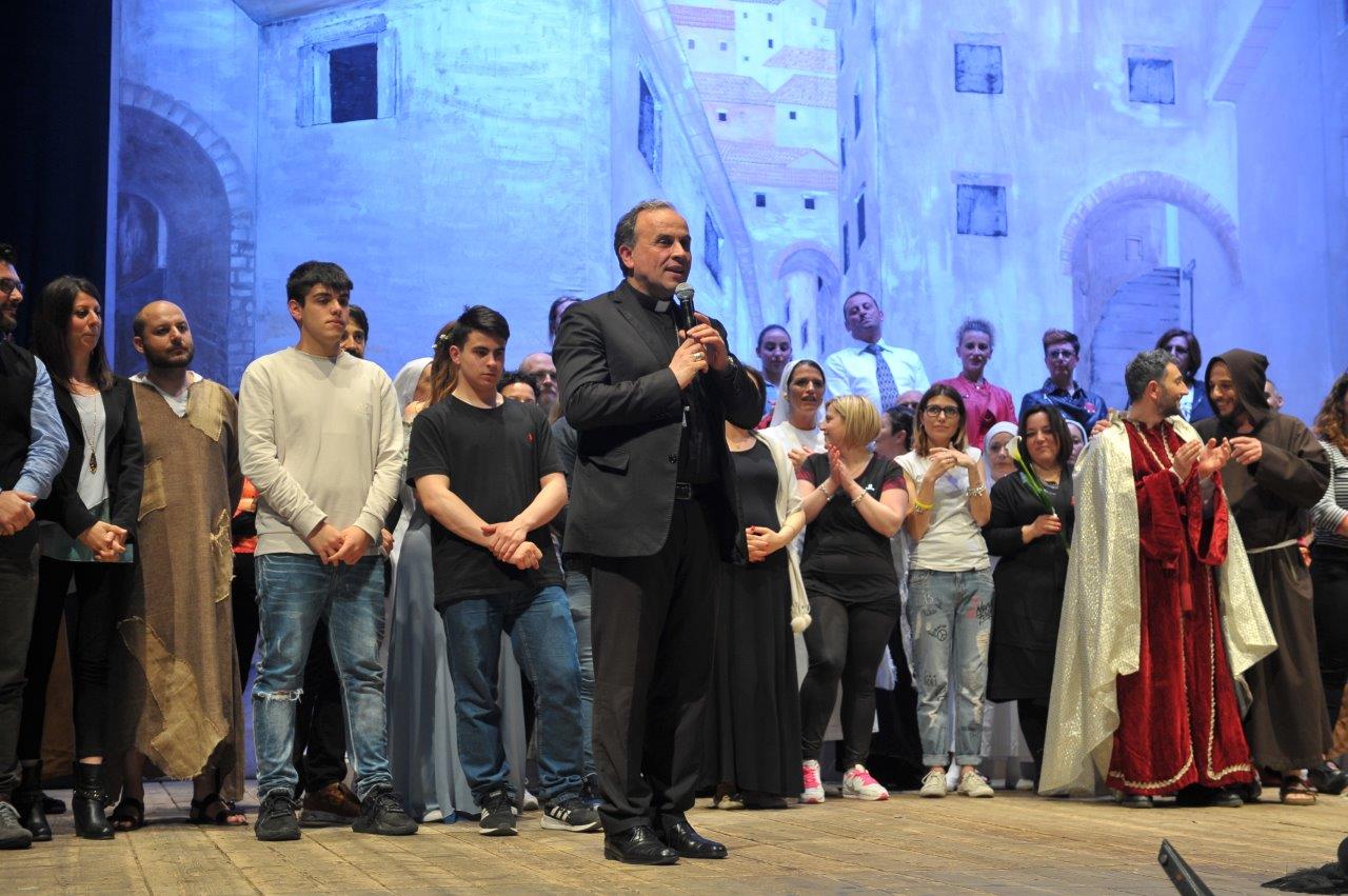 Del resto, ha detto il vescovo Domenico, primo promotore e sostenitore dell’idea, salendo a fine spettacolo sul palcoscenico del “Flavio” per portare, assieme alla prefetto Reggiani, il saluto finale, quella raccontata dal celebre musical è la vicenda di un padre in difficile rapporto col figlio, visto che i dialoghi sono giocati tutti sull’ironico “cinismo” di Pietro Bernardone nella totale incomprensione della folle scelta del suo Francesco.