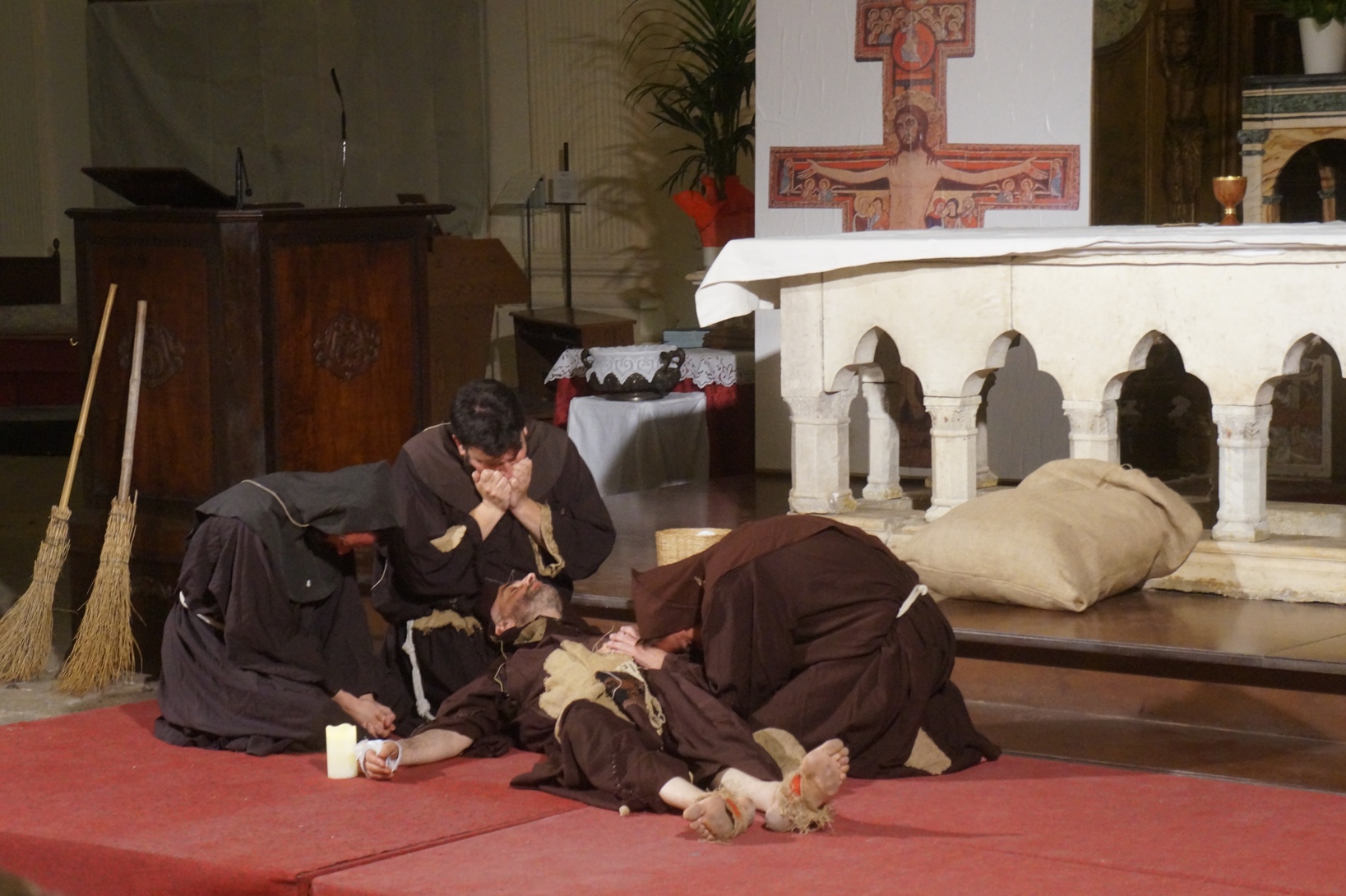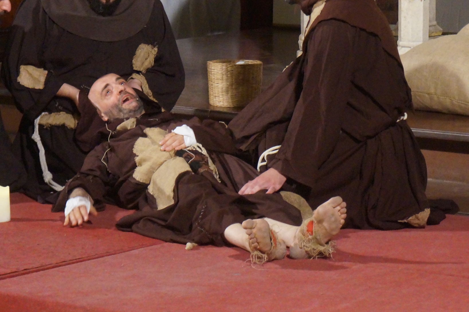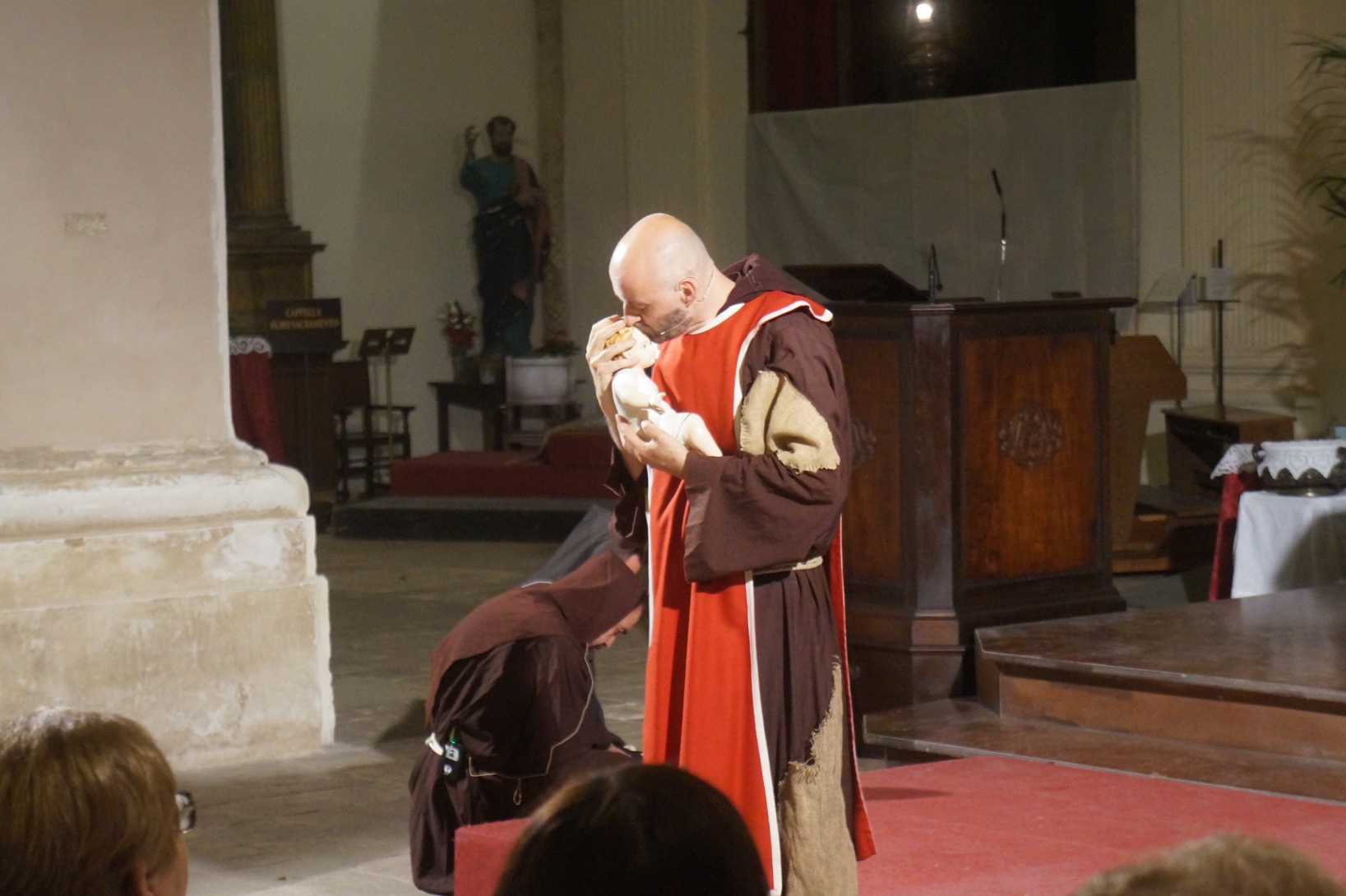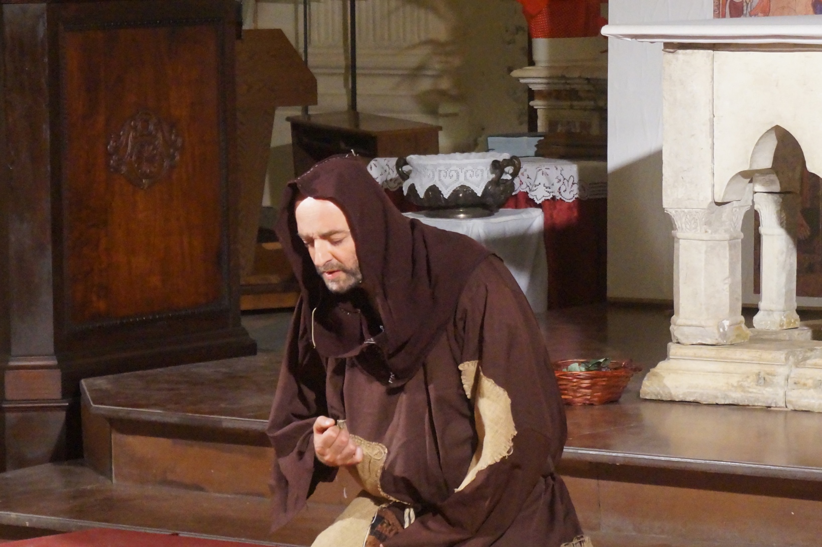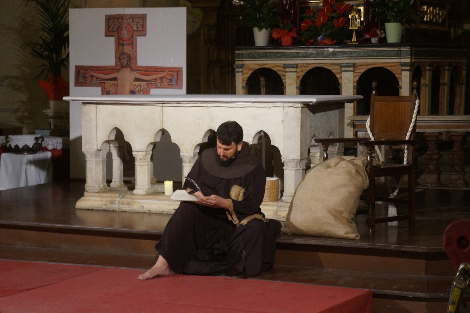 Mercoledì 21 giugno, presso la chiesa di san Francesco, è stato rappresentato lo spettacolo teatrale “Francesco e i suoi frati” di e con fra Renzo Cocchi per la regia di Cataldo Nalli. Il recital unisce il racconto di alcuni momenti salienti della vita di san Francesco con canzoni originali (di fra Renzo Cocchi e Daniele Marcelli) ispirate alla storia e allo spirito francescano. Si va dalla giovinezza alla conversione, dalla vita quotidiana alla benedizione papale, passando per la regola di Fontecolombo e il presepe di Greccio. Molto intense la scena in cui il santo riceve le stigmate, come pure quella della sua morte. Le canzoni, cantate dallo stesso fra Renzo, sono la ciliegina sulla torta dello spettacolo e contribuiscono a trasmettere con semplicità e leggerezza il messaggio di Francesco.