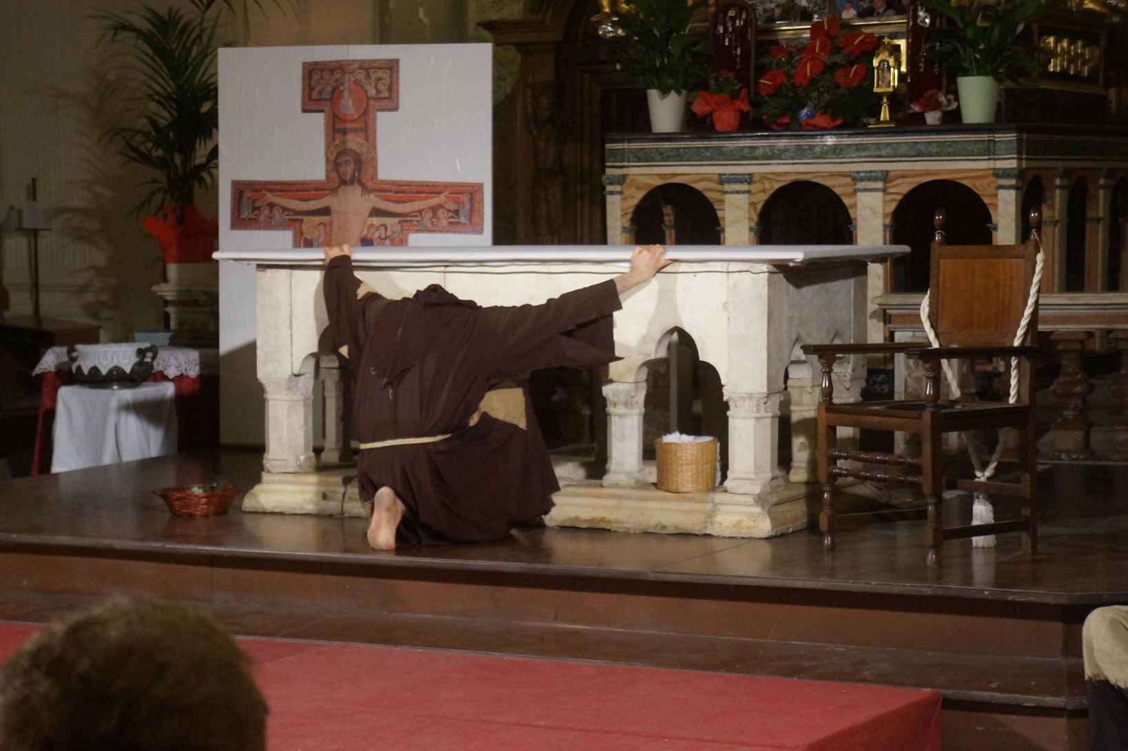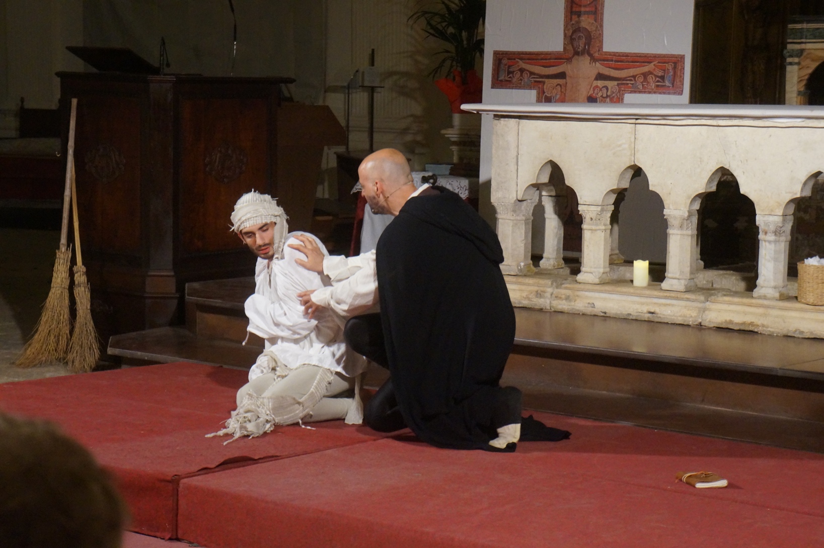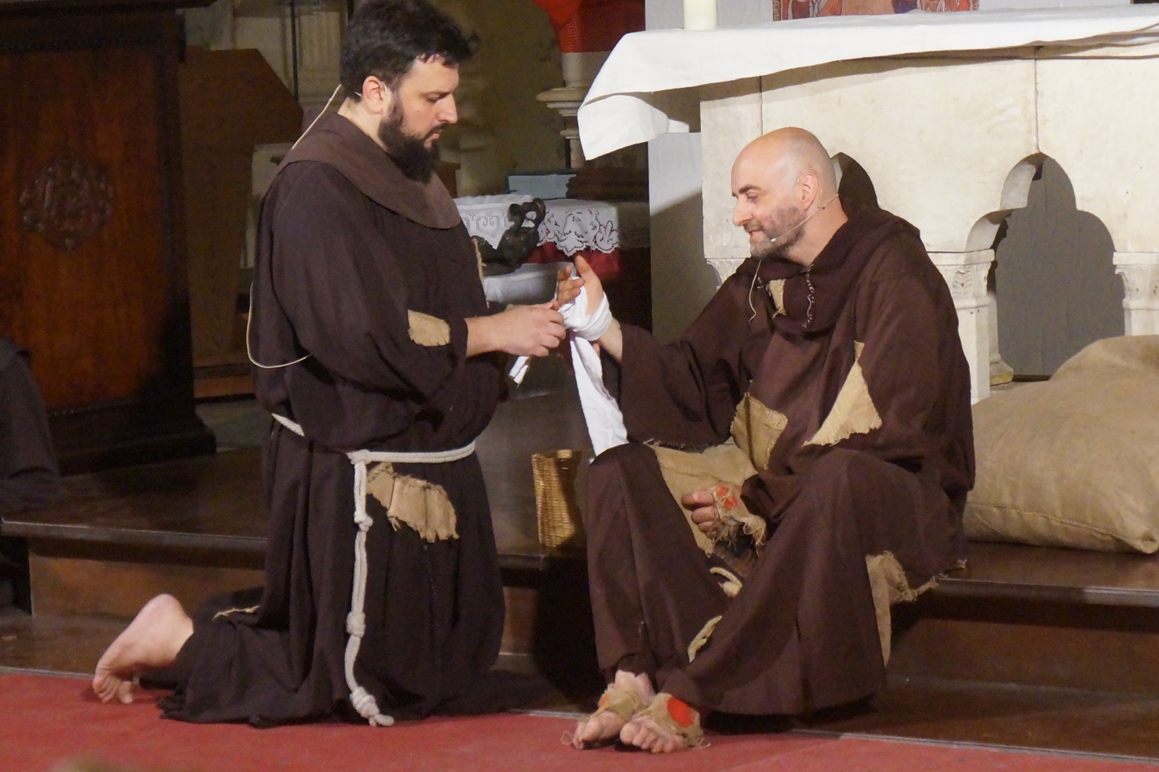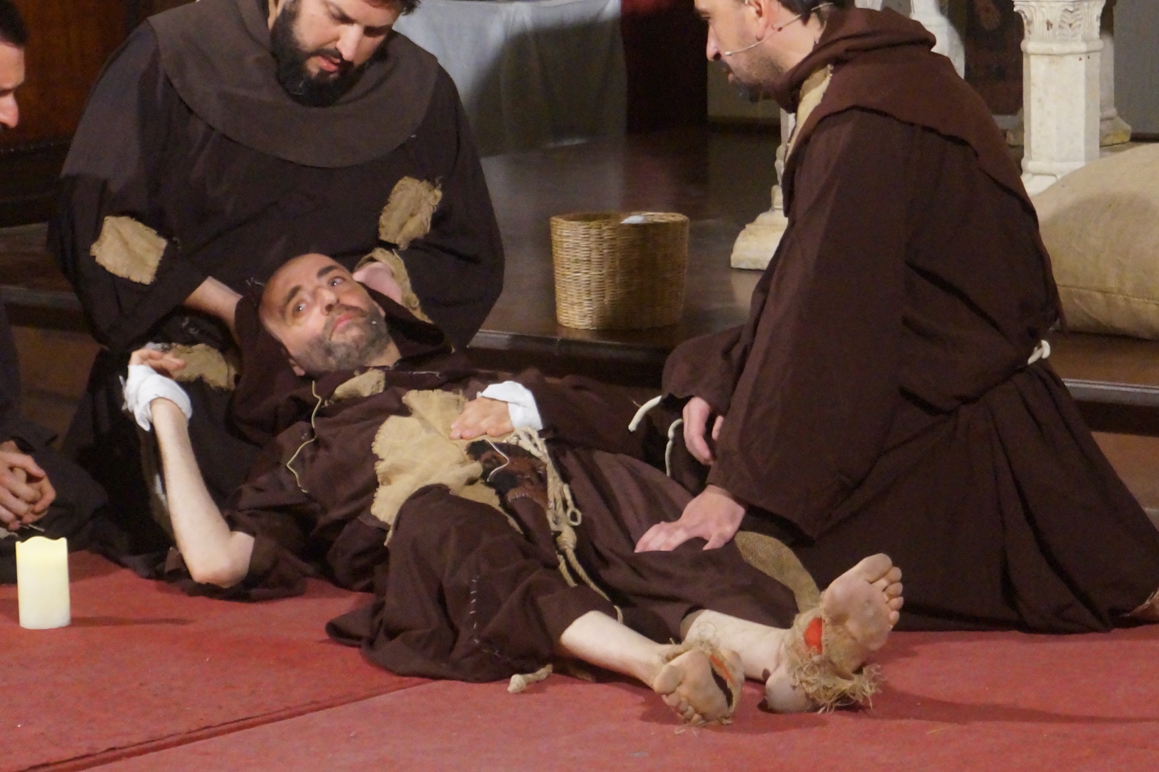 Mercoledì 21 giugno, presso la chiesa di san Francesco, è stato rappresentato lo spettacolo teatrale “Francesco e i suoi frati” di e con fra Renzo Cocchi per la regia di Cataldo Nalli. Il recital unisce il racconto di alcuni momenti salienti della vita di san Francesco con canzoni originali (di fra Renzo Cocchi e Daniele Marcelli) ispirate alla storia e allo spirito francescano. Si va dalla giovinezza alla conversione, dalla vita quotidiana alla benedizione papale, passando per la regola di Fontecolombo e il presepe di Greccio. Molto intense la scena in cui il santo riceve le stigmate, come pure quella della sua morte. Le canzoni, cantate dallo stesso fra Renzo, sono la ciliegina sulla torta dello spettacolo e contribuiscono a trasmettere con semplicità e leggerezza il messaggio di Francesco.